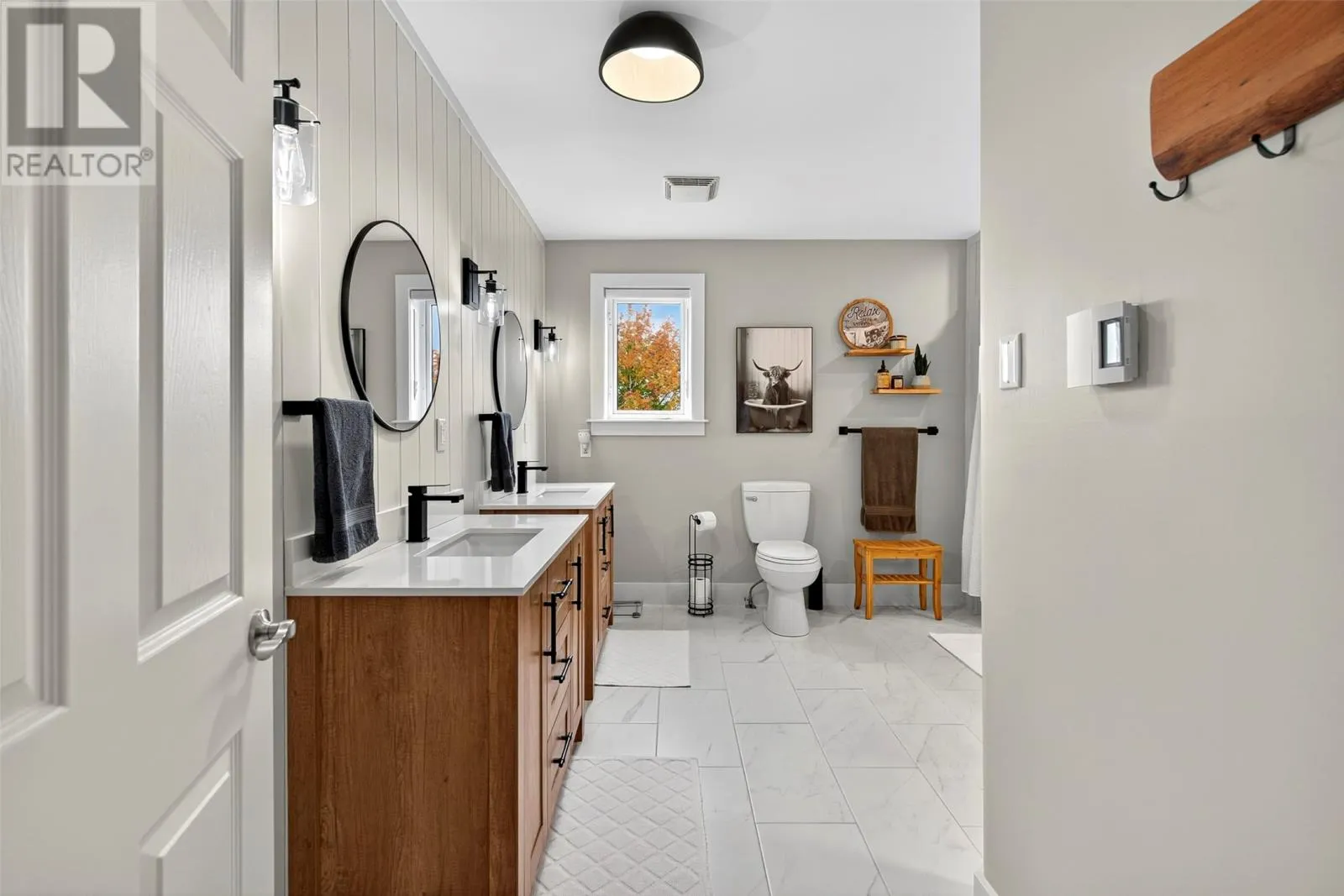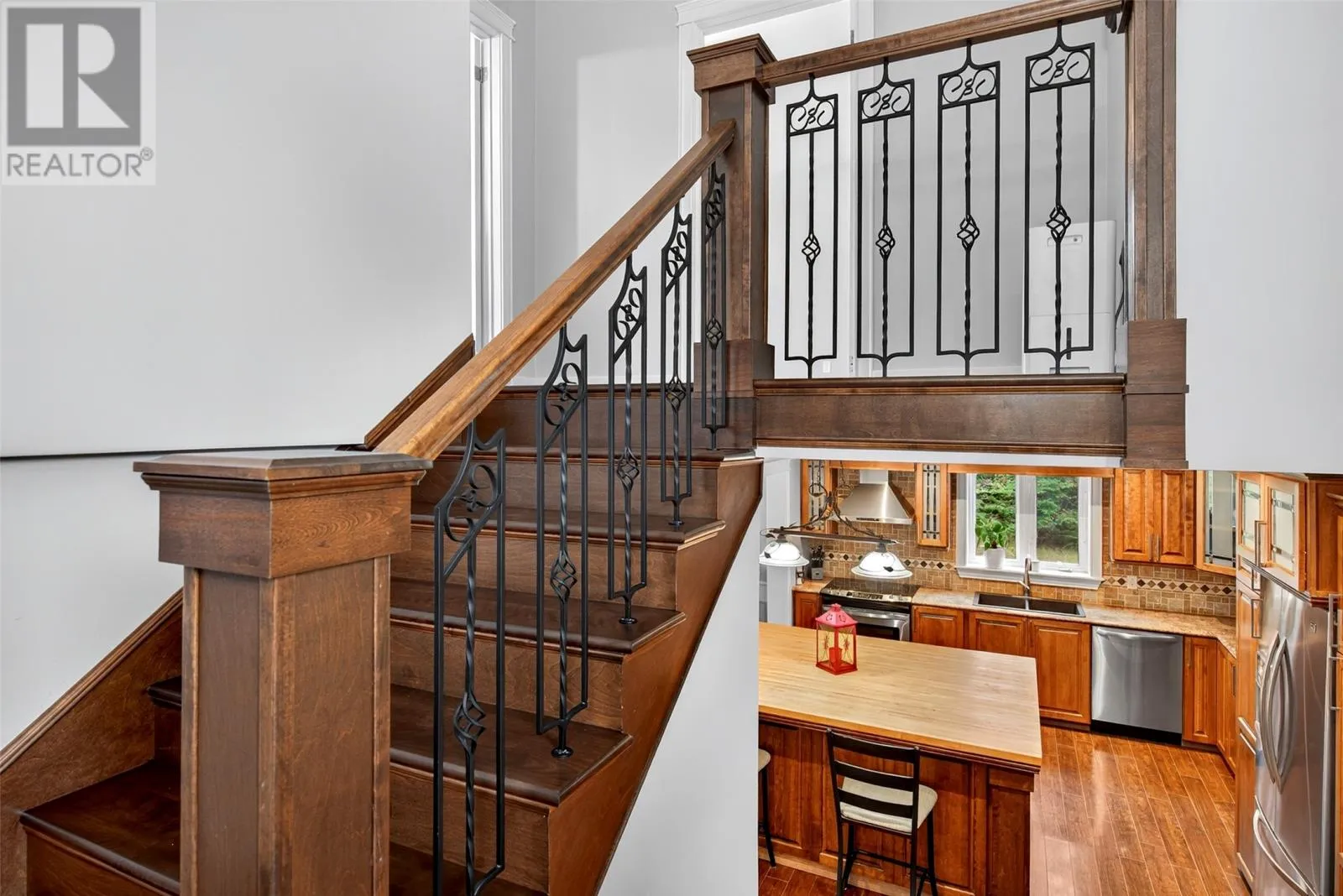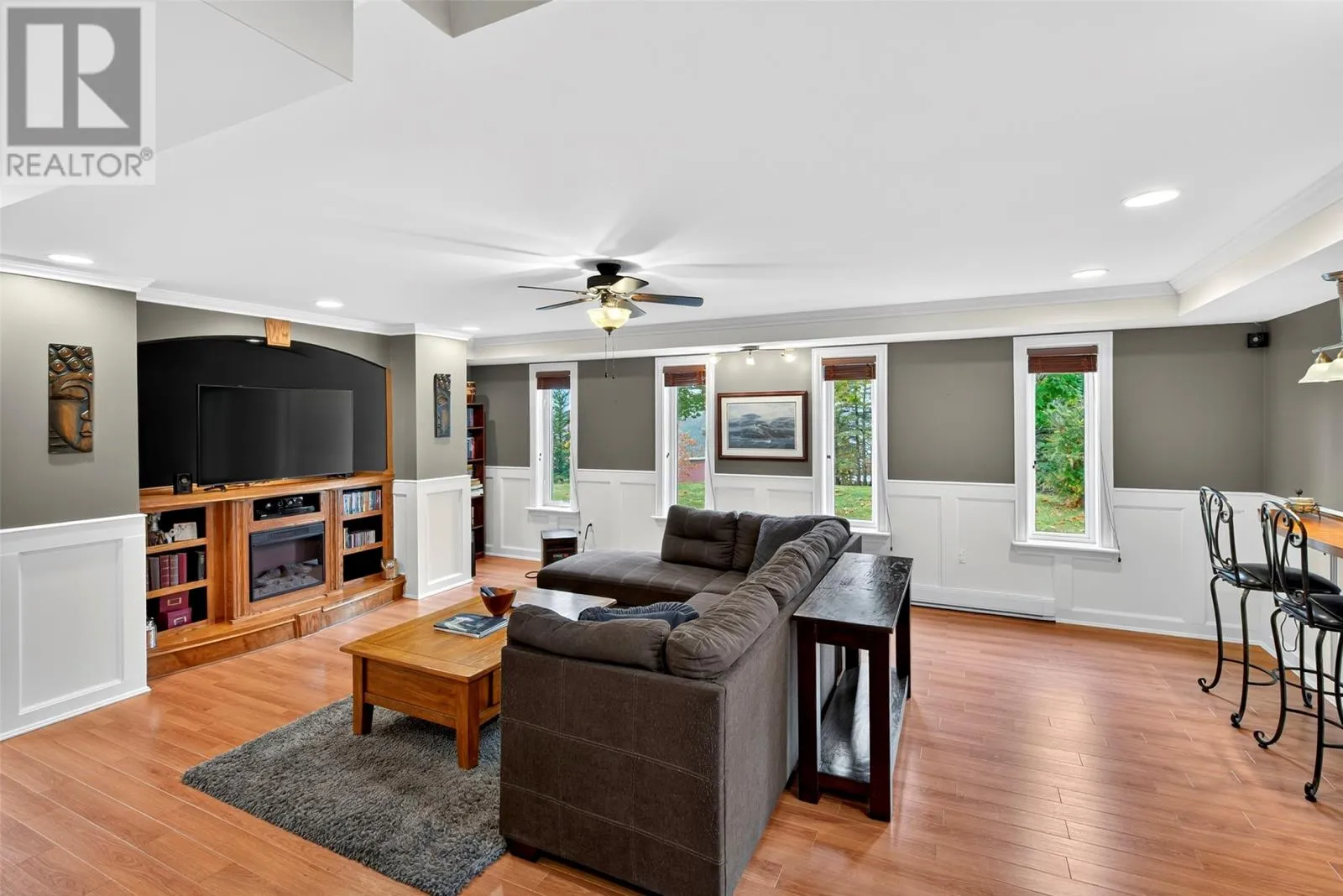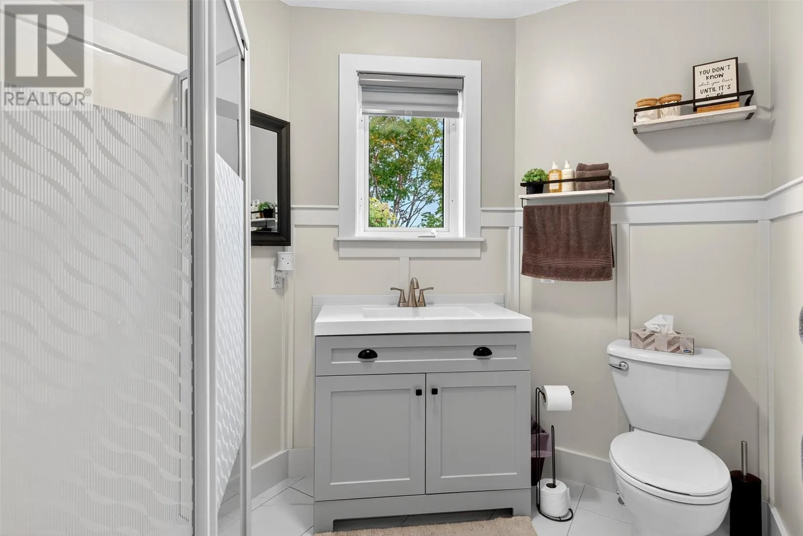 Welcome to this beautifully crafted 3-bedroom plus office, 2-bathroom home, thoughtfully designed and built to last with quality and comfort in mind. Every detail has been carefully considered â from the 2x6 exterior walls, James Hardie cement siding, and 35-year shingles (approx. 12 years old) to the underground electrical service, exterior hot and cold water taps, and stamped concrete patios that add both function and curb appeal. Set on a mature, private lot surrounded by large trees, this property offers the perfect mix of outdoor space and quiet relaxation, with plenty of lawn space and an ocean view. The ~1300 sqft detached garage is a standout feature, offering ample garage and storage space, plus an entertaining area and half bathroom â ideal for gatherings, hobbies, or a workshop. Inside, the main level is warm and inviting, featuring a spacious kitchen with a large island, a bright dining area, and a comfortable living room. Youâll also find one bedroom, a full bathroom, a dedicated office, laundry room, and a step-down family room perfect for cozy evenings or movie nights. Up the beautiful hardwood staircase, youâll find another bedroom with walk-in closet and the impressive primary suite, complete with a huge walk-in closet and a private ensuite. The home also includes a crawl space for abundant storage and a mini-split heat pump for efficient heating and cooling year-round. This is a home that truly checks all the boxes â quality construction, thoughtful design, privacy, and space â ready to offer comfort for years to come. (id:27476)