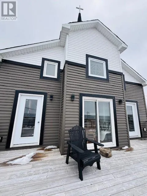 Perched above with sweeping ocean views, this former United Church has been masterfully transformed into a striking three unit residence that blends historic architecture with modern design. Its soaring ceilings and warm character remain, while the interior now offers a versatile layout suited to many lifestylesâuse it as a spacious single family home, live in one unit while renting the others, or operate all three as income producing rentals. The two side units are charming tiny-homeâstyle spaces with open, light-filled living and dining areas, full bathrooms, and cozy lofts that make perfect tucked away sleeping quarters or lounge nooks. Ideal for guests, they offer comfort, charm, and a touch of adventure. The main unit serves as the heart of the property. A bright, expansive living, dining, and kitchen area showcases the buildingâs original height and openness, with sunlight highlighting warm wood tones throughout. This unit includes a large bathroom, a convenient laundry nook, a flexible loft space, and a generous mudroom for all your storage needs. All units are impeccably designed, featuring an inspiring collection of repurposed materials and beautifully handcrafted details that give each space its own unique character. Each unit has its own private entrance and electrical panel, ensuring privacy and independence. All share access to the expansive ocean facing deck with an unforgettable vantage point for sunrise views, salty breezes, drifting icebergs, and the daily rhythm of fishing boats heading out to sea. Life in Greenspond feels like stepping into a living postcard. As one of Newfoundlandâs oldest outport communities, it offers rugged coastal beauty, deep marine history, and a warm, close knit spirit. The area is home to local gems on the scenic route. It offers gorgeous beaches, rugged coastlines, and endless opportunities to spot wildlife, icebergs, and whales. This property captures the essence of outport living in a truly exceptional way. (id:27476)