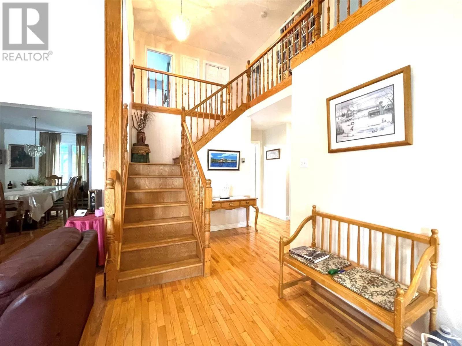 Stunning Tudor-Style Home on Nearly 2 Acres in Hare Bay, NL â A Nature Loverâs Paradise! Welcome to this spectacular, one-of-a-kind property in the peaceful town of Hare Bay, Newfoundland. Set on nearly 2 acres of manicured grounds, this idyllic retreat is perfect for nature lovers. Enjoy serene walks through flowering trees, blue spruce, hardwoods, mature shrubs, and vibrant perennial gardens. At the heart of the property is a custom-built, two-storey Tudor-style home brimming with charm and character. With nearly 2,700 sq. ft. of finished space, itâs designed for comfort and elegant entertaining. A grand entrance foyer welcomes you and sets the tone for the craftsmanship throughout. The open-concept main floor is filled with natural light and features gleaming solid oak hardwood floors. The eat-in kitchen is a chefâs delight with a large island, built-in stovetop, wall oven, dishwasher, ample cabinetry, and generous counter spaceâideal for hosting family and friends. From the kitchen, step into an entertainment-sized family room with patio doors that open to a deck and patio areaâyour private nature retreat. The main floor also offers a formal dining room (with space for a hutch), a cozy living room with cathedral ceilings and wood-burning fireplace, a powder room, laundry room, and access to the oversized wired garage. Upstairs are four spacious bedrooms, including a massive primary suite with a large picture window offering stunning viewsâa perfect way to start the day. The primary also features an undeveloped ensuite (some fixtures included, per seller). A bonus activity/rec room and walk-up attic complete the second floor. Outside, enjoy parking for six or more vehiclesâgreat for cars, ATVs, or boats. This is more than a homeâitâs a lifestyle. Donât miss your chance to make it your Forever Home! (id:27476)