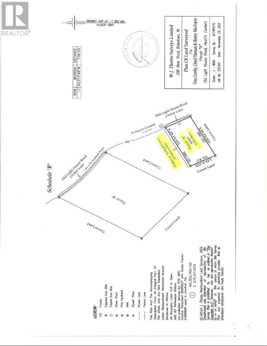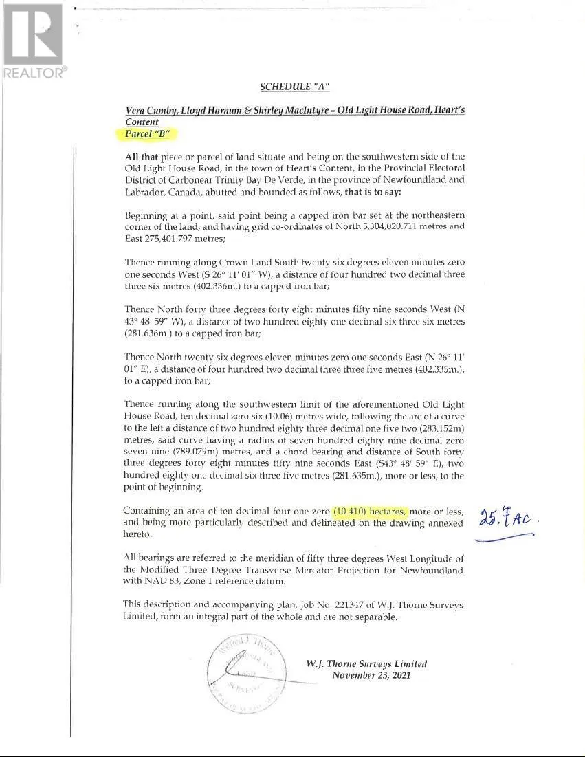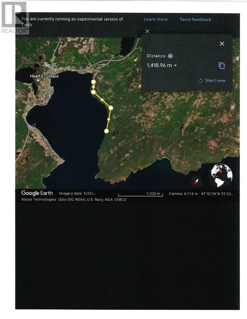 An Estate sized assembly of land comprised of 31.535 acres acres . Treed Land that was once farmed that can afford privacy for the most discriminating individual (s ).There is also a small beach that could accomodate a small wharf ( with government approval )Being the deepest water port in NL, this surely is a bonus Historic Heart's Content -site of the first Trans Atlantic Cable.Pitcher's Ponds Golf Course is located in nearby Whiteway--achallenging 9-hole. (id:27476)