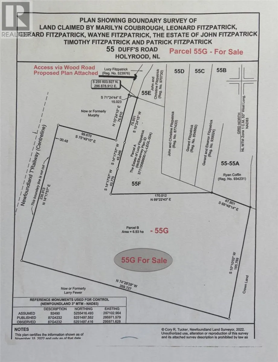 Access is available via Wood's Road off Duff's Road. For sale is a sprawling 17.124-acre parcel of wooded land, boasting approval in principle for a residential development. Situated in the picturesque Holyrood area, this property offers captivating ocean views. The buyer would be responsible for all design and development plans and associated costs, subject to approval by the Town of Holyrood. Additionally, any applicable HST would be the responsibility of the buyer. Aerial drone shots, showcasing the elevation over Conception Bay, are included in the photo gallery for your perusal. Furthermore, a proposed access road plan via Woods Road off Duff's Road is readily available for review. (id:27476)