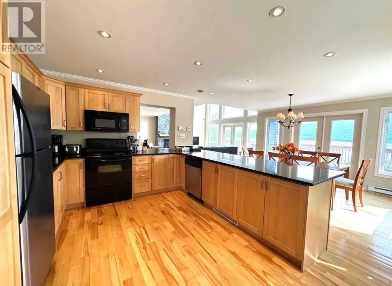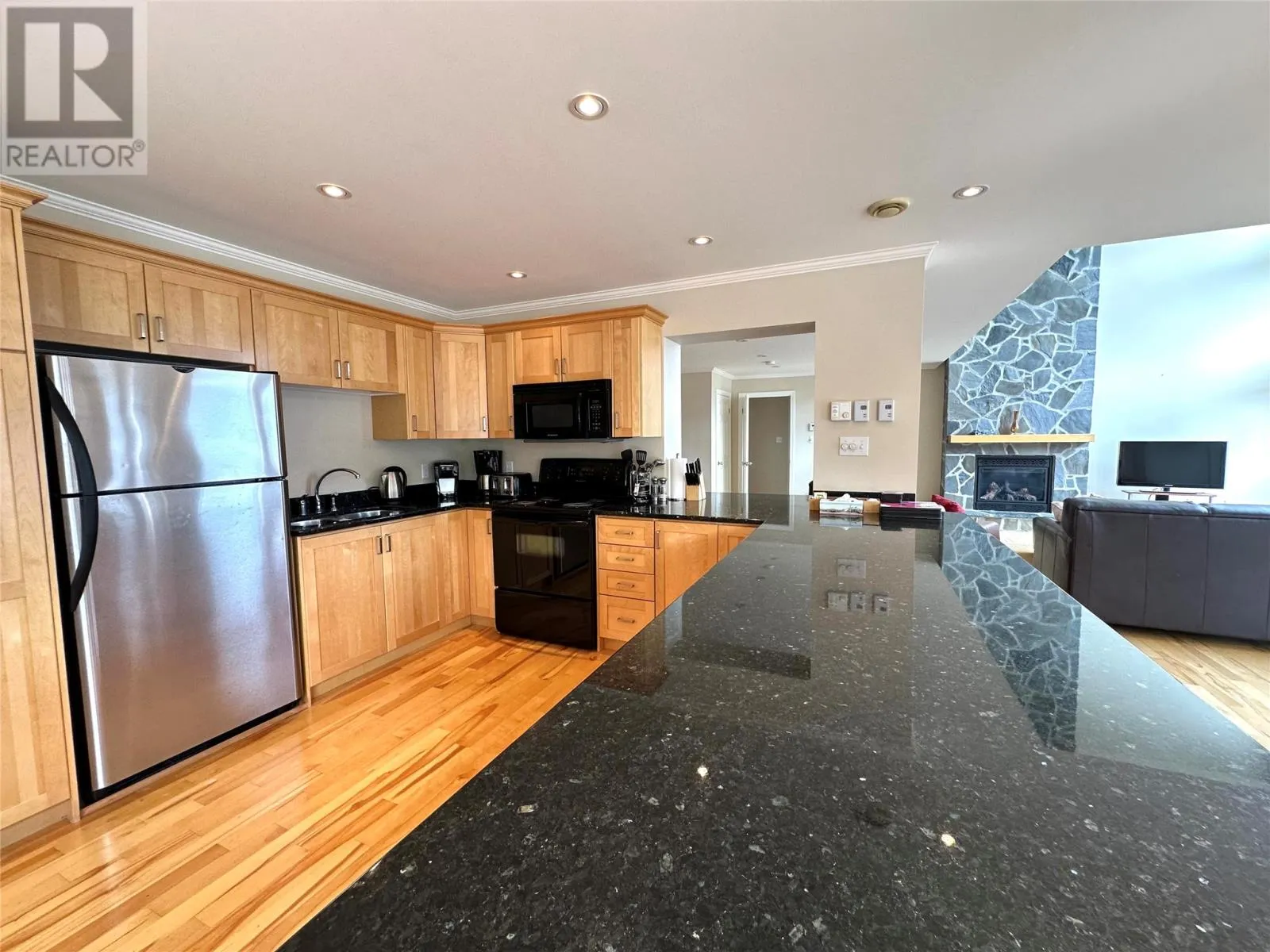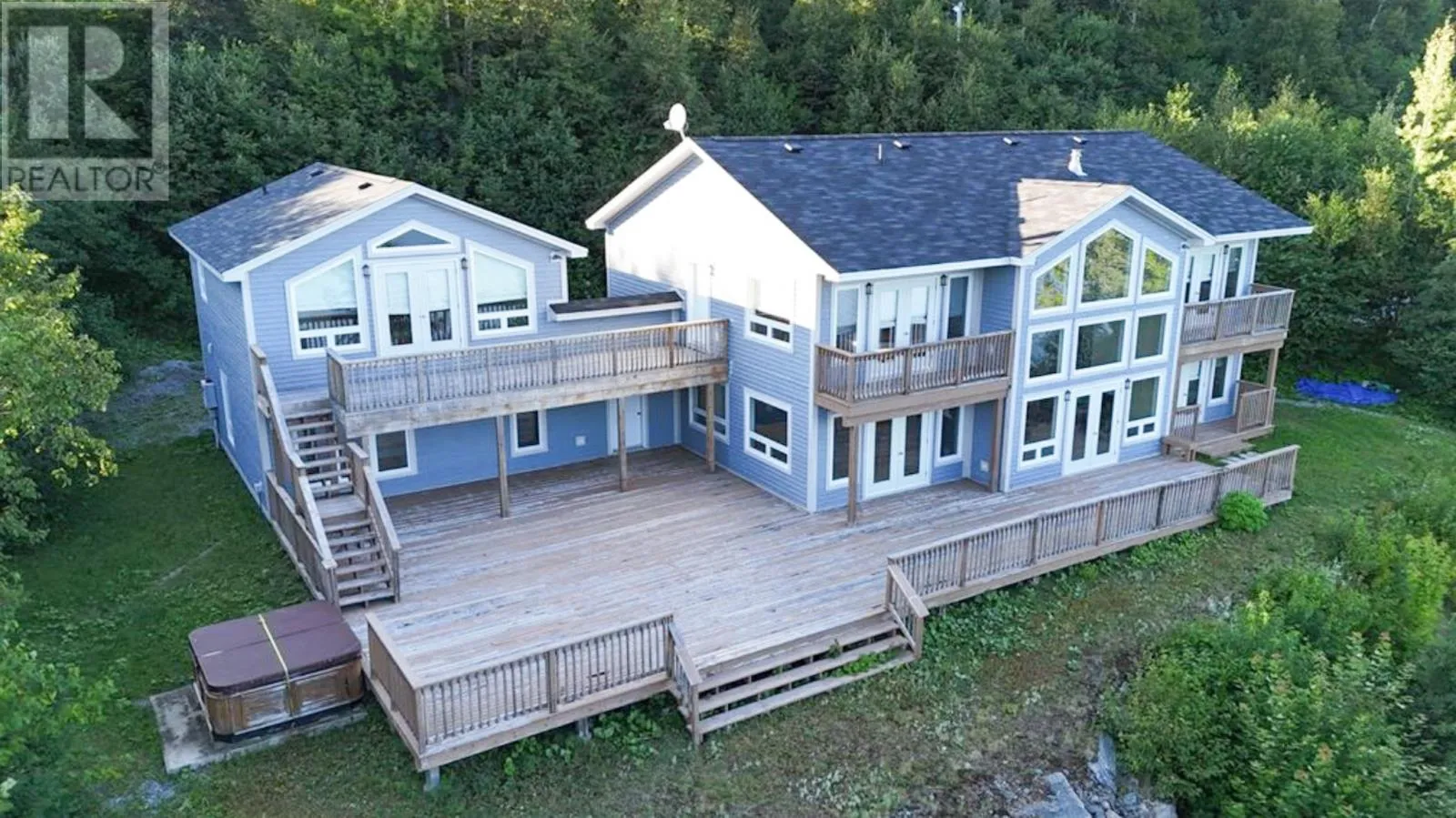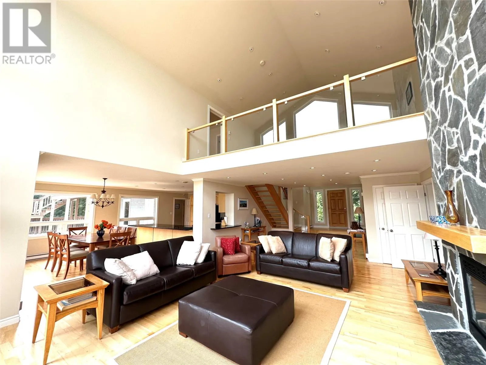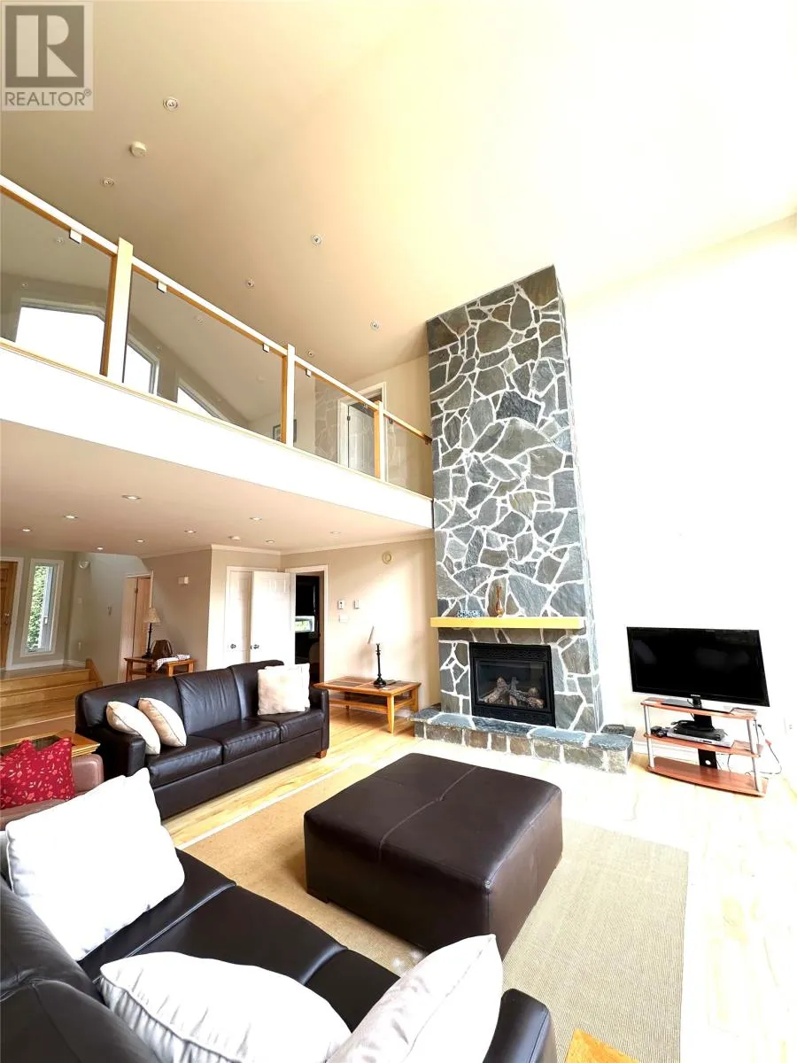 48 Lakeside Drive is located on the waterfront just minutes from the bridge at Humber Valley Resort. This stunning floor plan is a unique opportunity to own your dream lakefront home. The front entrance immediately opens into vaulted ceilings with a view of the water from every angle. This chalet has five spacious bedrooms each with ensuites and sixth bonus space ideal for a home gym or a smaller guest room. The kitchen and dining areas are ideal for entertaining with custom stone countertops, a large peninsula and an open concept kitchen all with stunning views of the lake. There is hardwood flooring throughout and the large mezzanine adds extra square footage and completes the chalets appeal with the best view Humber Valley has to offer. The glass staircase allows access to the second level of the home, the main living space has a floor to ceiling stone propane fireplace and the expansive windows boast plenty of natural light on all levels. Above the garage is a large bedroom separate from the main living space with vaulted ceilings and a walk out patio. This chalet is located just minutes from world class salmon fishing on the Humber River and has access to the snowmobile groomed trail system and ATV trails. This chalet is in a prime resort location, perfect for family living or an ideal rental income property. Humber Valley Resort Restrictive Covenants and Agreements apply to the purchase of this property. There is NO HST applicable to this sale. (id:27476)
