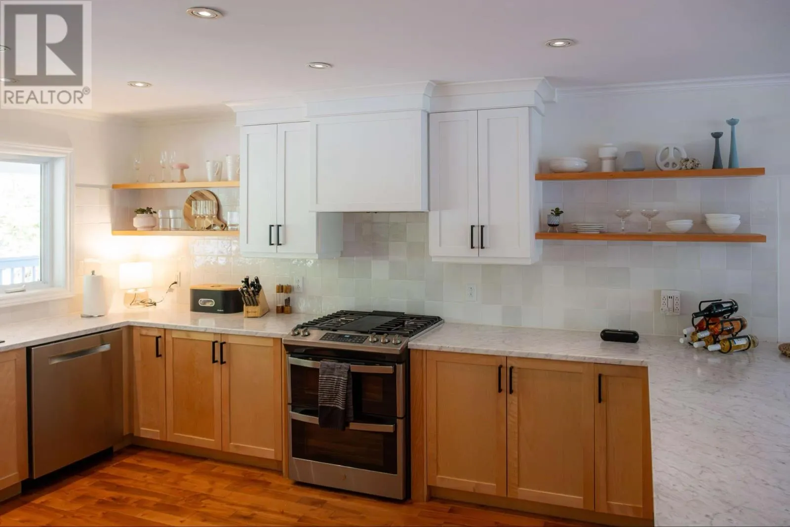 Welcome to a truly one-of-a-kind property in the prestigious gated community of Humber Valley Resort, home to an 18-hole championship golf course & at the doorstep of the Western Snow Riders groomed snowmobile trails. This custom-built Spruce Meadow design chalet is the only one of its kind in the entire resort, offering a distinctive floor plan and architectural character that sets it apart from every other home in the community. Since its purchase in 2022, this residence has been completely transformed inside and out with extensive renovations and thoughtful upgrades. Nearly every detail has been elevated to create a move-in-ready luxury retreat. Exterior Enhancements: â¢Fully landscaped grounds with top-grade sod, perennial shrubs, and a fire pit area. â¢Property prepped for a future 20â x 20â detached garage. â¢Entire exterior painted in 2024, including patios and railings. â¢Only chalet in the resort with covered wraparound patio. â¢Upgraded exterior lighting and installation of five new doors, plus conversion of one exterior door to a window to maximize views. Interior Features & Renovations: â¢Brand new custom kitchen with gas range and stove. â¢Fully renovated primary bathroom. â¢Addition of a sixth bedroom with custom storage on second floor. â¢New main foyer on the lower level. â¢All interior walls plastered and painted (except laundry, sauna and utility rooms). â¢New overhead and pot lighting throughout. â¢Electrical upgrades including a generator back feed and EV car charger. â¢New toilets in the main floor bath and lower-level half bath. This chalet is being offered unfurnished, and purchasers should note that Humber Valley Resort restrictive covenants and agreements apply. With its unmatched design, extensive renovations, and prime setting within one of Newfoundlandâs most desirable resort communities, this property represents a rare opportunity to own a chalet unlike any other. (id:27476)