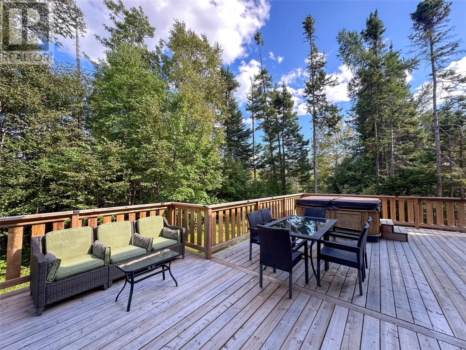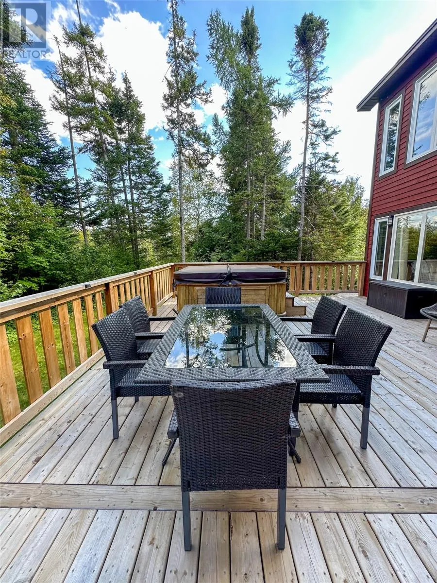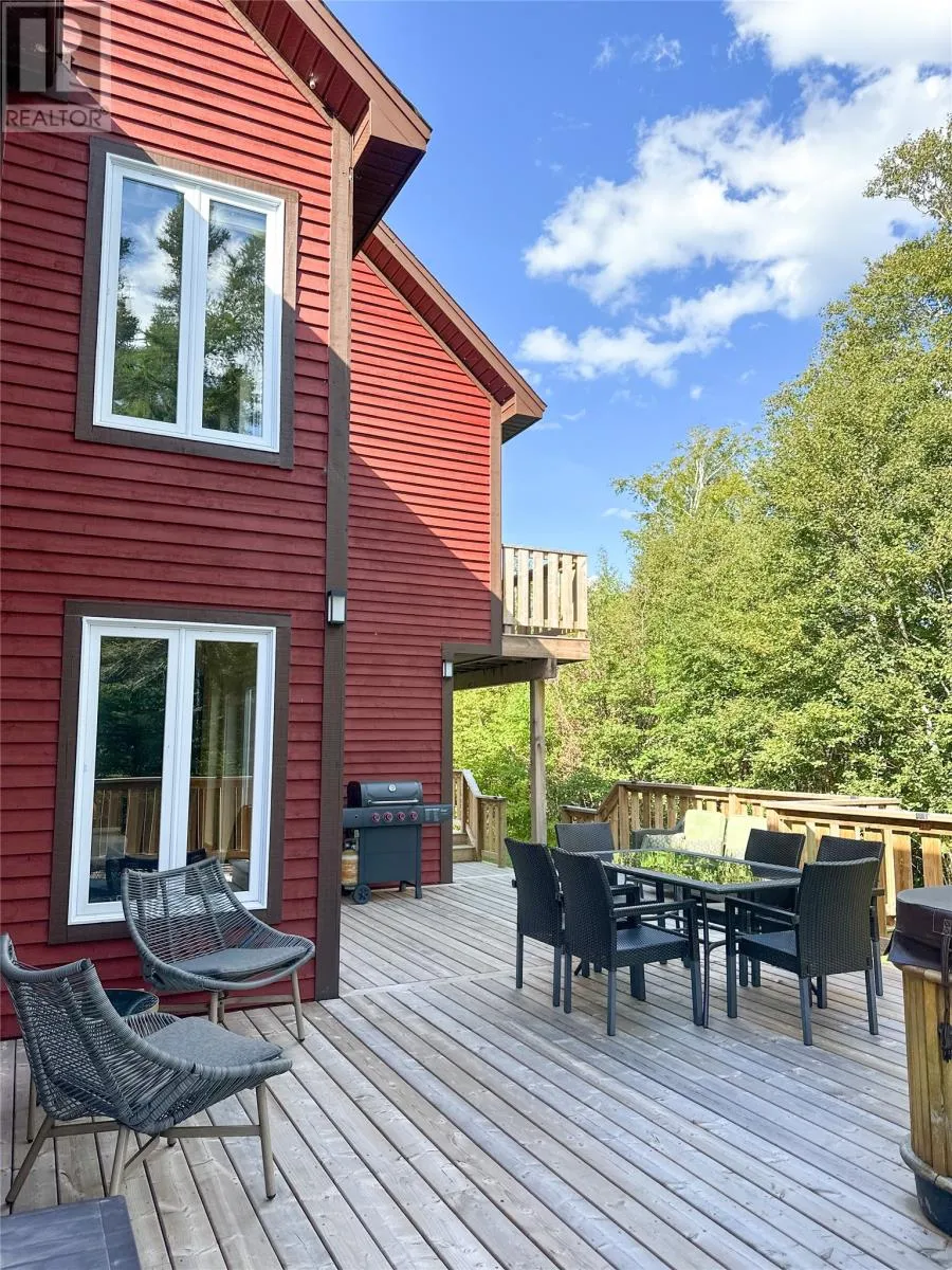 Welcome to 6 Poplar Place, Humber Valley Resort. Perfectly situated on a level and landscaped one acre lot surrounded by beautiful trees in a quiet and centrally located area of the resort. This five bedroom, six bathroom chalet comes equipped with absolutely everything you need in a forever home or vacation and rental property. The current owners of this chalet have upgraded every possible aspect required including new: 24,000BTU mini split, shingles, pressure treated decking, hot water tank, microwave, stove, washer, dryer along with new fresh exterior and interior paint. This home features hardwood flooring throughout, a stone propane fireplace for cozy ambiance and the space is decorated and styled to perfection. The large wrap around deck on the home offers a beautiful outdoor oasis, there is a hot tub and modern patio furniture sets which completes the perfect space to enjoy your morning coffee or unwind after a long day. The open concept space has the perfect flow, each bedroom has its own ensuite and large closet, there is a separate wing and entrance to the home and the basement has multiple spaces that can be easily converted into a rec-room, home gym or workshop and hobby space. This home is being sold fully furnished and complete with everything as seen. 6 Poplar Place is just minutes from one of the top rated golf courses in Canada, world class salmon fishing on the Humber River and access to the groomed snowmobile and ATV trails. Book your viewing to see this beautiful property today! *There is no HST applicable, Humber Valley Resort restrictive covenants and agreements apply to the purchase of this sale* (id:27476)
