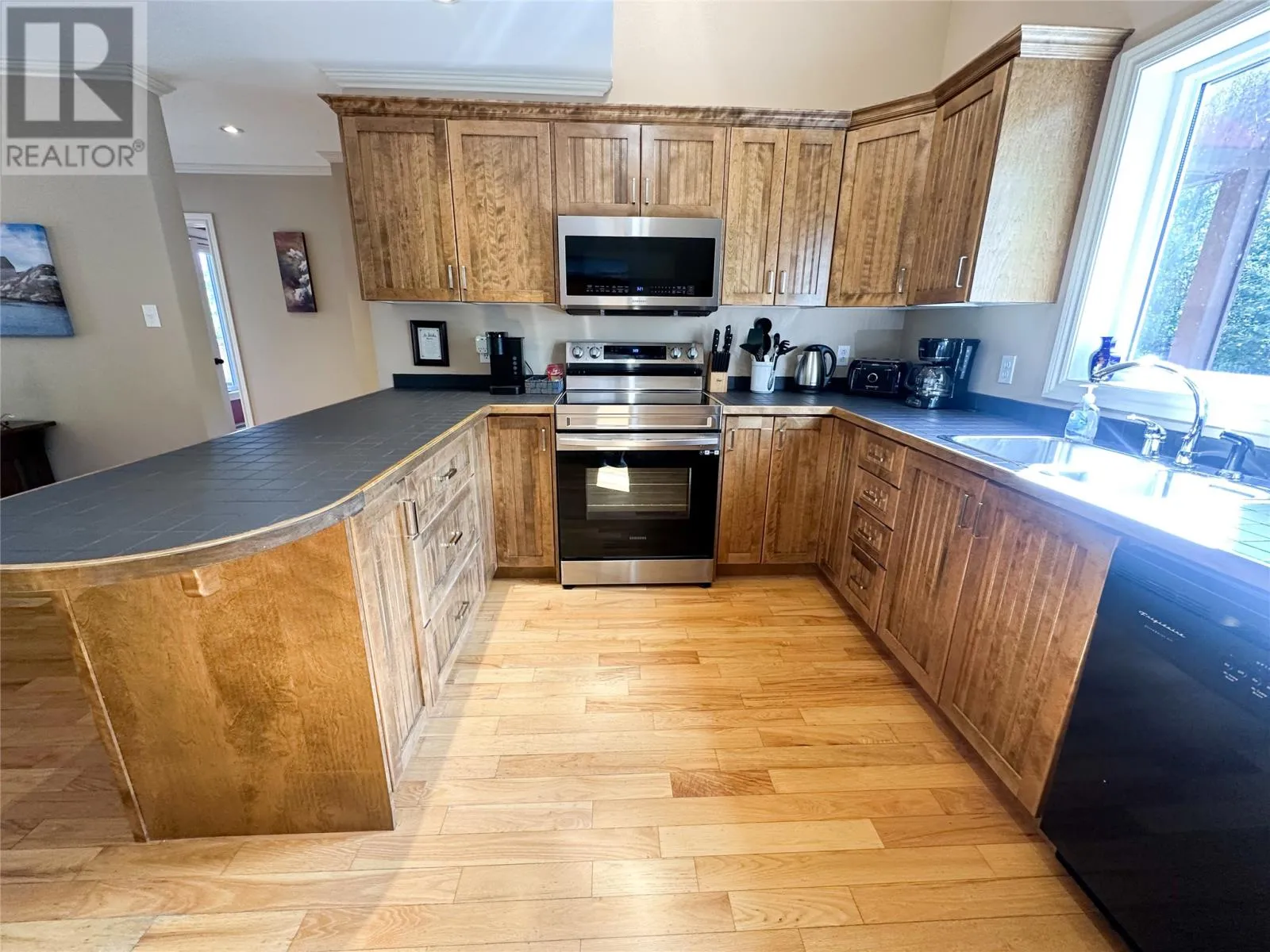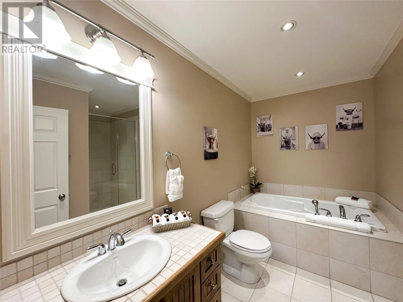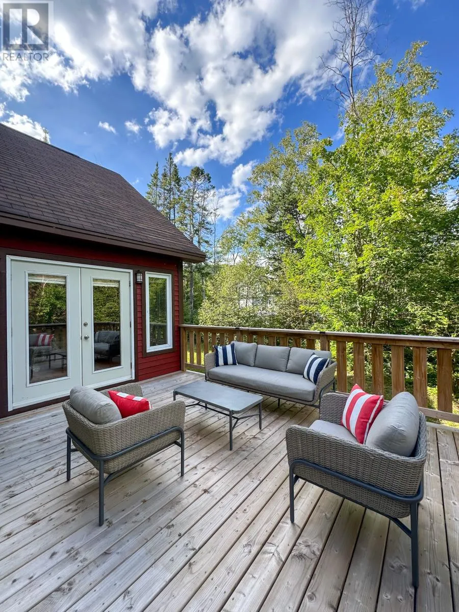 Welcome to 6 Poplar Place, Humber Valley Resort. Perfectly situated on a level and landscaped one acre lot surrounded by beautiful trees in a quiet and centrally located area of the resort. This five bedroom, six bathroom chalet comes equipped with absolutely everything you need in a forever home or vacation and rental property. The current owners of this chalet have upgraded every possible aspect required including new: 24,000BTU mini split, shingles, pressure treated decking, hot water tank, microwave, stove, washer, dryer along with new fresh exterior and interior paint. This home features hardwood flooring throughout, a stone propane fireplace for cozy ambiance and the space is decorated and styled to perfection. The large wrap around deck on the home offers a beautiful outdoor oasis, there is a hot tub and modern patio furniture sets which completes the perfect space to enjoy your morning coffee or unwind after a long day. The open concept space has the perfect flow, each bedroom has its own ensuite and large closet, there is a separate wing and entrance to the home and the basement has multiple spaces that can be easily converted into a rec-room, home gym or workshop and hobby space. This home is being sold fully furnished and complete with everything as seen. 6 Poplar Place is just minutes from one of the top rated golf courses in Canada, world class salmon fishing on the Humber River and access to the groomed snowmobile and ATV trails. Book your viewing to see this beautiful property today! *There is no HST applicable, Humber Valley Resort restrictive covenants and agreements apply to the purchase of this sale* (id:27476)