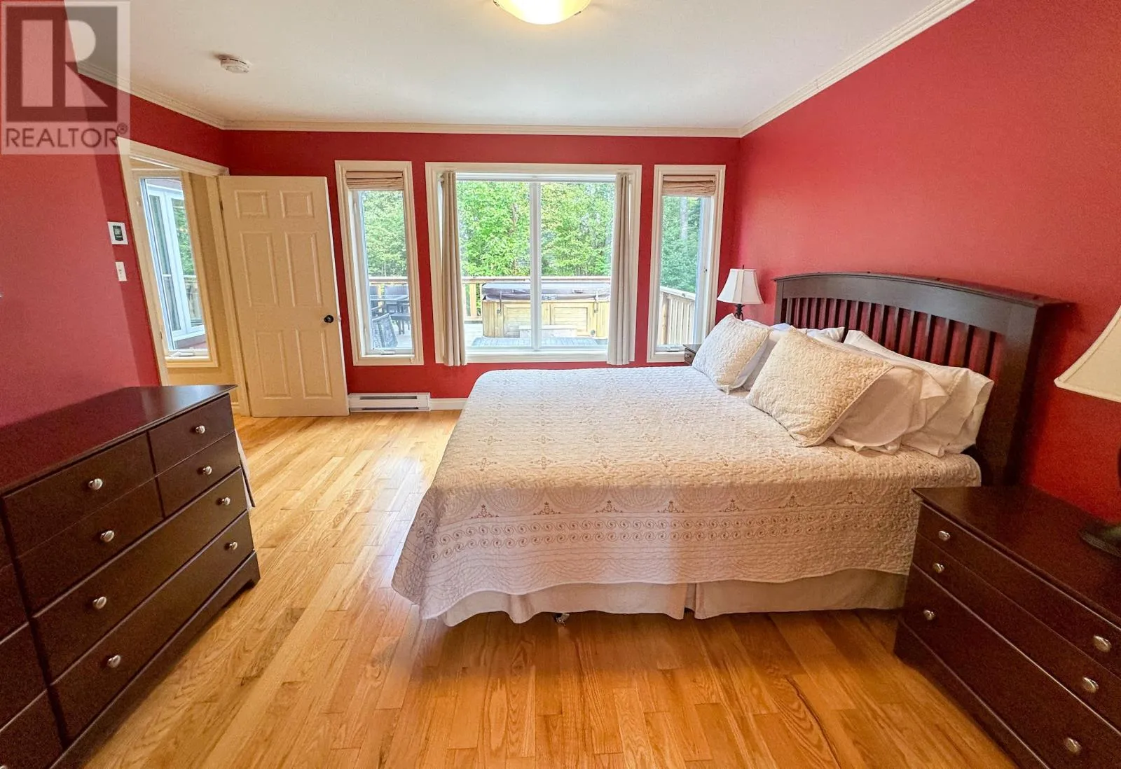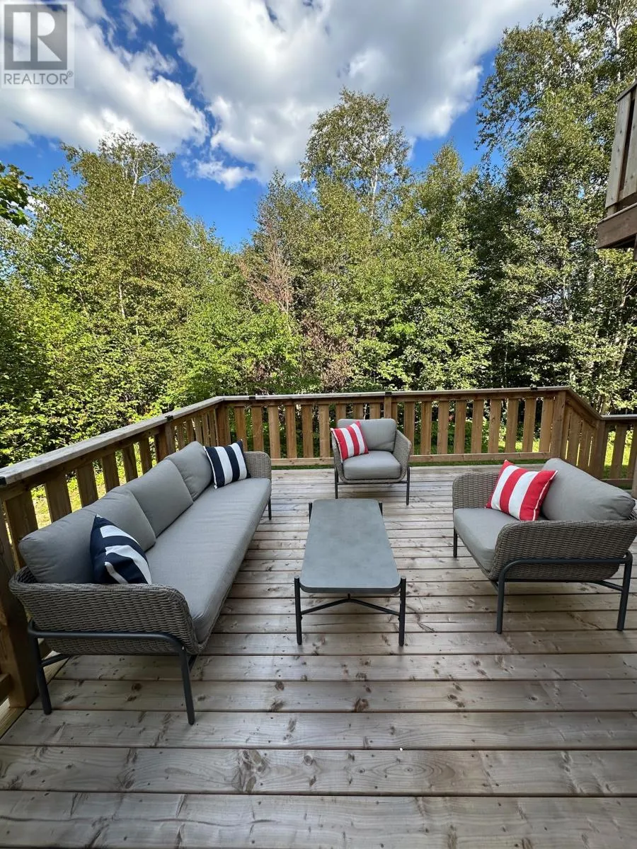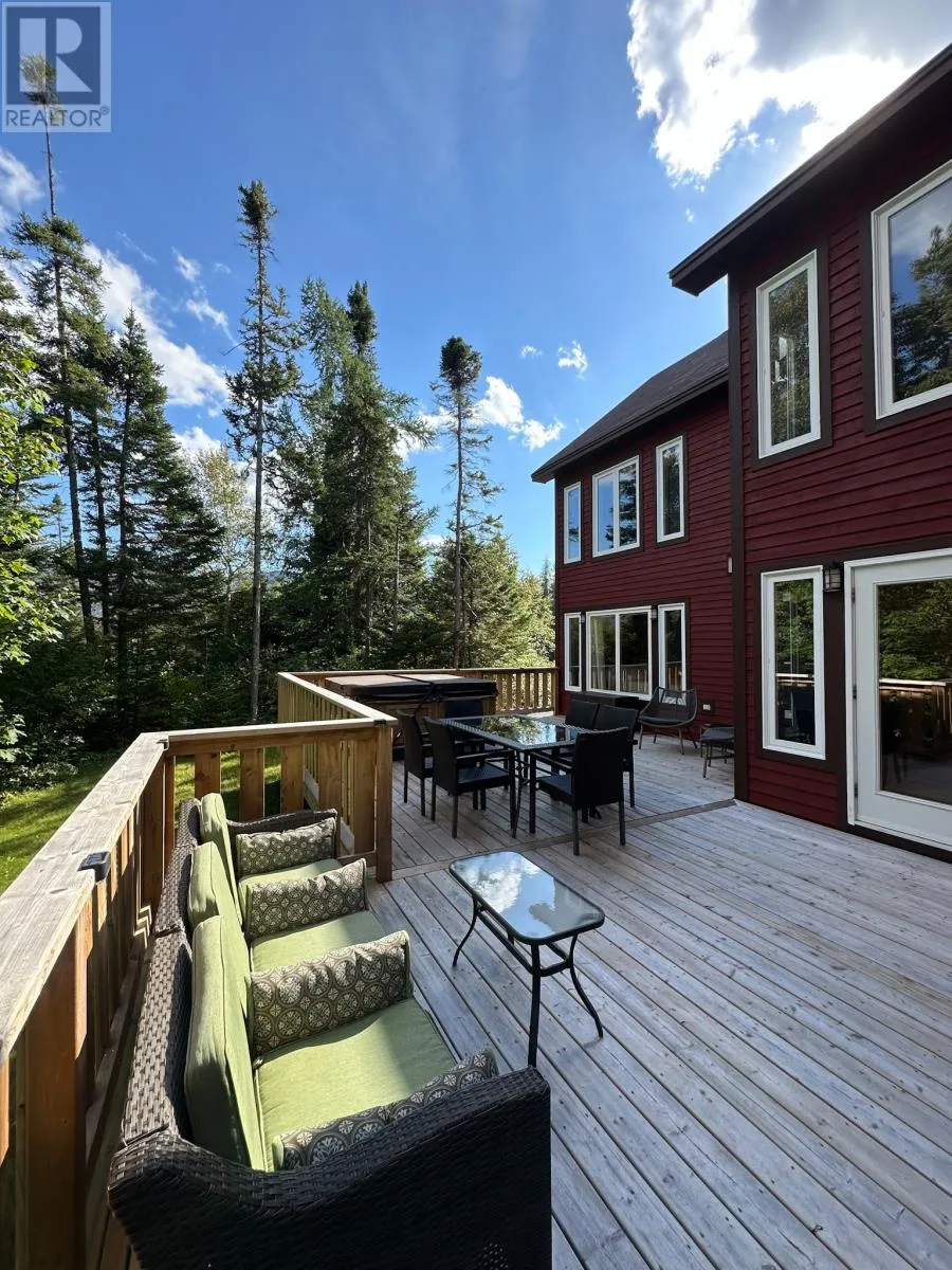 Welcome to 6 Poplar Place, Humber Valley Resort. Perfectly situated on a level and landscaped one acre lot surrounded by beautiful trees in a quiet and centrally located area of the resort. This five bedroom, six bathroom chalet comes equipped with absolutely everything you need in a forever home or vacation and rental property. The current owners of this chalet have upgraded every possible aspect required including new: 24,000BTU mini split, shingles, pressure treated decking, hot water tank, microwave, stove, washer, dryer along with new fresh exterior and interior paint. This home features hardwood flooring throughout, a stone propane fireplace for cozy ambiance and the space is decorated and styled to perfection. The large wrap around deck on the home offers a beautiful outdoor oasis, there is a hot tub and modern patio furniture sets which completes the perfect space to enjoy your morning coffee or unwind after a long day. The open concept space has the perfect flow, each bedroom has its own ensuite and large closet, there is a separate wing and entrance to the home and the basement has multiple spaces that can be easily converted into a rec-room, home gym or workshop and hobby space. This home is being sold fully furnished and complete with everything as seen. 6 Poplar Place is just minutes from one of the top rated golf courses in Canada, world class salmon fishing on the Humber River and access to the groomed snowmobile and ATV trails. Book your viewing to see this beautiful property today! *There is no HST applicable, Humber Valley Resort restrictive covenants and agreements apply to the purchase of this sale* (id:27476)