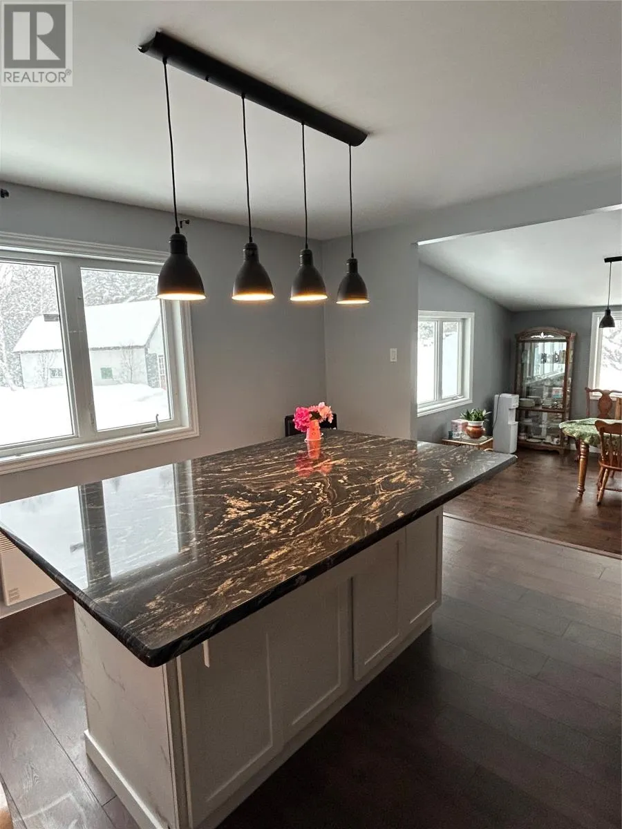This beautiful property would be a perfect family home. This residence is nestled on 2.5 Acres of land and features abundant natural sunlight from the many windows throughout. The home offers four bedrooms, with the potential for a fifth bedroom or nursery, along with 2.5 bathrooms. The primary bedroom is conveniently located on the main floor and includes a spa-like ensuite bathroom and a walk-in closet. The gorgeous kitchen features an island with a granite countertop and overlooks the dining room. This area flows into the main floor family room, which is equipped with a woodstove, creating a cozy space for reading. The large living room, with its cathedral ceiling, is ideal for gathering with family and friends, especially during the holidays. Extra's offered -Infra Light Water System as well a Reverse Osmosis (id:27476)