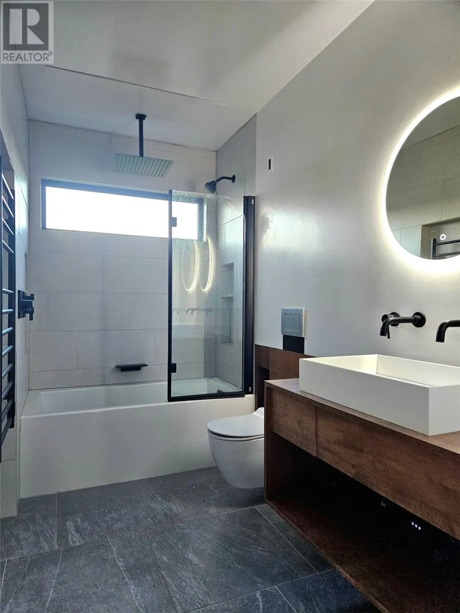 Your search for a one-of-a-kind, custom-designed, and fully renovated luxury home ends now! This masterpiece features a dream kitchen with custom birch and walnut soft-close cabinetry, a huge island with a gas range, and professional-grade appliances. The main level is bathed in natural light from triple-pane windows and features an inviting entryway with heated porcelain floors. Cozy up by the dual-sided propane fireplace shared between the living room and primary bedroom. The main bathroom offers a spa-like experience with heated porcelain flooring, a dual-showerhead custom shower, and a towel warmer. Descend the stunning monorail solid oak staircase to the lower-level rec room, complete with bright windows and I-beam supports, plus two good-sized bedrooms and a full bath. Year-round comfort is guaranteed with a ducted heat pump and ducted propane fireplace system. Included in this property is a detached 24' x 28' wired, insulated, and plumbed garage! Don't miss this opportunity to own a comfortable, well-built, and truly unique home. (id:27476)