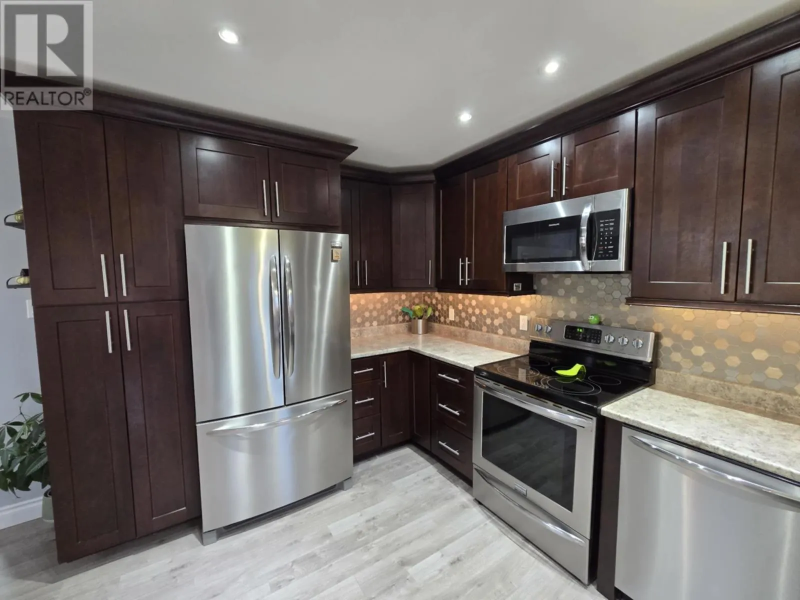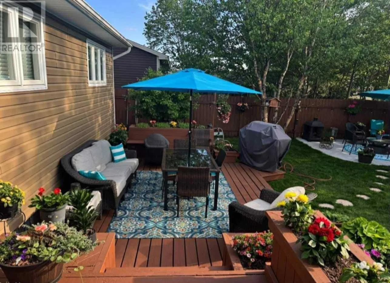 Welcome to this beautifully upgraded bungalow offering style, comfort, and thoughtful design throughout. Featuring all-laminate flooring on the main level, a warm open-concept kitchen and dining area with rich hardwood cabinetry and an eye-catching hexagon tile backsplash, this home feels both modern and welcoming. Vinyl windows and a newer roof (2023) provide peace of mind for years to come. The living area includes a striking feature wall with built-in electric fireplace and TV â the perfect place to unwind. Three well-appointed bedrooms and a full bath with whirlpool complete the main floor. Downstairs is an incredible extension of the home: a spacious family room, designed for relaxation or entertainment, plus a generously sized bonus room with a custom walk-in closet, and a beautifully updated bath with a 5' MAAX shower system. The laundry room is bright, functional, and tastefully finished. Step outside to your private summertime oasis. Fully fenced and thoughtfully landscaped, the backyard offers plenty of room to relax â and all outdoor furniture is included. The heated, wired garage (20'x22') and asphalt driveway provide excellent parking and storage options. This home has been meticulously cared for, with a clean Property Disclosure! As per sellers direction - no conveyance of written signed offers prior to 4pm Sunday, November 2, 2025. All offers are to be left open for acceptance until 5pm November 2, 2025. (id:27476)
