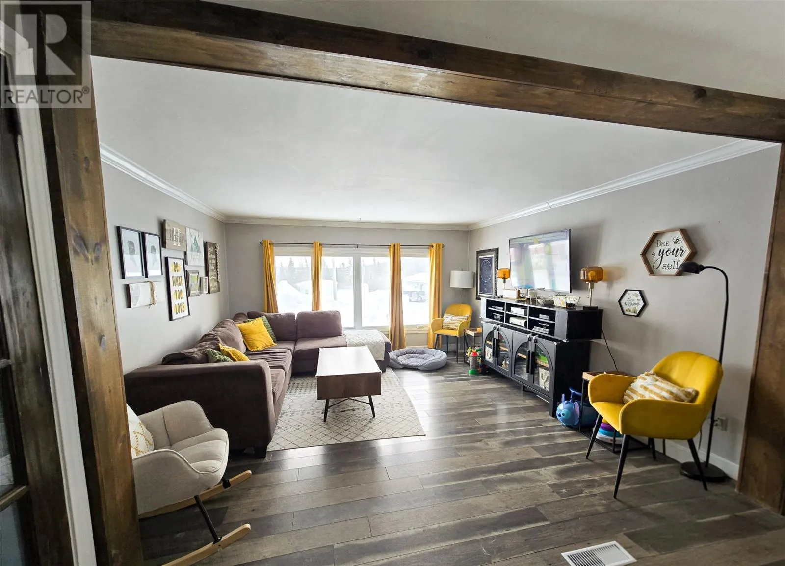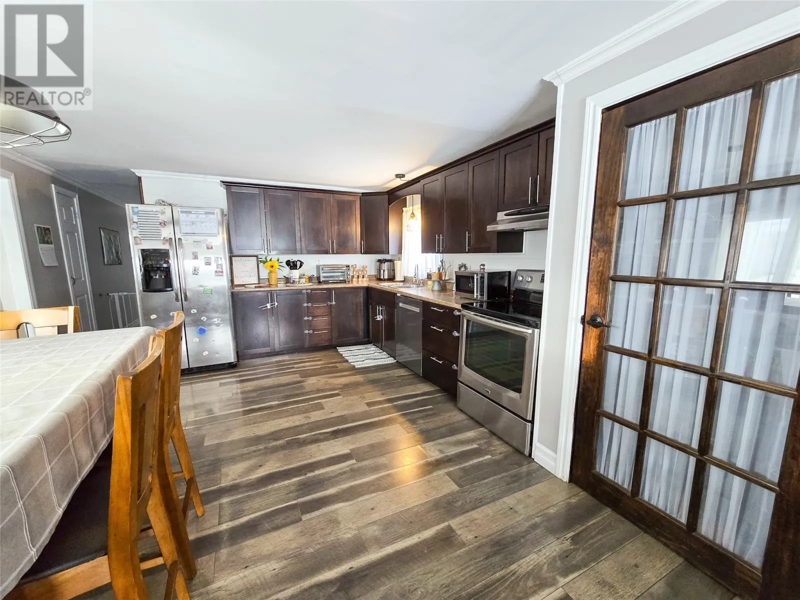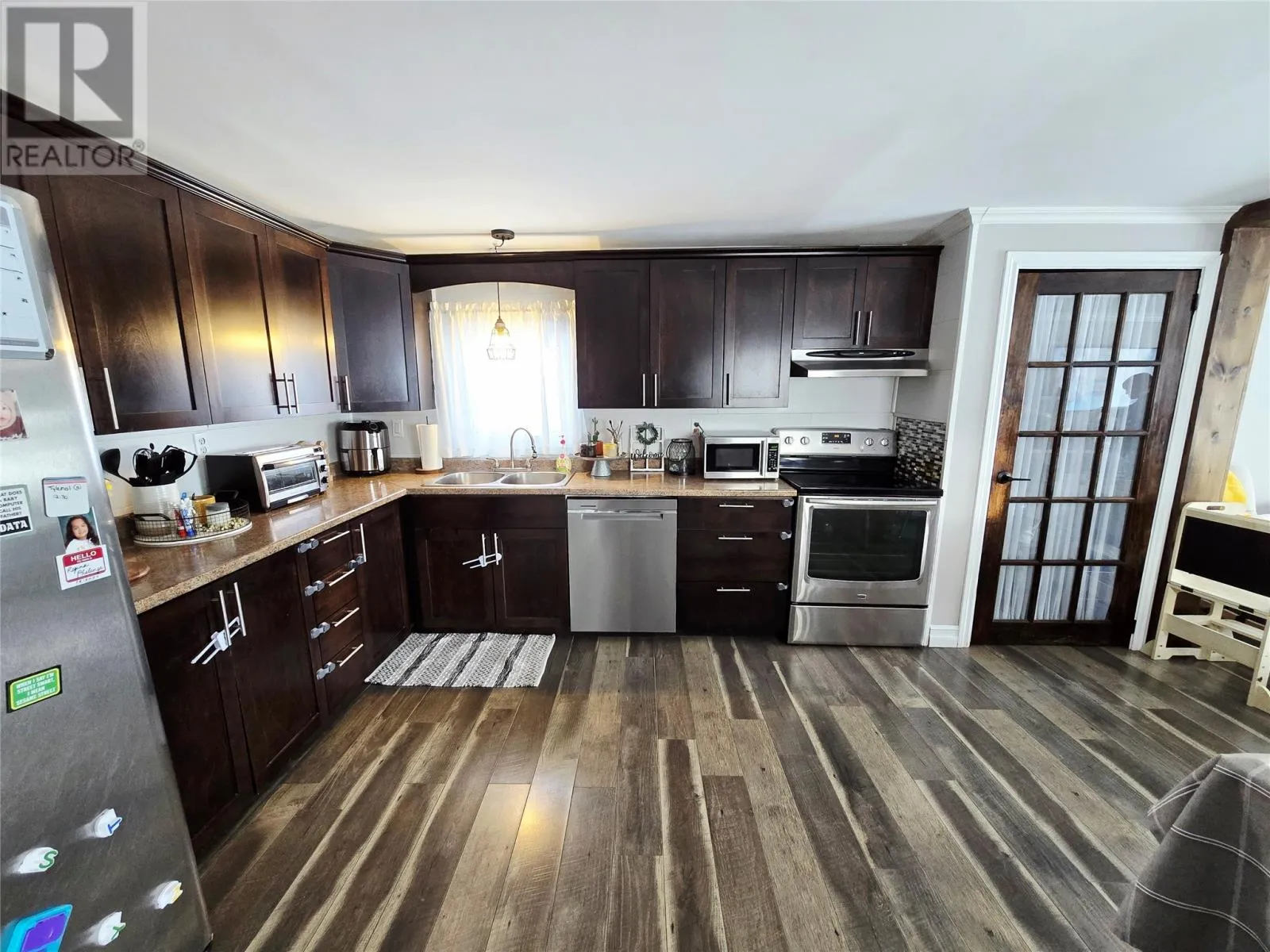 Beautifully updated 3-bedroom, 1-bath single-level family home offering modern comfort and functional living. The bright open-concept living, dining, and kitchen area has been completely upgraded, creating a welcoming space perfect for both everyday living and entertaining. This home features three large bedrooms and a beautiful full bath. Step outside to enjoy the large front deck, ideal for relaxing or hosting guests. The paved driveway provides ample parking. A standout feature of this property is the detached 2-storey garage (13x17), complete with wood flooring, aspenite walls, and full insulation with heat. The second level offers additional storage or hobby space with 5 ft ceilings. A great opportunity for buyers seeking move-in ready convenience with added workspace and storage. (id:27476)