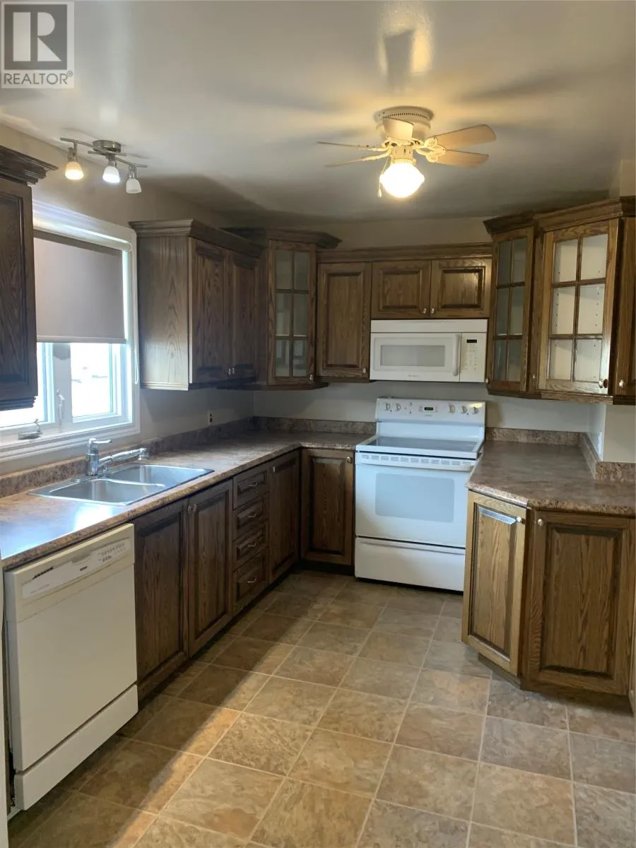 Location is key and this cute and cozy bungalow is located at 61 Pine Avenue in the hub of Lewisporte on a corner lot; in very close proximity to schools (including Dietrac Technical Institute) medical clinics, ATV/Snowmobile trails, snowshoe and cross country trails, bowling alley, stadium, marina, and more. This home consists of 3 Bedrooms, two 3-Piece baths and a fully developed basement with over 2200 square feet of living space in total!!! The kitchen has beautiful cupboards with a built-in microwave and dishwasher. Leading from the kitchen is an open concept dining and living room area, great for entertaining. The main level also features a 3-piece bathroom, 3 spacious bedrooms with closets and a linen closet in the hallway. There is a side entrance as well with a mudroom. Downstairs boasts an enormous 26x16 rec room, two spare rooms, laundry room and storage room. Itâs heated with baseboard electric with the option of a wood stove if one desires (Currently disconnected) It has an air exchanger plus 200 AMP service, so it can easily support a heat pump (mini split) or two to cut down on heating cost and provide you with cool air in the summer. Enjoy BBQs on the back step while your pet runs free in the fully fenced backyard. There is an 8x8 storage shed. The driveway is fully paved. Recent upgrades include a new hot water tank in 2022 and new shingles in 2022. This is a great home in a highly sought after kid friendly neighborhood and its move in ready. (id:27476)