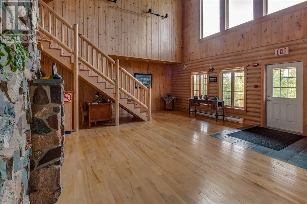 HST to be applied to purchase price. Welcome to Bluewater Lodge and Retreat, situated in central Newfoundland, off the TCH, just 3 kms east of route 340, Notre Dame Junction. This stunning, majestic cedar log lodge is on a private treed lot overlooking beautiful Indian Arm Lake. Step inside to a chefâs kitchen, with 2 ranges, 2 refrigerators, a stand-up freezer, abundance of counter space, as well as a large work island. Enjoy the walkout deck to a covered BBQ hut, perfect for entertaining. Come back in to enjoy a majestic floor-to-ceiling stone fireplace in the spacious living area, ensuring a warm and inviting atmosphere. The lodge is fully furnished with 10 comfortable, private rooms with ensuites. The oversized owners suite is located on the second level with a king size bed, fireplace, walk-in closet, ensuite, plus a gorgeous view of the lake and surrounding forest. There are spacious relaxation areas, and multiple spaces for meetings and gatherings. Bluewater also has a separate, fully equipped conference/meeting area. A large laundry room consists of 2 large, high-efficiency washers and dryers, as well as ample storage. Outside, private decks surround the lodge. Experience a genuine wilderness retreat, whether winter, spring, summer, or fall. Bluewater Lodge is ideally situated for any season. Take a stroll on wooded paths surrounding the lake, or relax on one of the decks overlooking the water with a private dock/beach area sitting in its own secluded cove where Atlantic salmon routinely splash as they journey up the Campbellton River system. This resort is great for canoeing, kayaking, paddle boating, swimming, fishing, ATVing, snowmobiling, snowshoeing, skiing, skating, and more with quick, easy access to The Trans Canada Trail and the groomed trail network for snowmobiles and ATVs. Conveniently located just 25 minutes from Gander International Airport and only 35 minutes from Grand Falls-Windsor. Get away from the every day and step back to a simpler, more serene time. HST Extra. (id:27476)
