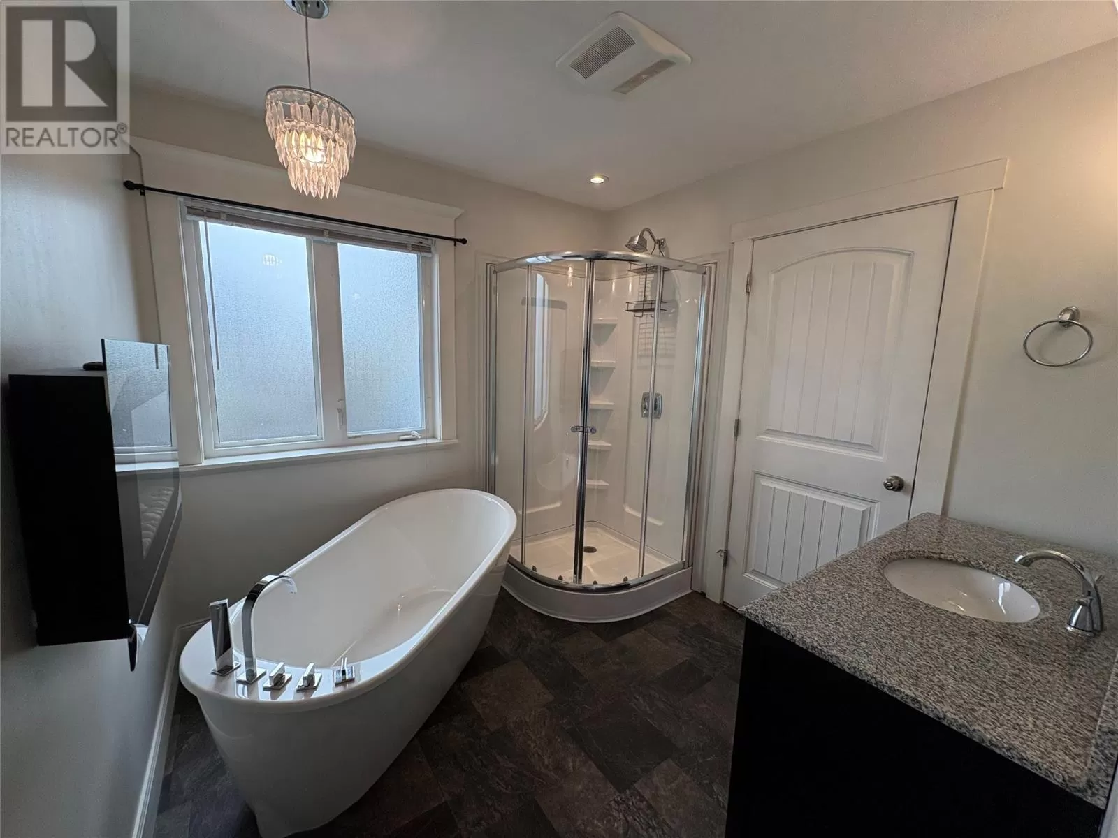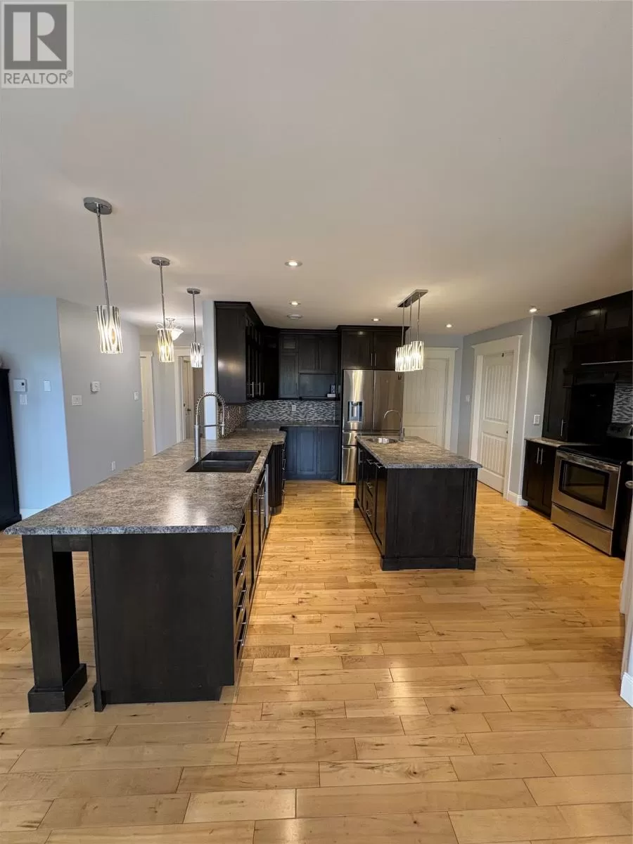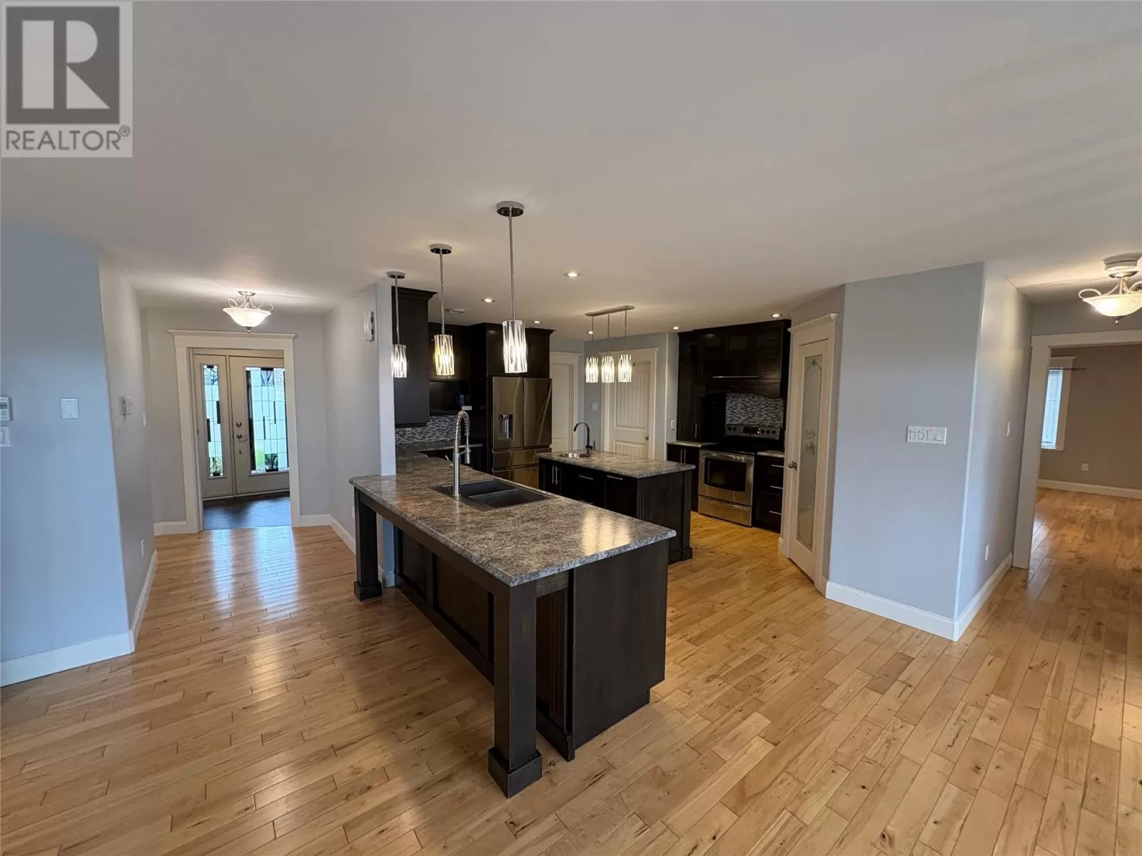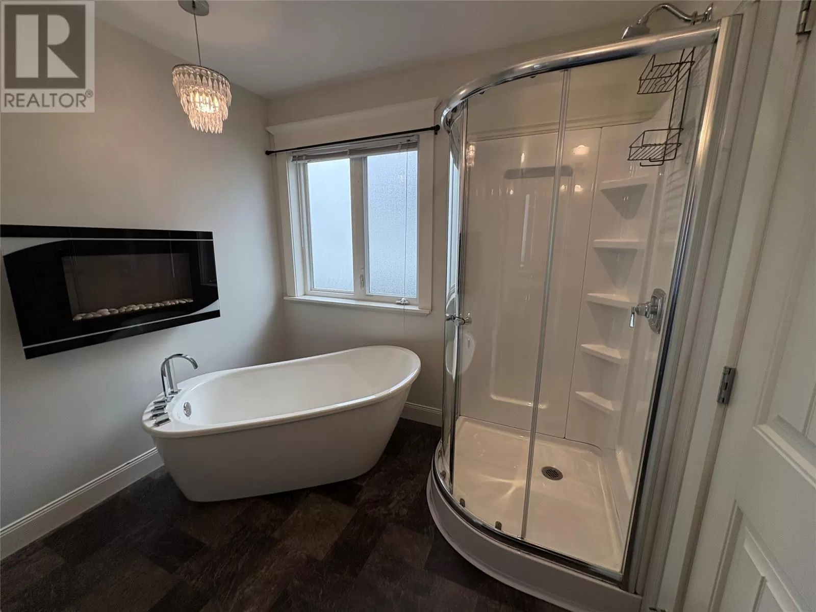 Welcome to 8 Ridgewood Drive, Lewisporte, NL. This elegant and executive home is located in a highly sought after and kid friendly neighborhood. This beautiful home boast 3 bedrooms and 4 1/2 baths. The open concept area has a luxurious kitchen with walk in pantry, plus an island, a living room with a cozy zero clearance fire place, a dining nook as well as a formal dining area. Also on the main is the primary bedroom with two walk in closets and a stunning ensuite with an electric fireplace. Down the hall are two more bedrooms, each with its own ensuites. Also has a half bath on the main. Downstairs there is a huge 38x22 rec room with wet bar, two bonus rooms that could be a home gym, a craft room, or even a playroom. Thereâs also another 3 pc bath, an office and utility room. The basement can be conveniently accessed from the outside. The attached garage measures 20x24 with access to a fully developed loft for additional storage. There also a 20x24 detached garage with loft, fully wired and insulated. The backyard is very private and fully fenced, with a huge partially covered deck and outdoor stone fire place. Also in the backyard is a greenhouse, trees, flowers, shrubs and perennials all around. The paved driveway is huge with ample room to park all your vehicles and toys. This home is heated with electric baseboard heaters and wood fireplace, two 200 AMP panels, and an 80 gallon hot-water tank. This is the dream home youâve been waiting for! Ready for immediate occupancy! Come view it today! You wonât be disappointed. (id:27476)