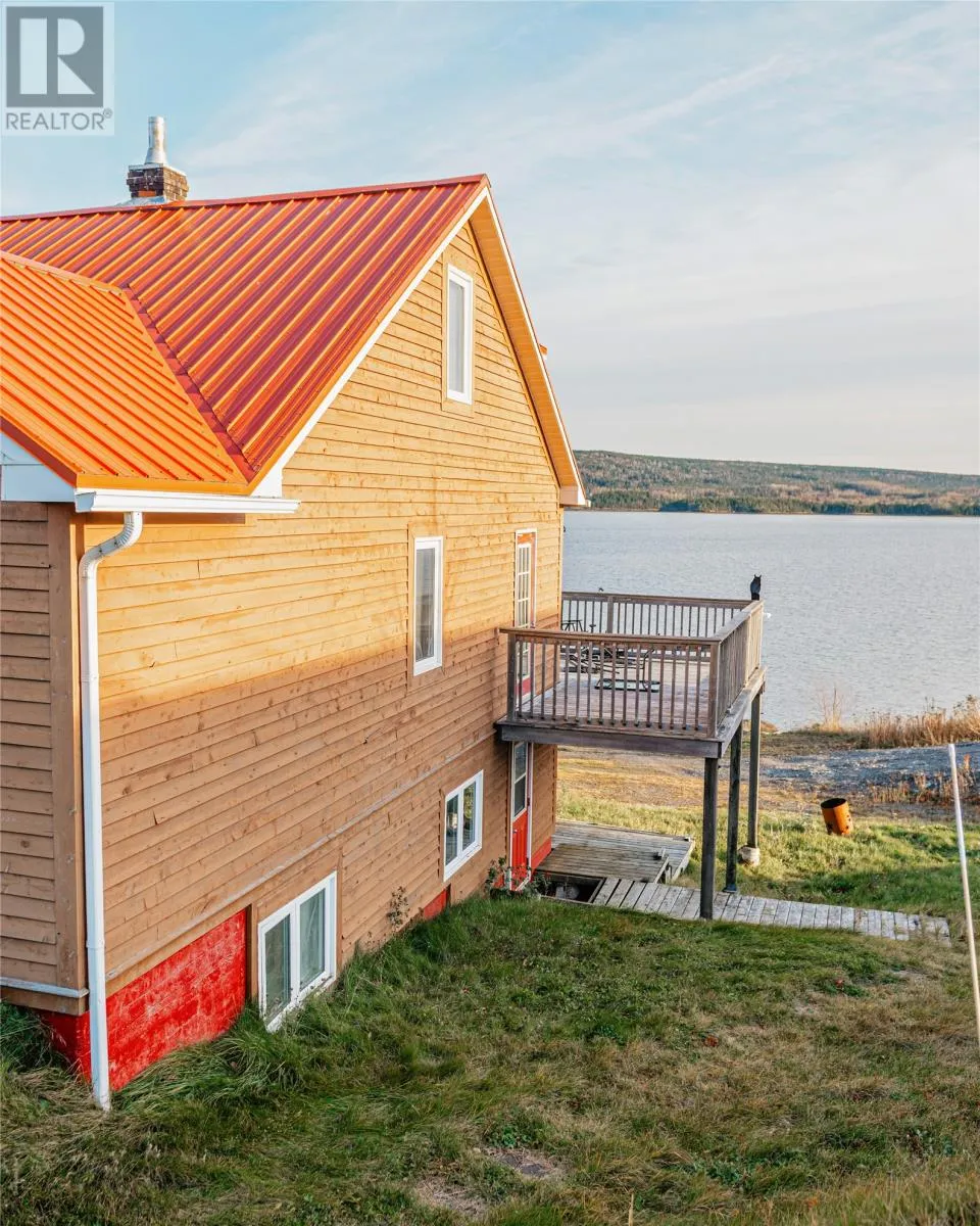 Charming Oceanfront Loft Home Overlooking Lewisporte Harbour Discover coastal living at its finest in this unique 2+1 bedroom loft home with a unique layout and perfectly situated right on the ocean. This property captures sweeping views of Lewisporte Harbourâenjoy watching the boats drift by from your own expansive deck. Inside, the home welcomes you with an open-concept main floor, freshly painted throughout and filled with natural light. The spacious kitchen flows seamlessly into the dining and living areas, creating an ideal setting for entertaining. Beautiful hardwood flooring enhances the warmth of the space, and there is hook-up for in-floor heating on the main floor for future comfort. An additional cozy living area with a pocket-door office provides a private, versatile workspace. The main bathroom blends charm and character with a classic claw-foot tub and beautiful penny-tile flooring. A newer hot water tank offers peace of mind, and the included washer and dryer (approx. 4 years old) add extra convenience. Upstairs, the open loft features a vaulted ceiling and airy layout with endless possibilitiesâcreate a studio, reading nook, or extra lounge area. The main bedroom is generously sized and offers unforgettable ocean views, making every morning a treat. The basement is primarily undeveloped, presenting excellent potential for expansion. With two walkout areas, it offers the perfect setup to create an apartment, in-law suite, or additional living space. One finished bedroom is already in place, making the lower level immediately functional. Previously a successful Airbnb and rental, this propertyâs prime location, ocean frontage, and unique character make it a standout investmentâor a truly stunning place to call home. This oceanfront gem is waiting for youâexperience the comfort, charm, and endless potential it offers. (id:27476)