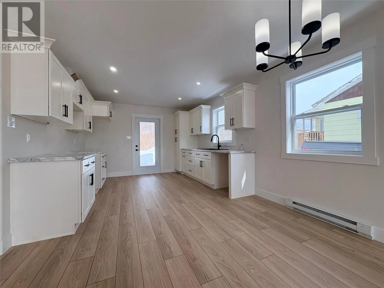 Check out this gorgeous new build that's now move in ready at 4 Reid Street in Lewisporte, NL. This is the only brand new build available in Lewisporte and surrounding areas, so if you're in the market for a new build, then this is the perfect home and location for you. This is an efficient 1255 SFT home, all on one level. It consists of a very large open concept Living/Dining/Kitchen area. The kitchen boast beautiful white cupboards with modern countertops, black sink and faucet; plus thereâs ample room for an island. There are 2 spacious bedrooms plus a very large primary bedroom, and a modern 3 piece bath, plus an additional half bath. The laundry room has a convenient pocket door to utilize the space, and the pantry has a convenient barn style pocket door too with a plug-in for a standup freezer. The back and front entrances of the house have conveniently covered decks so you can enjoy the outside during inclement weather or if you just need to sit in the shade. This home is heated by electric baseboard heaters and a HEAT PUMP, with a 200AMP service. The crawl space has a hatch for easy access and itâs fully insulated (ice block foundation) with heaters, a concrete floor and a humidex ventilation system to purify the air. There are pot lights and modern LED lighting inside and out. This is a very quiet street with very minimal traffic and it's close to schools, clinics, stadium, baseball field, soccer fields, splash pad, college, shopping and more. Appliances not included. Atlantic Home Warranty available. Don't delay, come see this one before it's gone! (id:27476)