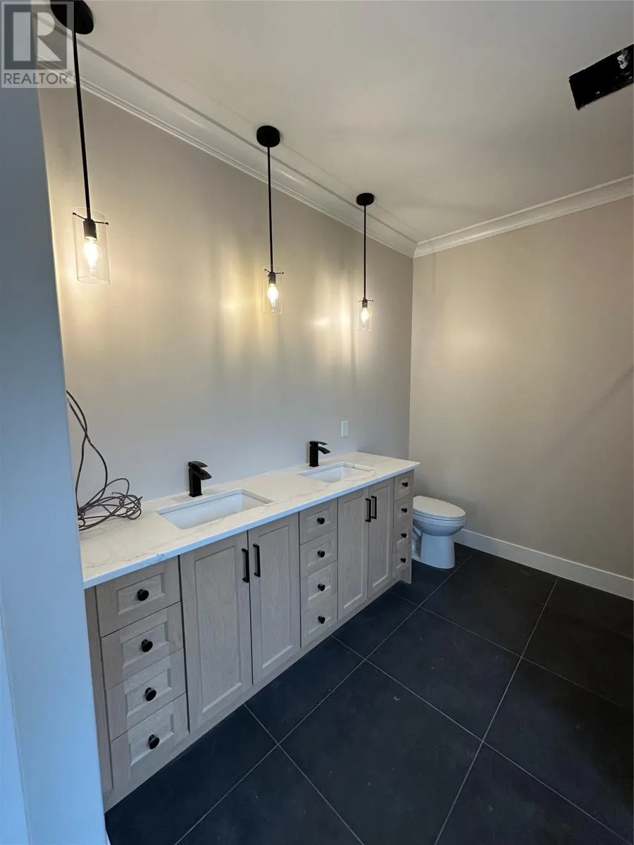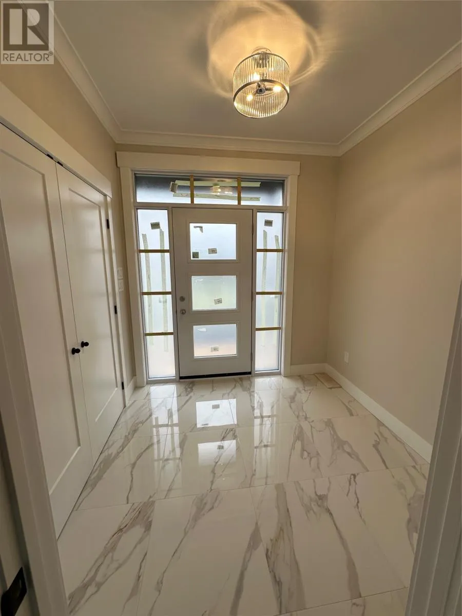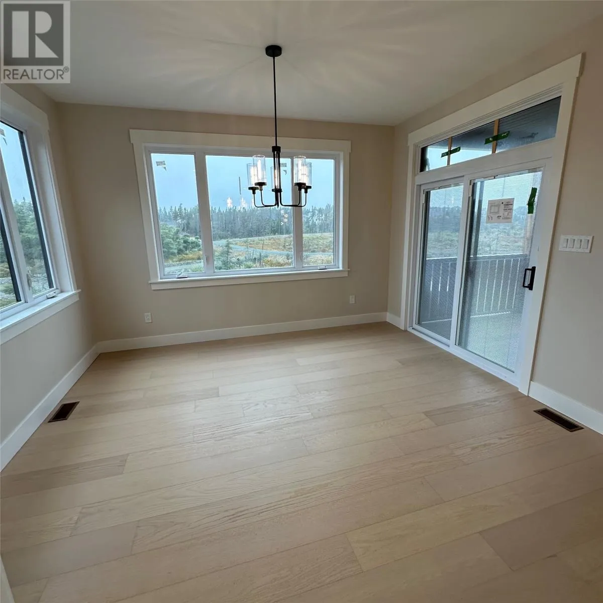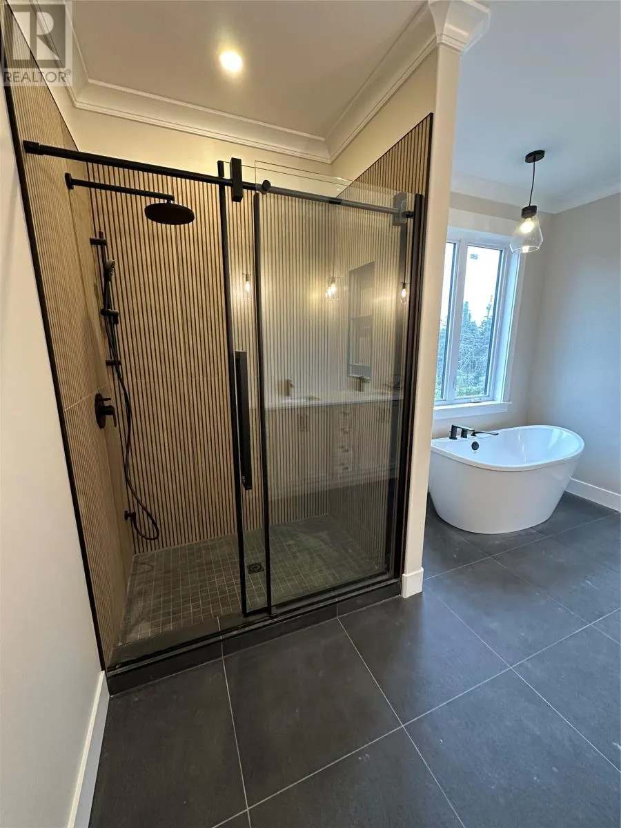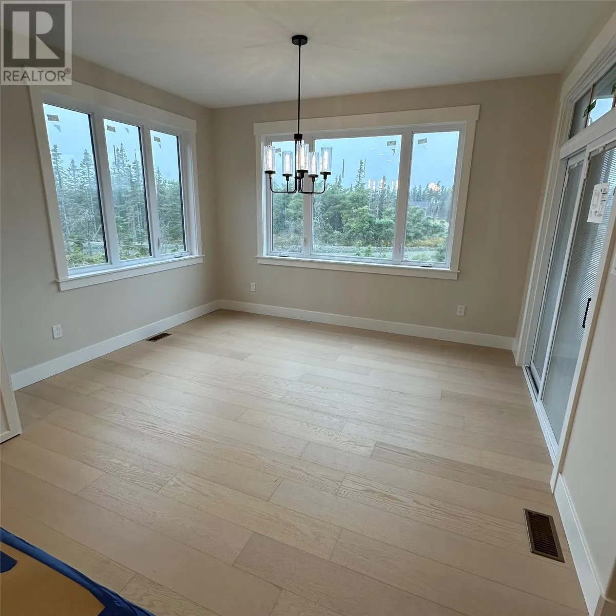 You can enter Wexford Estates from Pine Line or Logy Bay Road just past St. Francis of Asisi Church. PUBLIC OPEN HOUSE, Sunday October 26/25, 2-4pm Wexford Estates is the newest upscale subdivision in Logy Bay Middle Cove Outer Cove! Just minutes from the city and never far from the beach. Stunning, ranch bungalow with a contemporary exterior, dark siding accents on the front facade and black front windows accompanied by a beautiful brick accents, double attached garage on a 1 acre lot. Open concept main floor and walk-out basement that overlooks the peaceful quiet walking trails. 9 foot ceiling height on the main floor. Large kitchen with a butlers pantry, dining and family room area with vaulted living room ceiling. Patio doors out to a good size covered deck that looks out over the walking trails. 3 nice size bedrooms with primary bedroom ensuite with double sink vanity soaker tub and tiled shower and two walk-in closets. Premium trim package throughout. Built in sound system. (Speakers). Hardwood floors and heated ceramic tile in foyer and all wet areas. Hardwood stairs. Kitchen features lots of cabinets and counter space, plus a large island and a big walk-in pantry. There is a garage door at the back of the house which goes into the 8' basement. Ideal for storage of large items like cars, boats, quads etc. Approximate completion date would be the end of October. 400 Amp Electrical Service and a full 3.5 Ton Heat Pump for heating and cooling. 8 Year LUX New Home Warranty and 1 Year Builders Warranty. (id:27476)