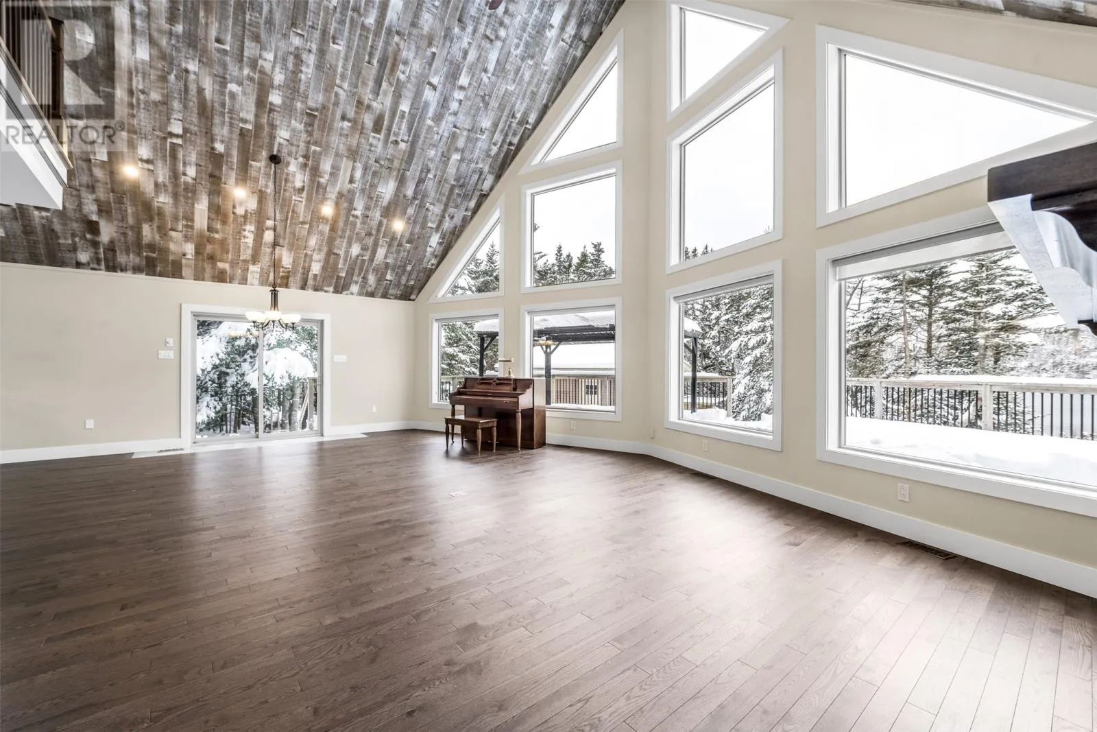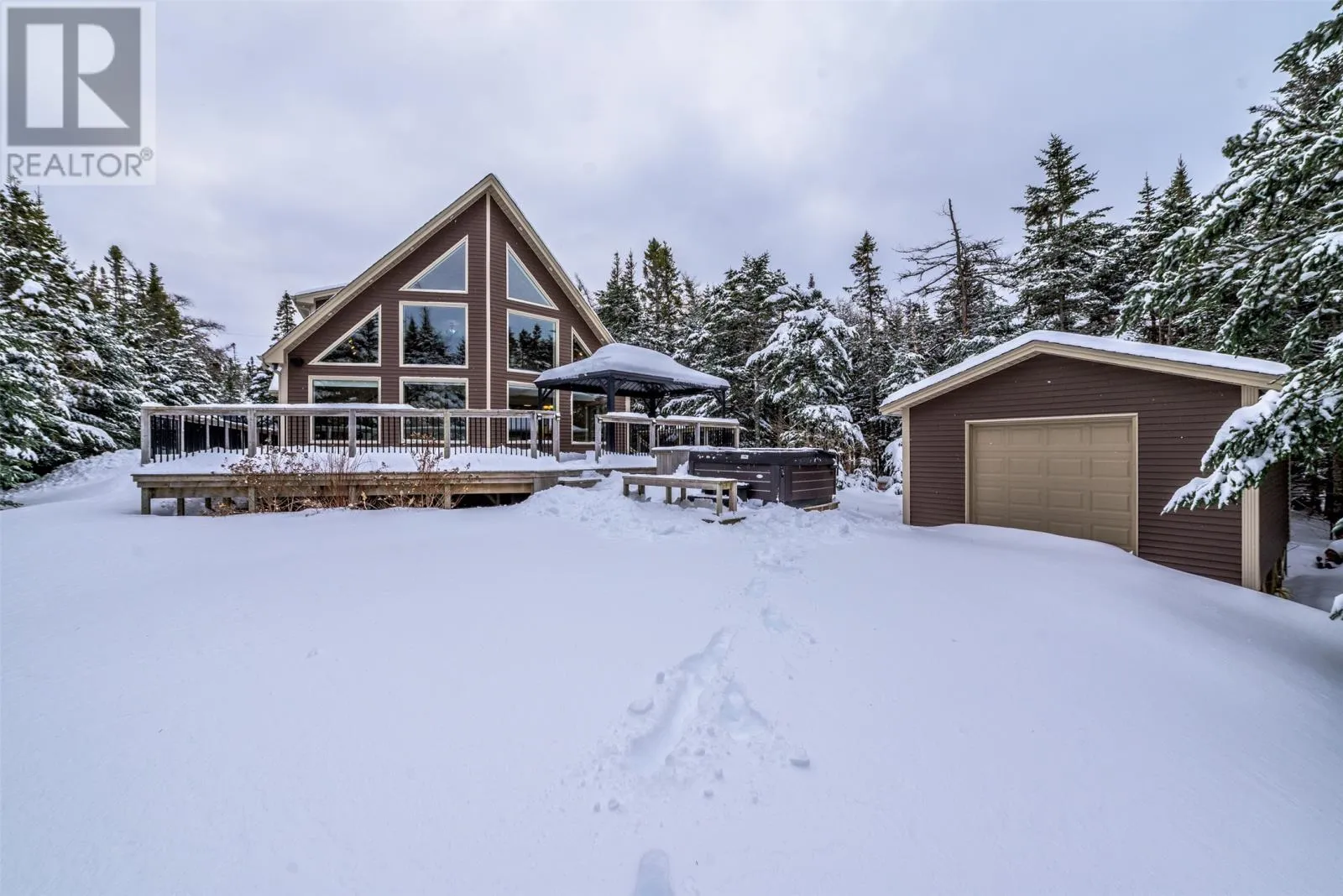 Welcome to 17 Cupids Big Pond Road, Mackinsons. Located on a private 0.7 acre lot on Cupids Big Pond, this beautiful A-Frame property has been the year round home of it's proud owners for 7 years. The main floor is open concept and features a beautiful white kitchen with large island and stainless steel appliances, including propane range. The great room has 21 ft ceilings at its peak, windows galore, and a propane fireplace. There are also two spacious bedrooms on the main floor, full bathroom, laundry room and functional porch with 2 closets. The 900 sq/ft second floor is home to the primary suite, complete with spa-like ensuite with double sinks, soaker tub and oversized tiled shower. There is even a private deck off the bedroom. The walk-out basement is currently undeveloped but has that option if required. Outside, there is a detached 24x24ft double garage, 16x24ft storage shed, 20x24ft boathouse with slipway, 32ft floating dock, wraparound deck, gazebo and hot tub! The property has 400amp electrical service, generator panel and a ducted heat pump. 40 minutes to St. John's and 10 minutes to Bay Roberts, this property could be your seasonal or permanent home and is sure to impress! (id:27476)