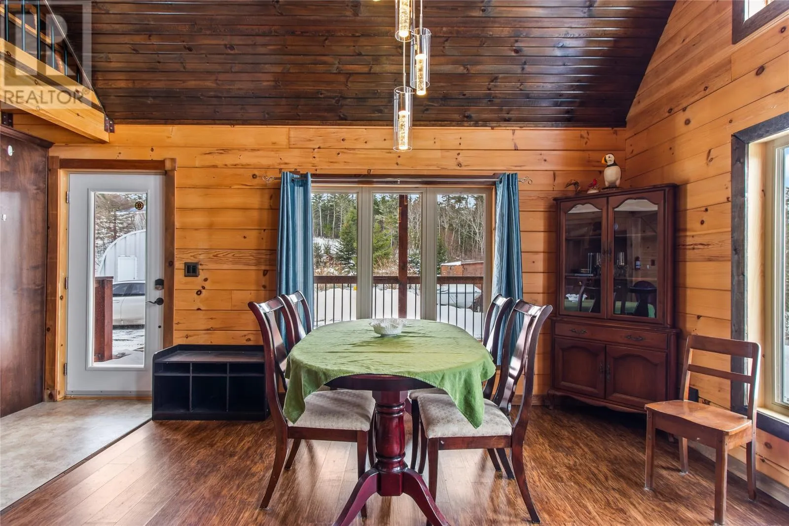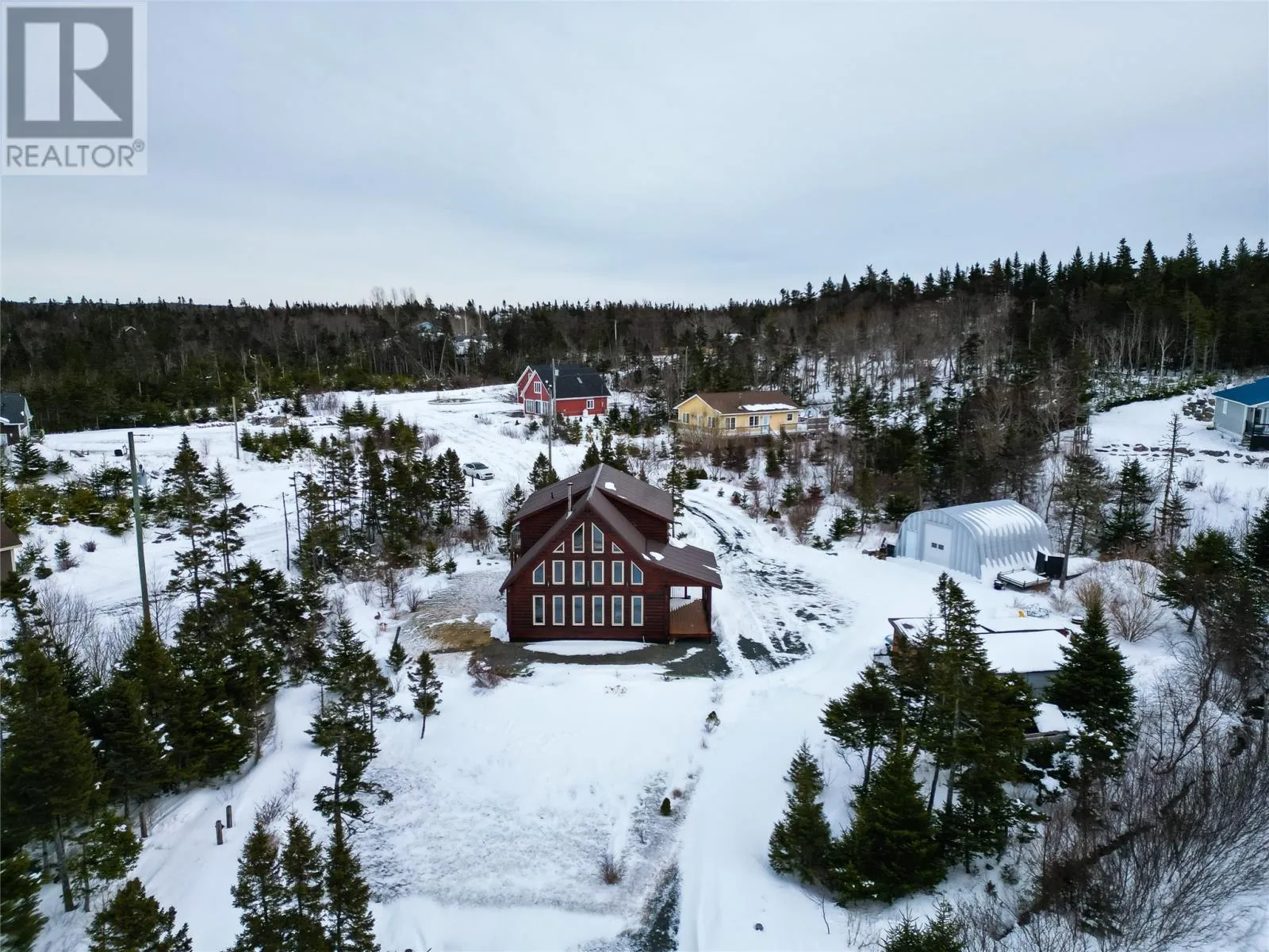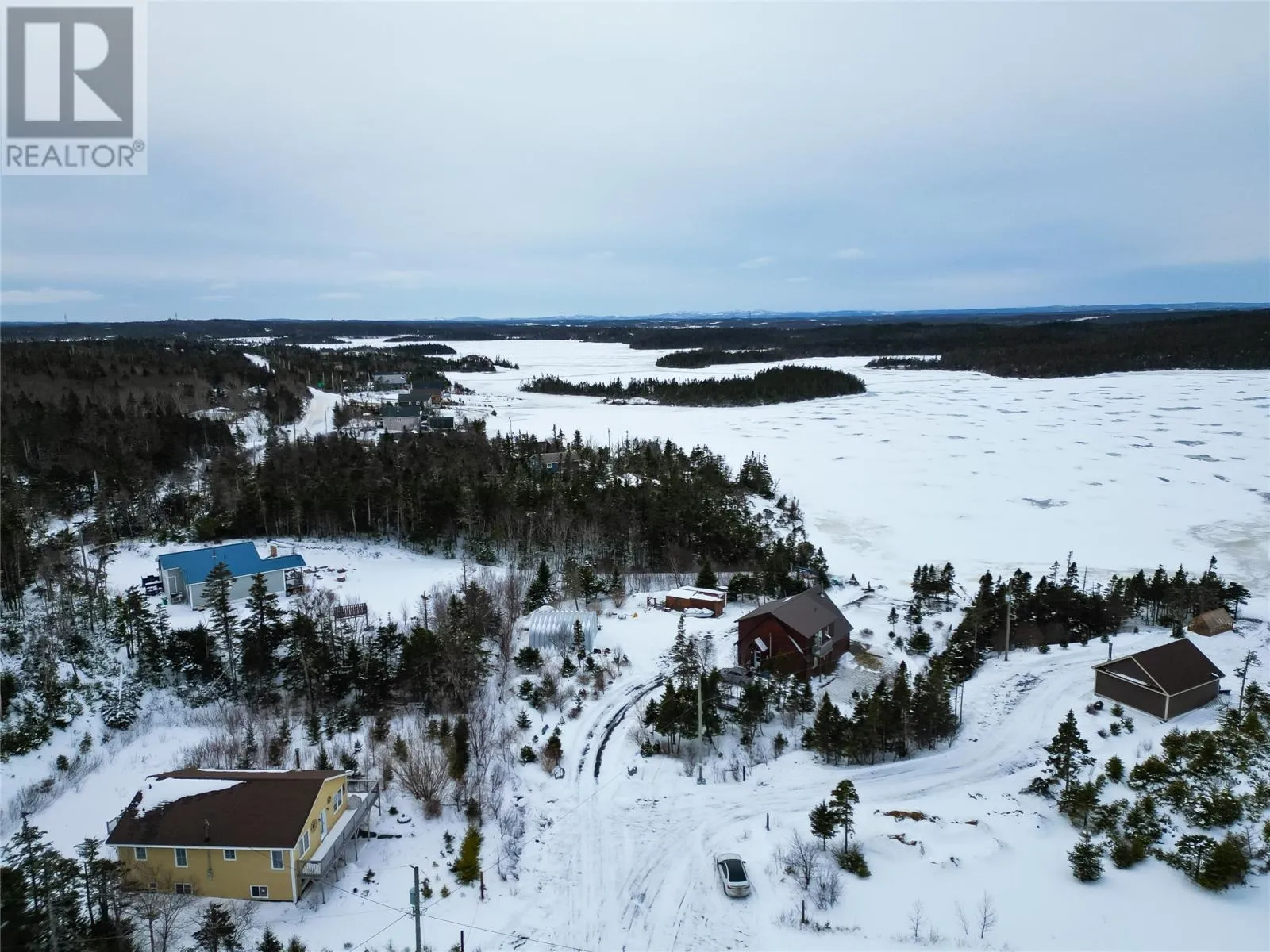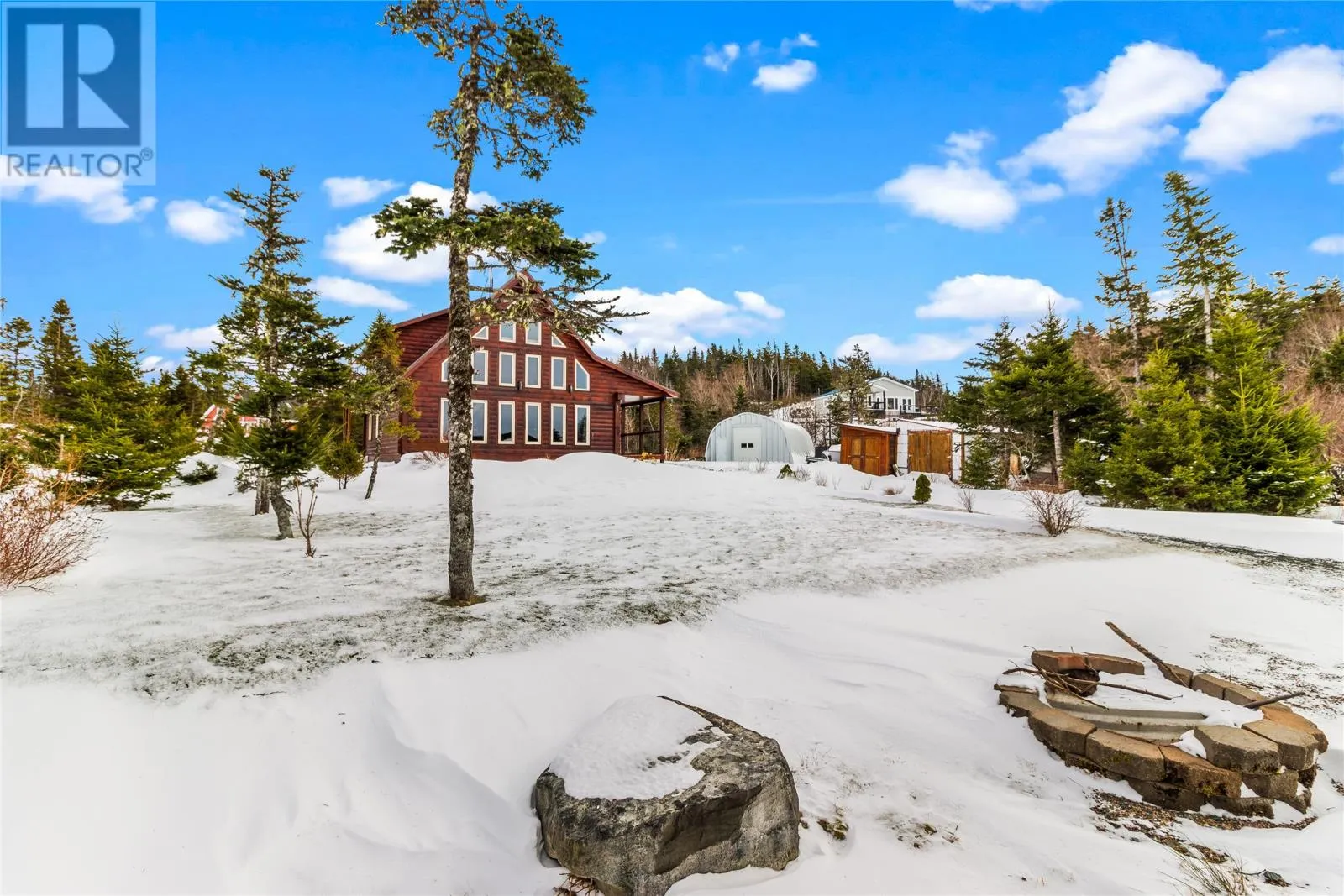 Custom-built by Adventure Log Homes, this extraordinary property is positioned on highly sought-after Grand Pond (just 2 km off the highway), offering a rare blend of refined craftsmanship, natural beauty, and timeless luxury. Inside, the home showcases striking two-tone wood finishes throughout, creating warmth, depth, and architectural interest. The porch welcomes you with a coat closet, laundry area, and full bathroom. The main level is designed for both everyday comfort and upscale entertaining, featuring a bright open-concept layout with soaring windows that frame breathtaking pond views. The kitchen is both elegant and functional, highlighted by an island with cooktop and bar fridge, flowing seamlessly into the dining area and the living room. Here, a cozy wood stove anchors the space, creating an inviting atmosphere while the many windows bring the outdoors in. The primary bedroom is conveniently located on the main floor and offers a private retreat complete with full ensuite. The loft level features two spacious bedrooms, a full bathroom, and a generous landing area ideal for a sitting lounge, games space, or home office â all overlooking the tranquil water below, enhancing the homeâs serene and luxurious ambiance. Set on a large, private lot with direct pond frontage and access, this property is designed for elevated outdoor living. Enjoy your own wharf and launching area, along with additional space to relax and take in the scenery. A 25x25 detached garage offers ample room for vehicles, recreational toys, and storage, complemented by a separate shed. Additional premium features include a durable tin roof, artesian well, and countless custom design details throughout. Elegant, peaceful, and impeccably crafted, this exceptional waterfront log home delivers a luxury lifestyle rarely found. (id:27476)