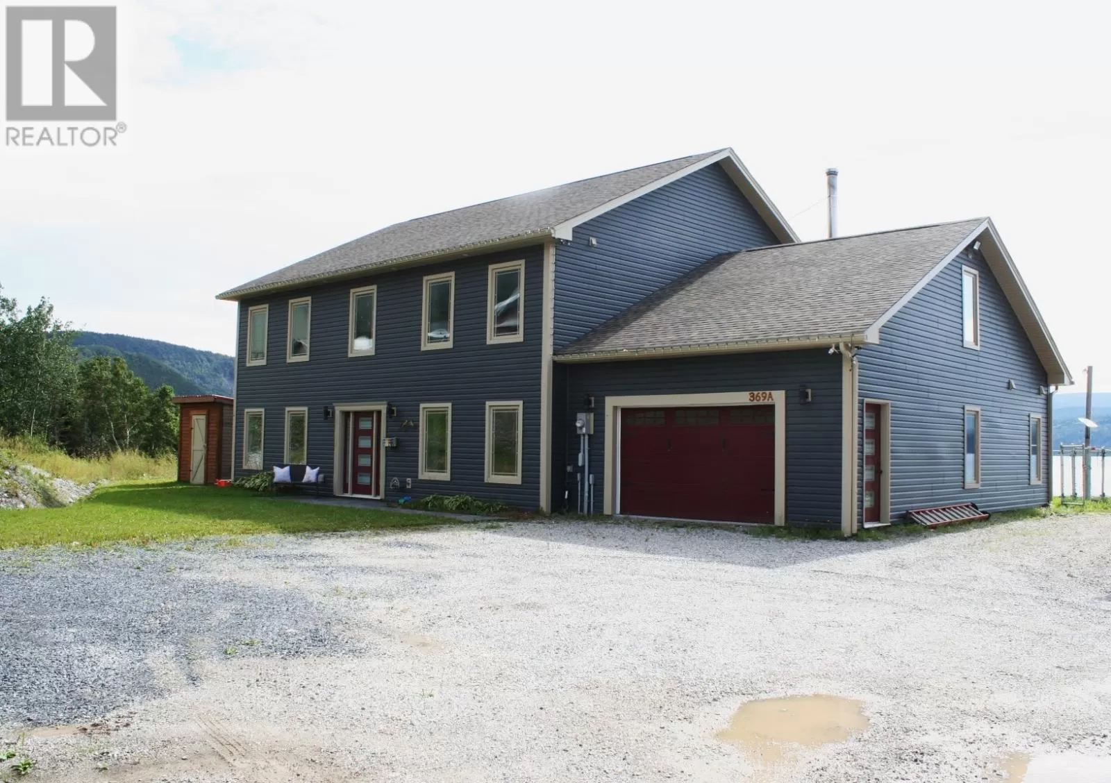 On the water side of the main road, just past Laing's Auto and Confectionary. From it's custom design features to it's 'sitting on the Bay' location, this waterfront property is one to be seen. 369 A Main Rd, McIvers is a three bedroom, 2.5 bathroom home the was mostly custom built in 2020. There is an office and a playroom which could make this home a five bedroom dwelling. The main bedroom has it's own ensuite with an 'oversize' separate shower, while the two other bedrooms share a 'Jack and Jill' bathroom, each has custom vanities. The LR/DR/Kit has a nice flow and is an open concept. The kitchen features porcelain floors, custom built antique finish cabinets, custom granite countertop, and a large walk-in pantry. The staircase is a dark finish hardwood and is also custom built. The home has a 200 amp breaker service, a wood/oil in-floor heating system, and is also generator able. The attached garage also has a bonus room above it which is accessible from and part of the upstairs. This home is built to a current modern standard and will likely be maintenance free for many years to come!! (id:27476)