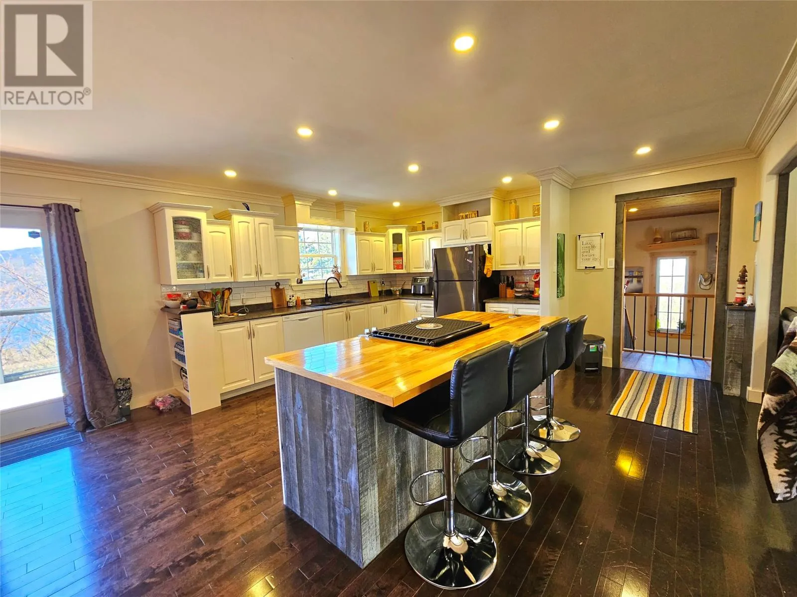 Take in that view! Located in the scenic and very close town of Meadows. This only 20 minute drive from the city, can allow you the opportunity to own a home with some amazing views of the mountain ranges and the bay! Completely remodelled over the past 10 years, this owner/known builder put a lot of thought in every inch that was developed. The home was started from the studs allowing for new everything throughout both levels and exteriorly too. Entering through the open 12 x 12 porch, you are met with plenty of natural lighting and an open feel throughout the entire main level. The focus is on the rear of the property that has a custom kitchen viewing the entire bay! Plus direct access to the full length glass deck that has some of the most amazing views of the cruise ships, sunsets and even a few whales! Inside this over 1400 sq ft layout has three bedrooms on the main level, along with a full bath and the primary bedroom having an ensuite. The custom finishes are what keep your eyes bouncing around the entire home, from rope chandler to the custom showers and even a built-in fish aquarium. Downstairs if you require more living space, you'll find plenty of it. From the extra large 4th bedroom, 3rd full bath with custom tile shower and more space for living and possibly a 5th bedroom. The home is efficient with the addition of a lower level heat pump, that helps with the electric heating Truly, an amazing opportunity to own a very unique and well constructed home for not a large price. (id:27476)
