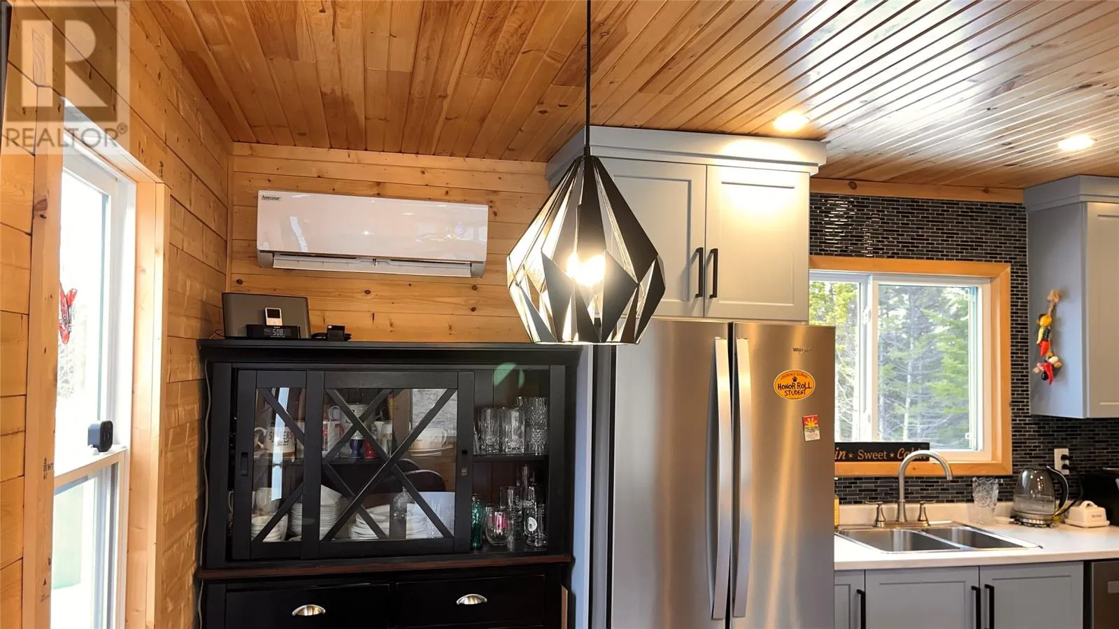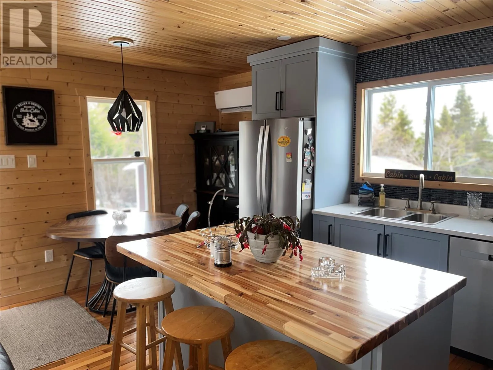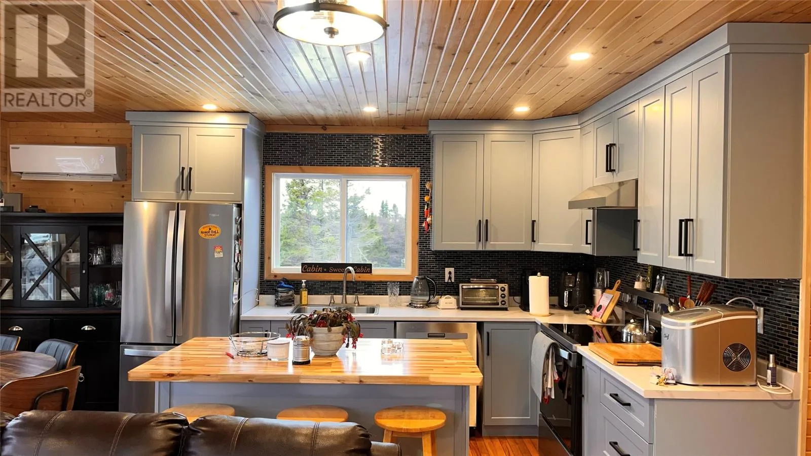 This lovely cabin / residence is practically new! Located in popular Mobile First Pond on a secluded 1 acre lot 40 minutes from city. Open concept kitchen with brand new appliances ,custom cabinets and living area with WETT certified wood stove. Primary bedroom has walkout to private patio. The room designated for laundry (plumbing in place) can also accommodate a single bed or bunk beds. Recent improvements to this property , shingles 2018, new siding and windows and insulation 2019. Completely rewired 2021 with new 200 amp panel, wired for generator which is included. New mini split 2022, New government approved septic system 2023, drilled well 2025. New stainless steel appliances 2025. Crawl space completely insulated 2025. New shed built 2023. Absolutely nothing to do other than enjoy peace and comfort. Excellent value here! Turn Mobile First Pond rd. property is 7.2 kilometers on the left side of road. (id:27476)
