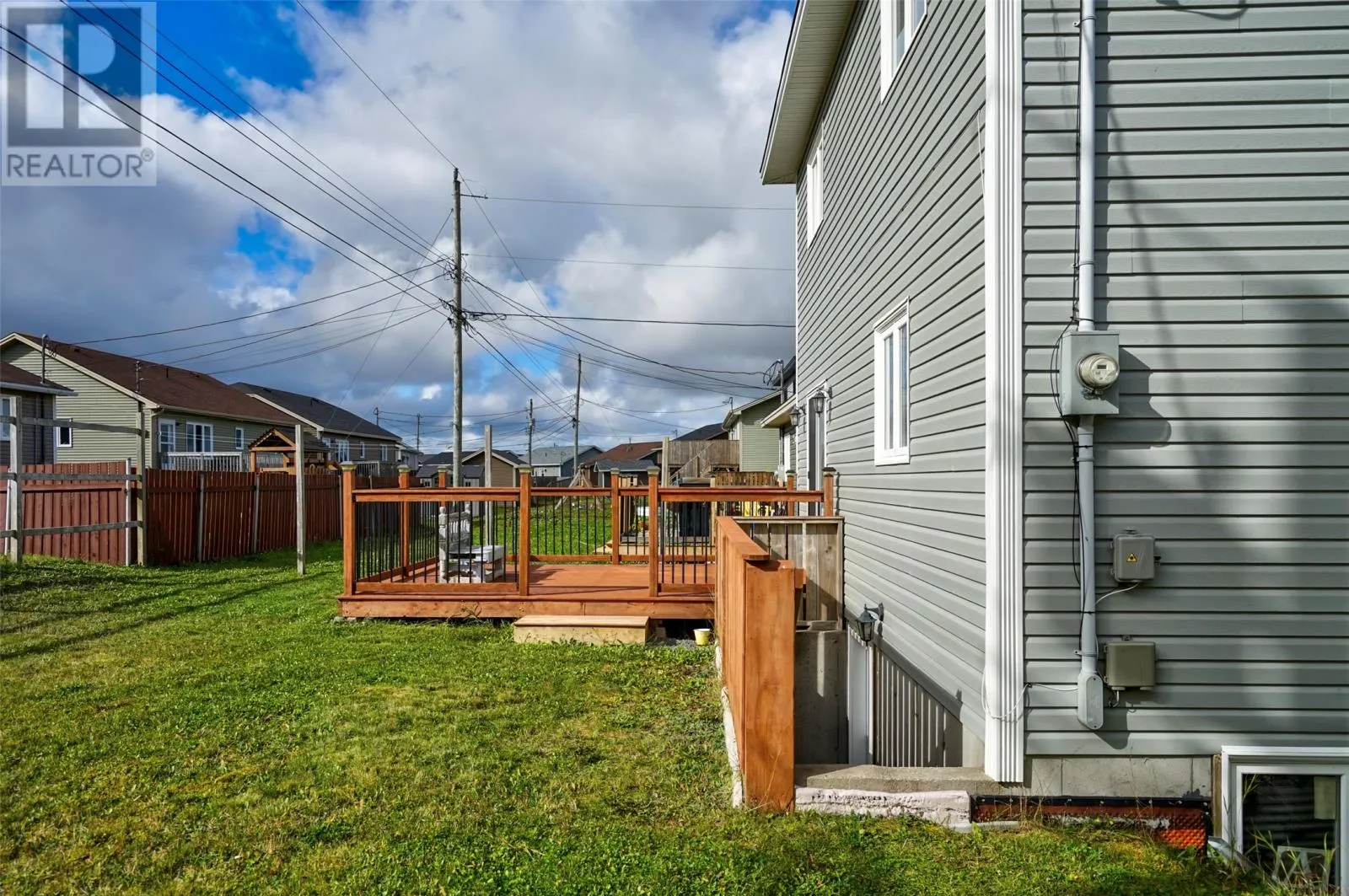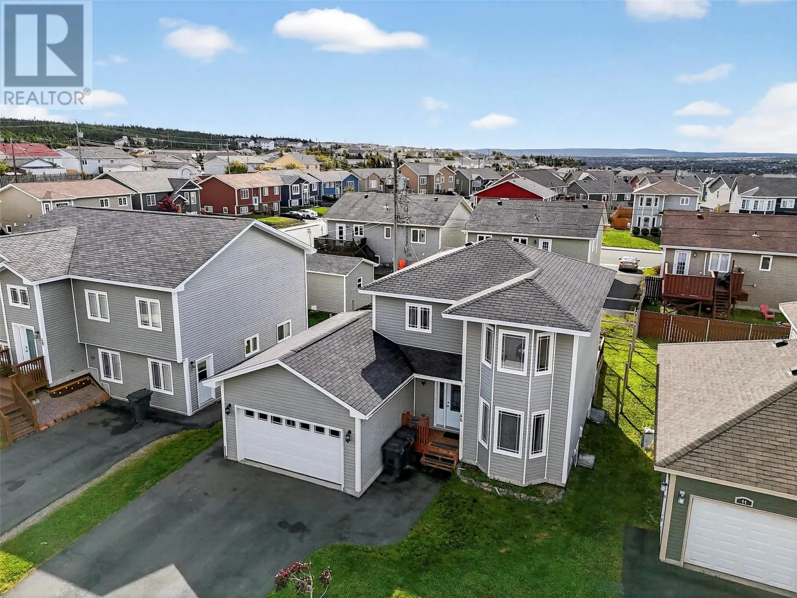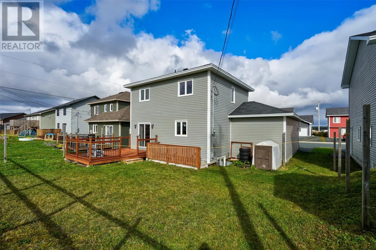 Welcome to your next home in beautiful Mount Pearl a place where comfort, style, and potential come together perfectly. Step inside to discover a bright, modern eat-in kitchen, designed for both everyday living and entertaining. With its executive finishes and open layout, it flows seamlessly into a warm and inviting living room, the ideal spot to relax or gather with family and friends. A convenient half bath completes the main level. Upstairs, youâll find three spacious bedrooms, each filled with natural light and plenty of room to unwind. The full bathroom offers both function and style, creating a peaceful retreat at the end of the day. Downstairs, opportunity awaits! The basement is already framed and ready for drywall, giving you a head start on creating your dream space. Whether you choose to finish it as a cozy rec room or convert it into a two-apartment setup for added income, the options are endless. The laundry area is also located here for added convenience. Youâll love the finished attached garage perfect for parking, storage, or even a hobby space. Out back, enjoy summer evenings on your patio, and know that fence posts are already in place along the boundary line, ready for you to complete your private backyard oasis. Located in a friendly, convenient Mount Pearl neighborhood, close to schools, parks, and all amenities, this home offers the perfect mix of modern living and future potential. (id:27476)