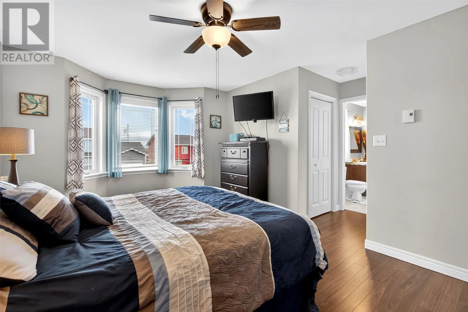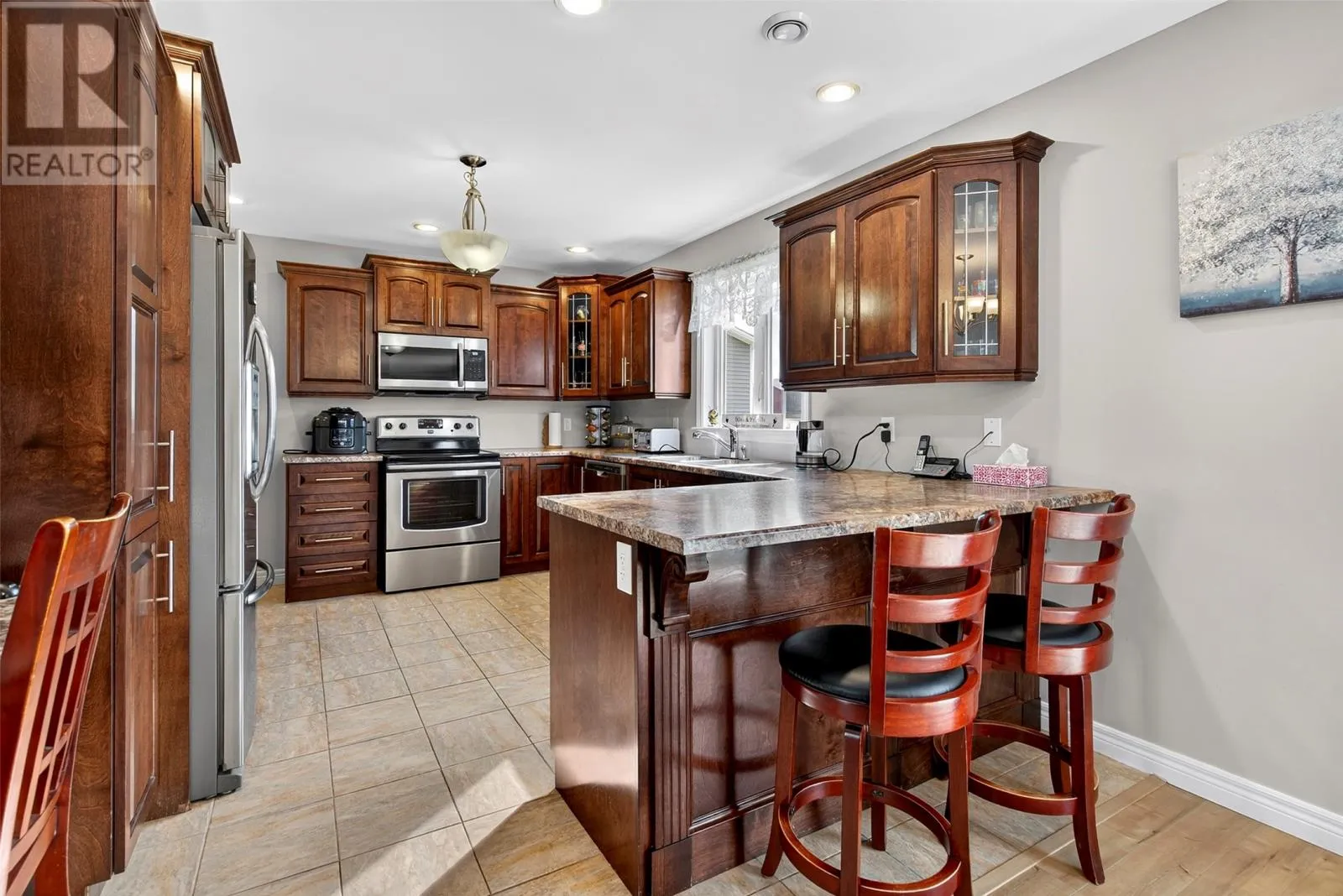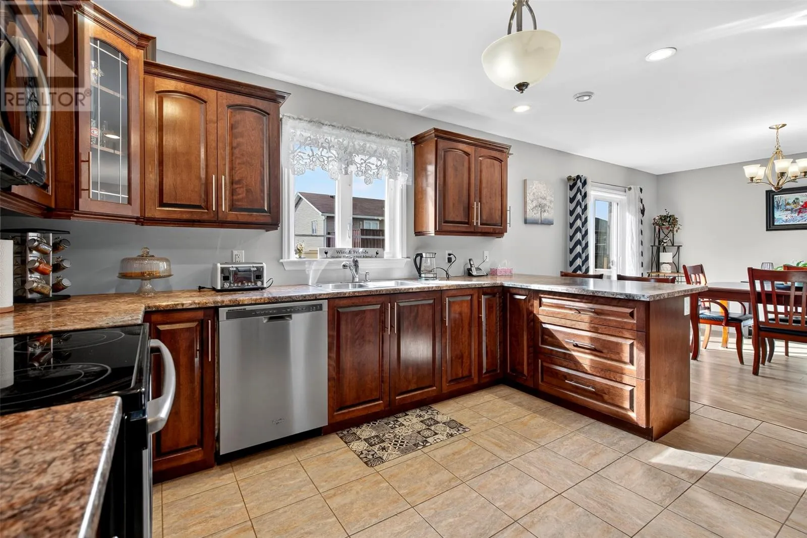Welcome to your next home in beautiful Mount Pearl a place where comfort, style, and potential come together perfectly. Step inside to discover a bright, modern eat-in kitchen, designed for both everyday living and entertaining. With its executive finishes and open layout, it flows seamlessly into a warm and inviting living room, the ideal spot to relax or gather with family and friends. A convenient half bath completes the main level. Upstairs, youâll find three spacious bedrooms, each filled with natural light and plenty of room to unwind. The full bathroom offers both function and style, creating a peaceful retreat at the end of the day. Downstairs, opportunity awaits! The basement is already framed and ready for drywall, giving you a head start on creating your dream space. Whether you choose to finish it as a cozy rec room or convert it into a two-apartment setup for added income, the options are endless. The laundry area is also located here for added convenience. Youâll love the finished attached garage perfect for parking, storage, or even a hobby space. Out back, enjoy summer evenings on your patio, and know that fence posts are already in place along the boundary line, ready for you to complete your private backyard oasis. Located in a friendly, convenient Mount Pearl neighborhood, close to schools, parks, and all amenities, this home offers the perfect mix of modern living and future potential. (id:27476)