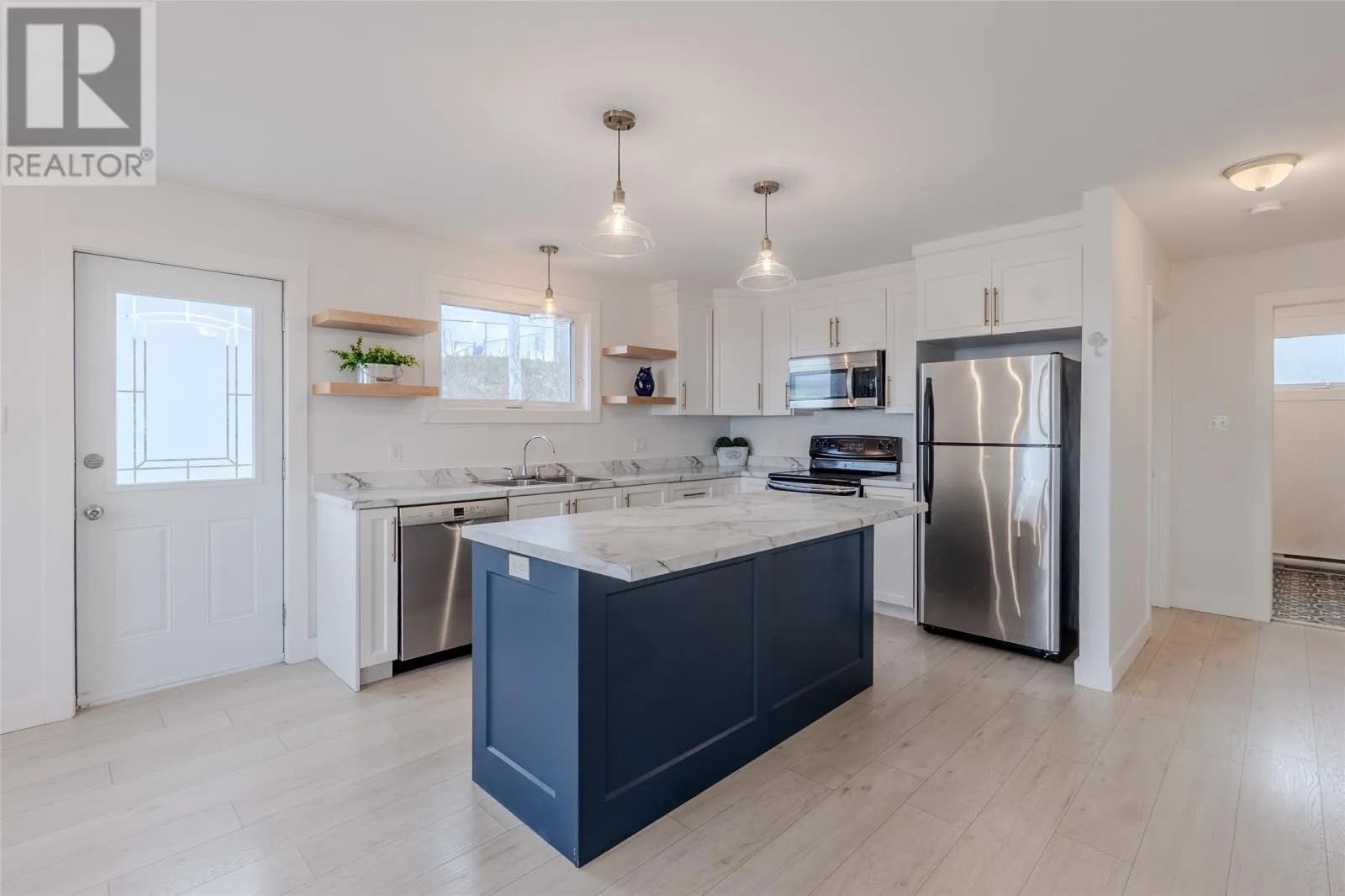 RUN, DON'T WALK, to check out this newly listed 2-APARTMENT home in Mount Pearl! 157 Sunrise Avenue is sure to impress. Completely renovated in 2021, the main floor boasts modern design features including updated cabinetry, centre island with breakfast bar, gold hardware, and stainless steel appliances in the kitchen. Oak flooring flows throughout the open concept design to the remainder of the main floor which is comprised of 3 bedrooms and main bathroom featuring patterned ceramic tile flooring and custom tiled tub surround. For the main unit, you'll find a spacious rec room in the basement along with laundry and storage. The one bedroom apartment has a separate driveway for hassle free parking, laminate floors, grey kitchen and separate laundry. This home has had extensive renovations in 2020 including: PEX plumbing throughout, air exchanger in main unit, new main driveway, two decks, light fixtures, flooring throughout both units, new doors, electrical upgrades, entire home painted throughout, custom kitchen, new main bathroom (everything replaced), trim and baseboards. Located near schools, walking trails, and countless amenities in the heart of Mount Pearl, it won't last long. Arrange your viewing today! As per attached Seller's Direction, there will be no conveyance of offers prior to 5pm on Sunday November 9th with offers to remain open until 10pm the same day. (id:27476)