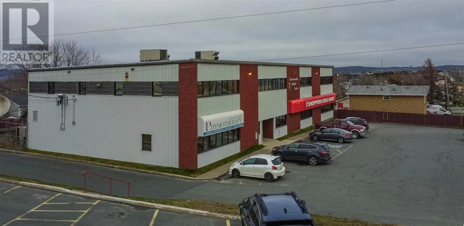 Excellent opportunity to own a prime commercial property in the heart of Mt. Pearl. The building is anchored by a national retail drug store. The owners operate a medical practice on the second floor and lease an additional unit to a physiotherapy clinic. Over 230 feet of frontage on Commonwealth Avenue and a large parking lot that can accommodate 60+ vehicles. (id:27476)