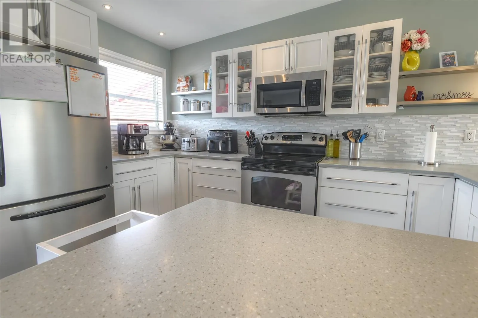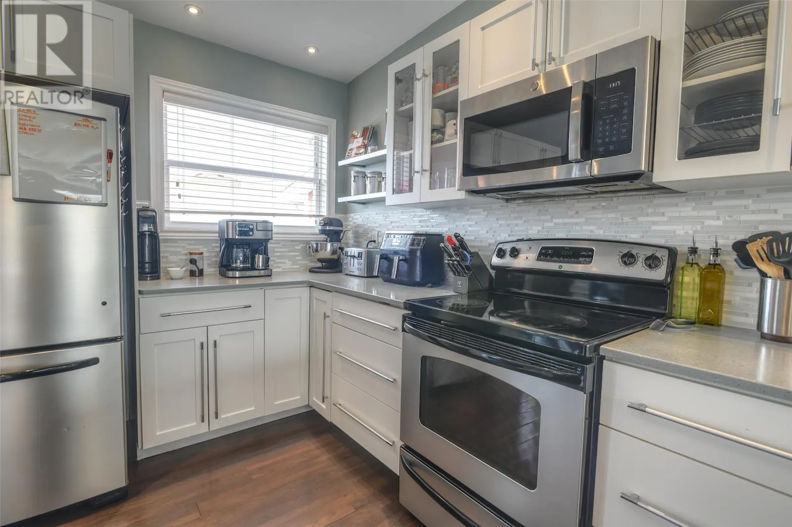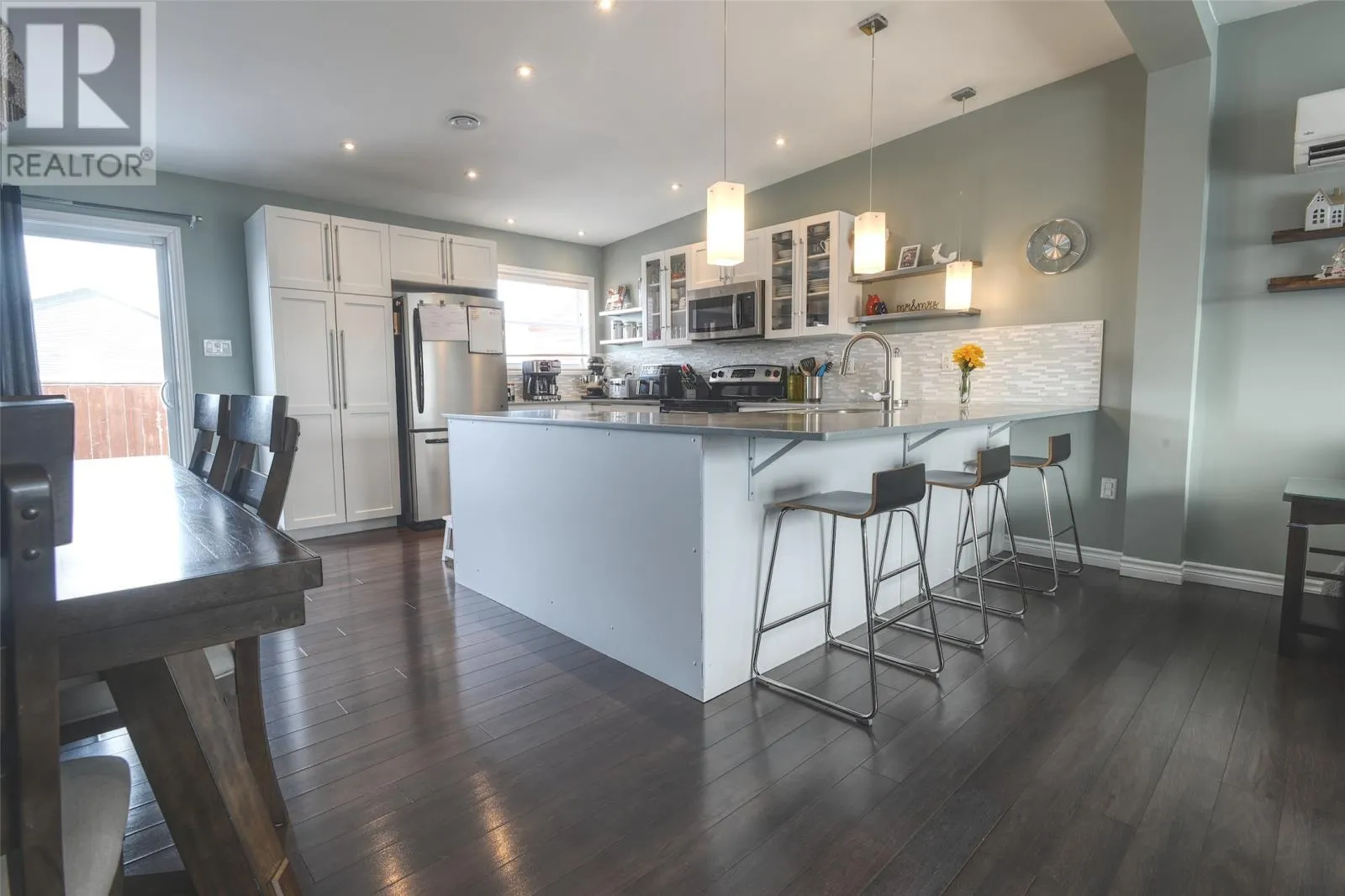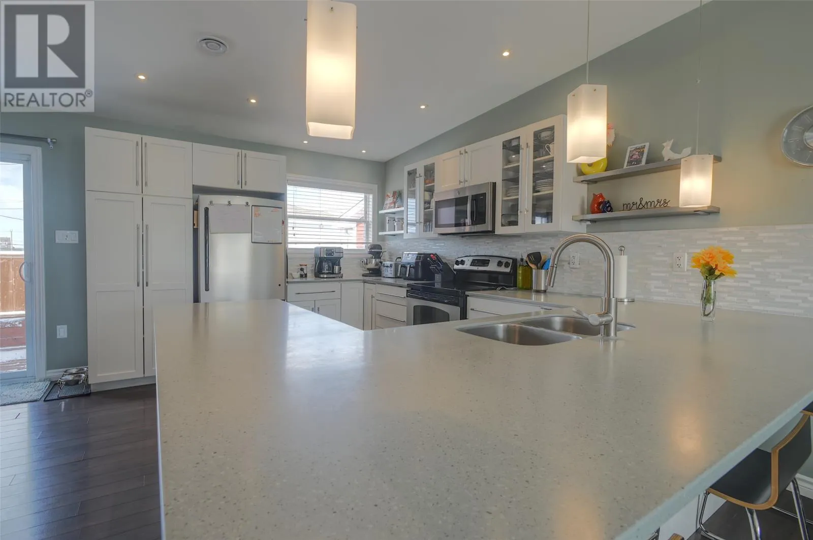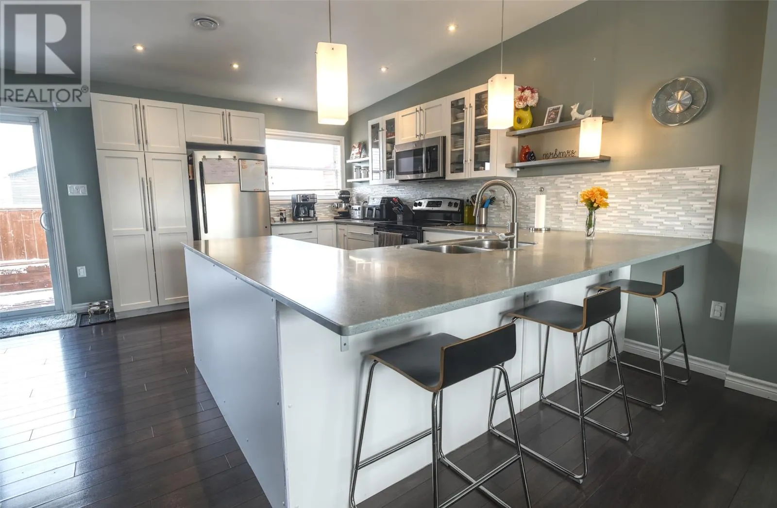 Is there a 4-bed family home in Mount Pearl under $500K that is fully developed and close to shopping? This move-in ready split entry at 17 Dunrobin Street offers over 2,600 sq ft, 2.5 baths, a double in-house garage, and a sunny backyard with a large deck, delivering space, comfort, and convenience in one package. Welcome to this beautifully maintained detached split entry, built in 2011, ideal for young families, or anyone ready to move up from their starter home, or downsize from a large executive home. The bright open concept main floor features vaulted ceilings, solid surface kitchen countertops, and a functional layout perfect for everyday living and entertaining. With 4 bedrooms and 2.5 bathrooms across 2,609 sq ft, there is room for everyone. Recent updates include a new front door (2025), architectural shingles approximately five years old, a mini split heat pump for efficient heating and cooling, and a backup generator panel for added peace of mind. The exterior is just as impressive, offering a paved driveway, double in-house garage, rear yard access (available/not paved), and meticulous landscaping with charming strawberry beds. Enjoy all-day sun on the spacious 10 x 20 rear deck, ideal for relaxing or hosting gatherings. Located close to the Kelsey Drive Shopping District, this home puts major amenities within easy reach while maintaining a quiet residential feel. Fully developed and move-in ready, this property is available for quick viewings with no seller direction in place. (id:27476)