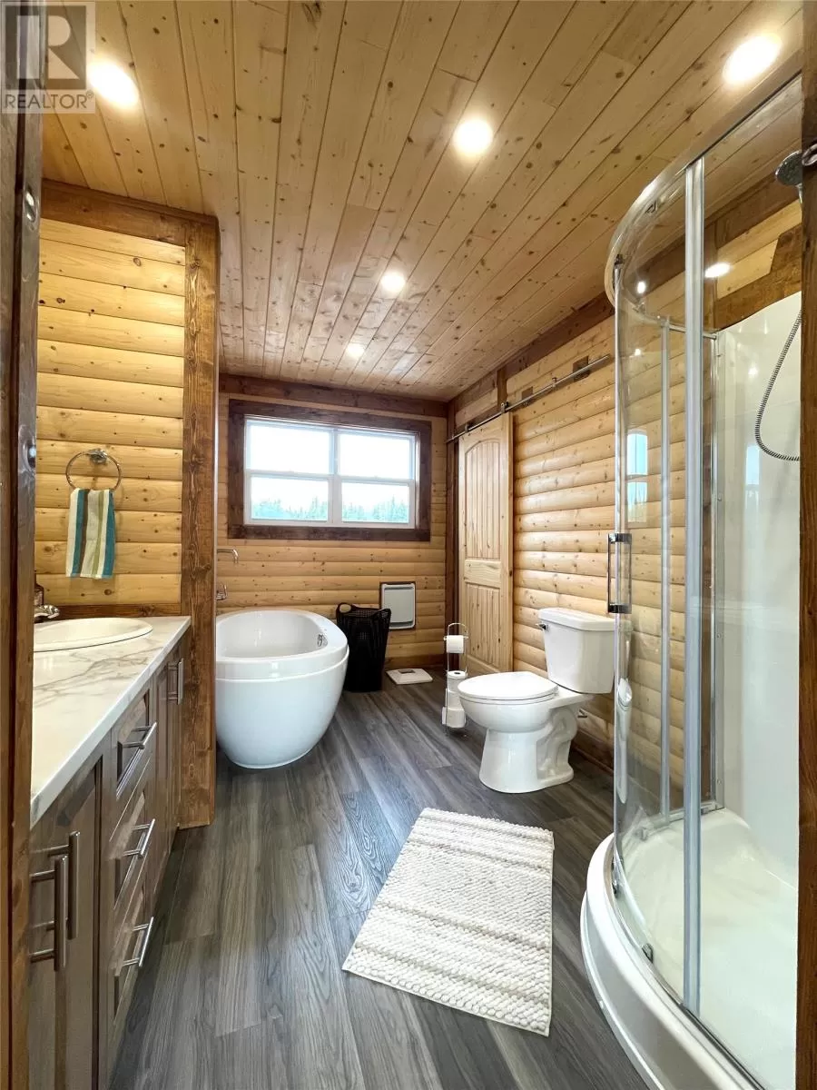 This single family home located in Cottage country is the absolute perfect spot for your private retreat. This 3 year old property is currently used as a year round home but it would also make a phenomenal cottage. The home is located on 1 acre of land with a drilled well and approved septic design. The home is open concept kitchen with pantry, dining and living room with floor to ceiling windows allowing an abundance of light in. The main floor has a bedroom, bathroom/laundry combo as well as an hobby room - great for music, crafts or even a 3rd bedroom. The entire 2nd floor is the Master Suite with a mini split heat pump, private balcony, large walk in closet and a gorgeous ensuite bathroom with a stand alone soaker tub, separate shower and double sinks. The ensuite also has a storage closets for towels, linens and extra toiletries. Looking for lots of storage? This home got it! With a full concrete crawl space for all your storage needs. The property also has a wired detached garage for storage of your snowmobile, ATV, summer furniture, tires, etc. The property is just minutes from South West Pond Park and a short car ride to the historic community of Greenspond and 10 minutes away from New-Wes-Valley. This property definitely checks the boxes. (id:27476)