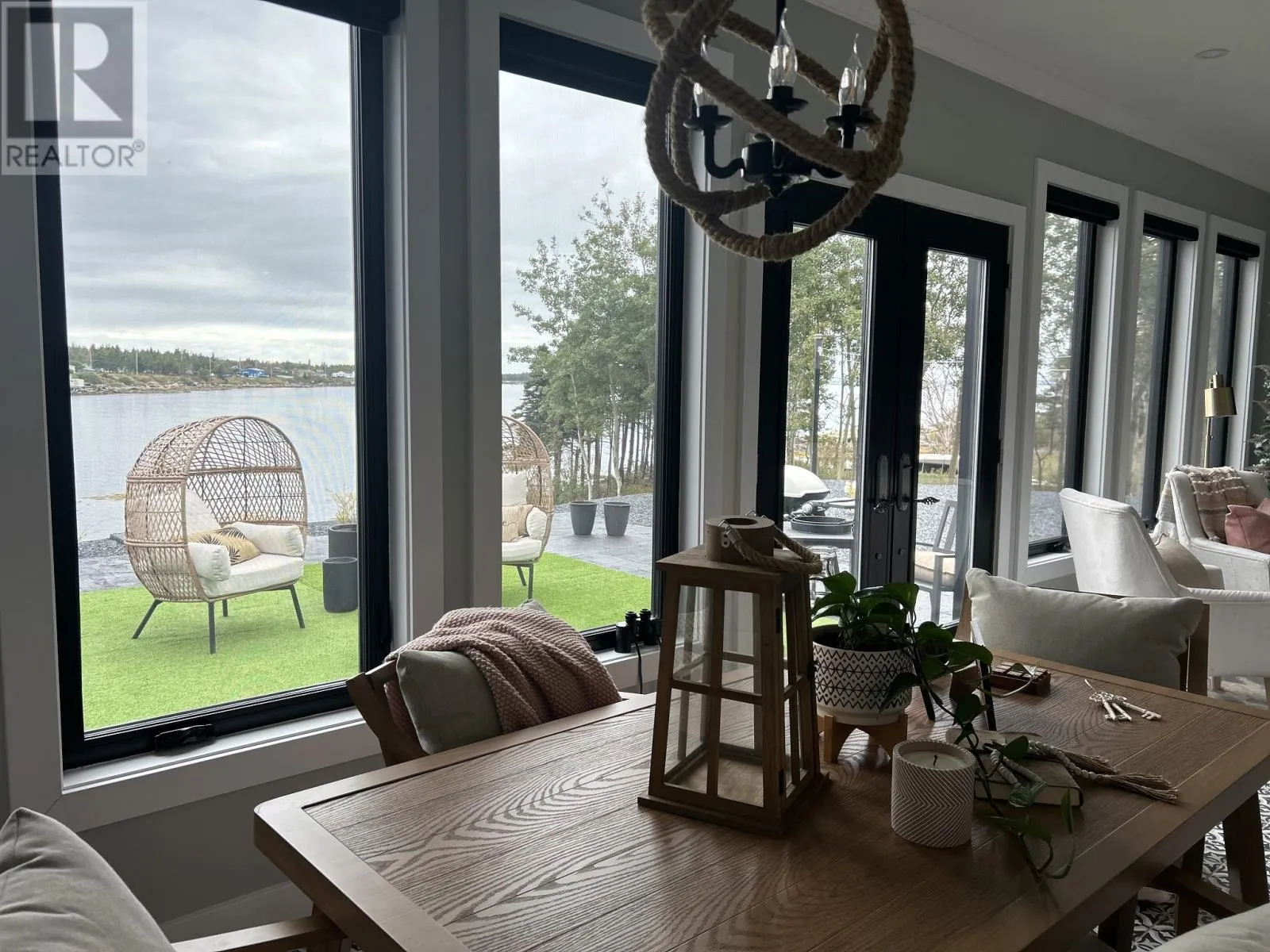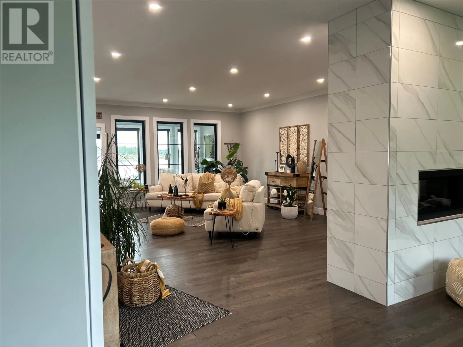 Discover a truly exceptional executive waterfront residence in the tranquil seaside community of Noggin Coveâjust 45 minutes from Gander. 14 Main Street is more than a homeâitâs a lifestyle. Thoughtfully designed with elegance and comfort, this one-of-a-kind coastal retreat blends architectural style with high-end finishes throughout. Enter through the grand foyer into a welcoming den and formal living room. The heart of the home features an open-concept kitchen and great room, centered around a stunning see-through propane fireplaceâideal for cozy evenings or upscale entertaining. Off the kitchen, a sunroom offers breathtaking ocean viewsâperfect for morning coffee or sunset relaxation. The luxurious primary suite includes a spa-like ensuite with a statement soaker tub, floating vanity, walk-in tiled shower, and large walk-in closet. Two more bedrooms, including a private guest suite with ensuite, provide space and comfort for family or visitors. Every detail shines: 9-ft ceilings, crown moulding, sliding barn doors, custom white cabinetry, live-edge and granite countertops, and chic lighting. The stylish mudroom features Turkish ceramic tile, laundry, half bath, seating nook, and access to a beautiful solarium. Outside, the curb appeal is second to noneâa striking exterior enhanced this summer with vibrant flowers that add natural charm and colour to the grounds. Stamped concrete walkways, panoramic ocean views, and two detached garages (24x36 and 16x24) complete the picture. Serviced by a drilled well, septic system, 400-amp power, and full generator backup. Modern luxury meets peaceful oceanfront living. Showings available by appointment. (id:27476)