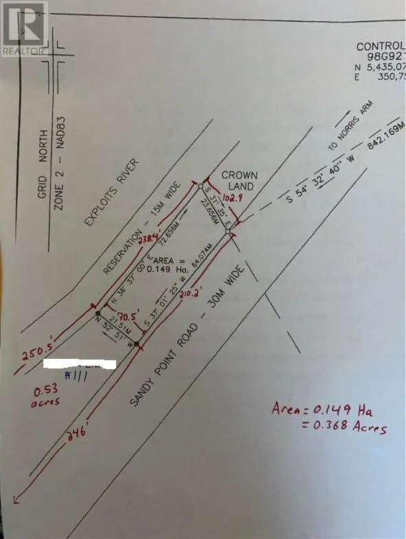 Welcome to this beautiful 1.7 acre waterfront property located in Sandy Point, just outside the town of Norris Arm. This rare parcel offers direct frontage on the scenic Exploits River, one of Newfoundlandâs most well-known waterways. This lot is divided into two parcels; one of which has water frontage & the other on opposite side of Sandy Point Road ( note: an artesian well already in place on this lot). With plenty of space to build, this property would make the perfect location for your dream home, private cabin, or recreational getaway. Enjoy stunning river views, access to the water, and the peace and privacy that comes with owning waterfront land. Whether you're looking to fish, kayak, boat, or simply relax by the water, this property offers a true Newfoundland outdoor lifestyle while still being only minutes from the amenities of Bishop's Falls! (id:27476)