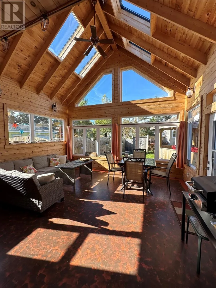 Nestled in the heart of Gros Morne National Park, this stunning 3-bedroom, 4-bathroom home offers a blend of comfort, privacy and breathtaking surroundings. The fenced backyard oasis features a spacious deck, BBQ hut, firepit, garden shed, and ample privacy, perfect for hosting gatherings or quiet relaxation. Step directly from the backyard into a gorgeous pine sunroom with vaulted ceilings and an electric fireplace - a serene space for enjoying the outdoors year round. The homes exterior boasts a classic combination of brick and wood, adding to its timeless appeal. With two paved front driveways and an attached 24x30 with high ceilings and a loft, there's plenty of space for parking and storage. Inside, you'll be greeted by generous living spaces, including a gourmet kitchen with stainless steel appliances and ceramic floors, a cozy living room with gleaming hardwood floors, three bedrooms, an office and three full bathrooms. Off the kitchen sits the lower level mudroom with four closets, a family room with a wood stove, and direct access to the sunroom, providing a warm and inviting atmosphere. The finished basement offers even more space for entertaining, with a massive rec room complete with a wet bar, a half bath, a furnace room, and additional storage. Enjoy the tranquility of Norris Point living, with easy access to local tourism, scenic views and the natural beauty that Gros Morne is renowned for. (id:27476)
