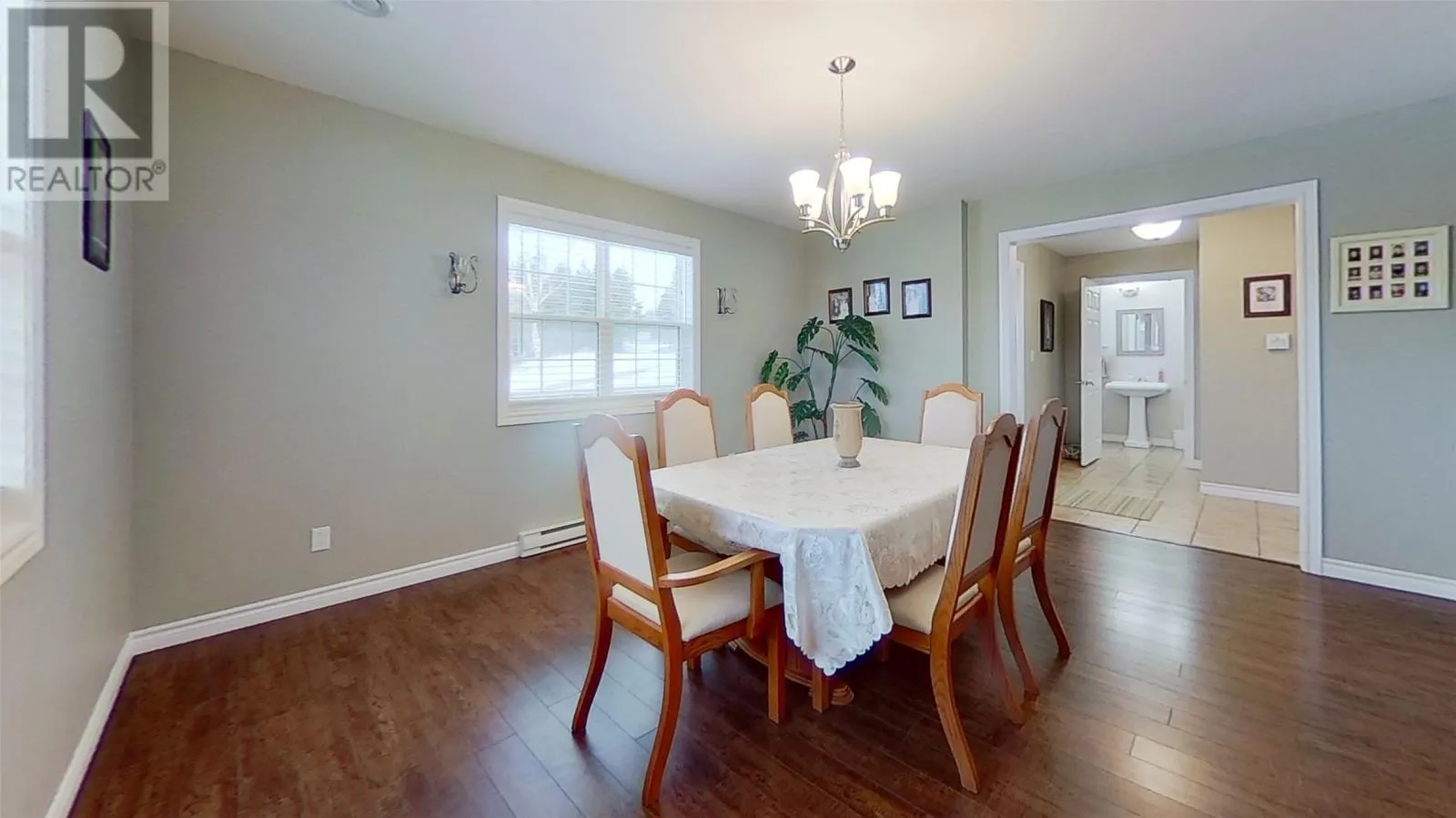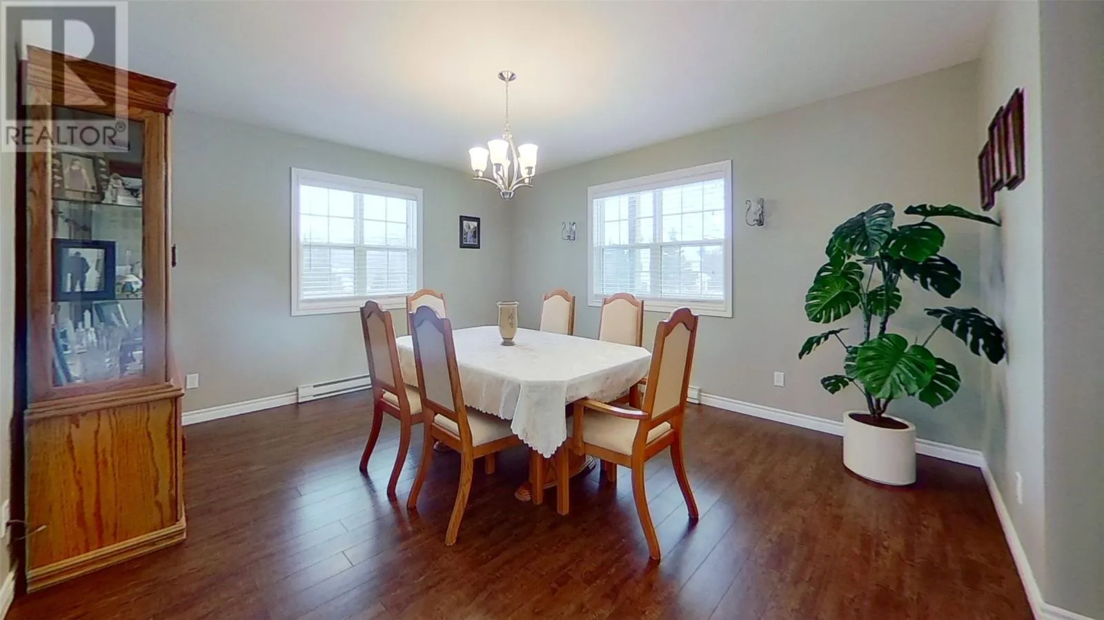 6 Madengail Lane, North River, is a property that truly offers the best of both tranquility and convenience. Situated on a quiet street just steps away from the lovely North River, this well-maintained, well-built home sits on a 3/4-acre lot surrounded by birch trees and is beautifully landscaped. The location is peaceful, while also providing easy access to outdoor recreation and a K-6 elementary school within walking distance. The home boasts over 3300 square feet of developed space, providing ample room for family living. The main floor features a bright, large custom eat-in kitchen complete with a grand island, which opens to the living room, making it an ideal space for entertaining. A formal dining room is located at the front of the home, and this space could easily be used as a home office, depending on your needs. Conveniently tucked by the stairs is a powder room on the main floor as well. Upstairs, you'll find a large primary bedroom with dual closets that lead to a four-piece ensuite. Two additional generous-sized bedrooms and the main three-piece bathroom complete the second floor. The fully developed basement provides more living space and versatility. There is a ground-level entrance which opens to a fantastic mudroom with double closets. Across from the mudroom is a spacious laundry area. Two finished rooms offer versatility for your family's needs, whether for additional bedrooms, gym, playroom etc. The basement also features a full bathroom utility/storage room. Outside, you'll find more to love. A 26x26 insulated and wired garage with plenty of parking. A cozy firepit area and a private level backyard. The covered front deck offers a partial river view, surrounded by mature trees, making it a perfect spot to unwind and take in the natural beauty around you. This home truly offers a fantastic combination of space, comfort, and a prime location, making it an ideal choice for families or anyone seeking a peaceful lifestyle in a scenic setting. (id:27476)