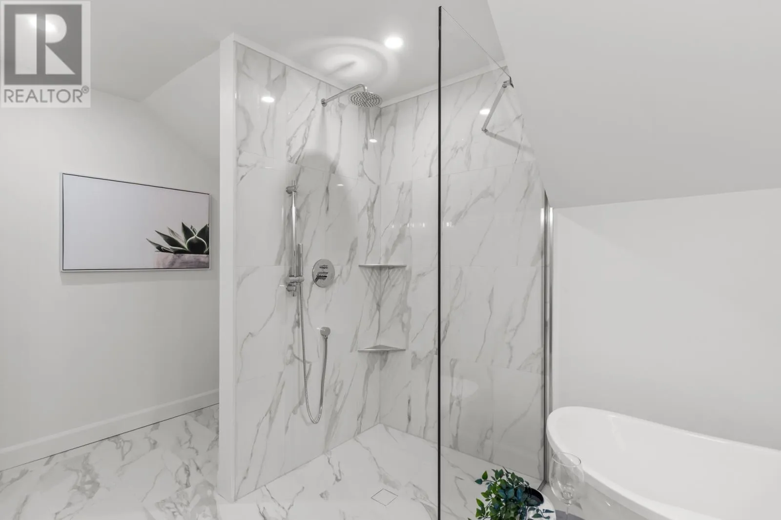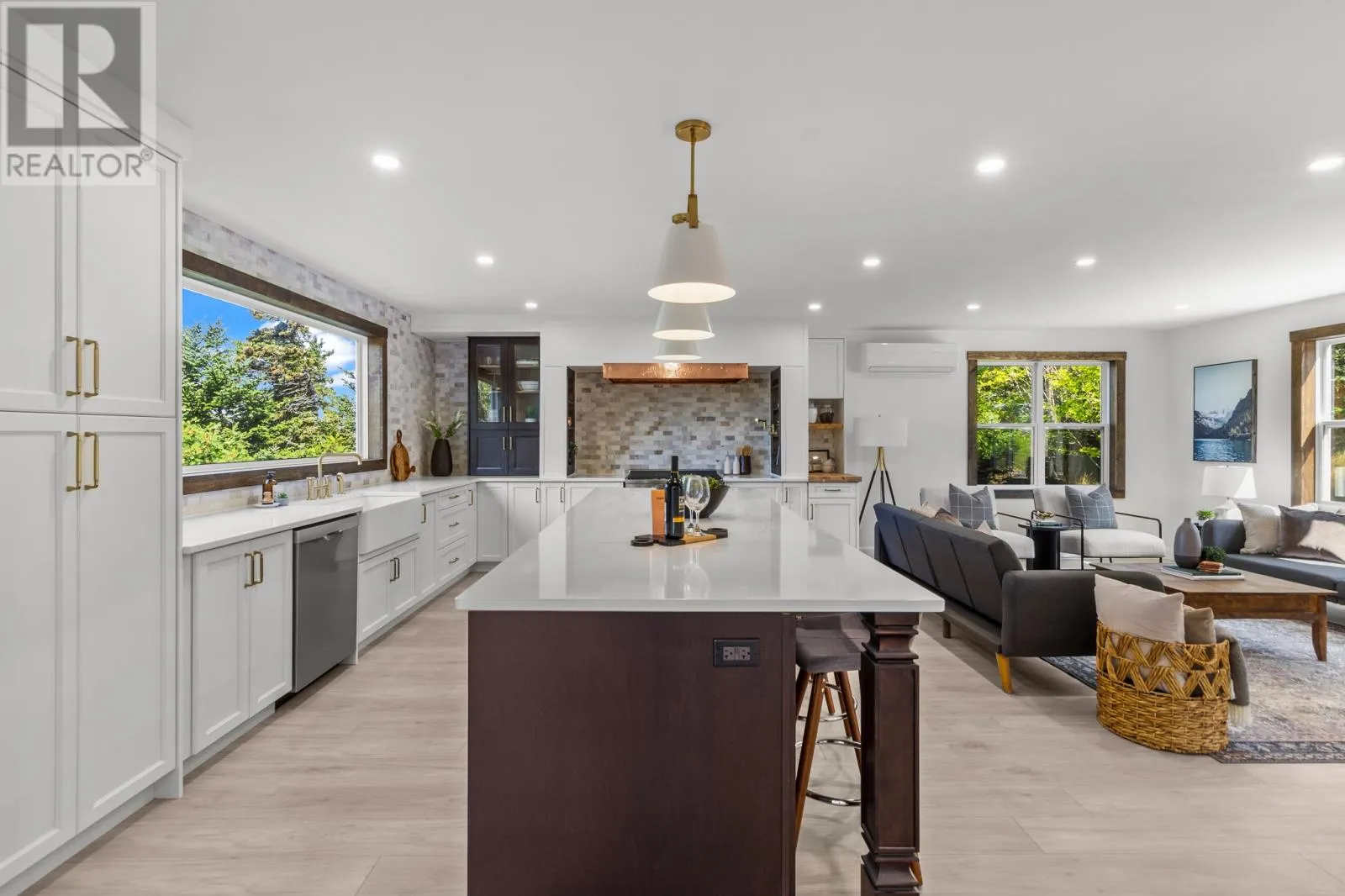 Welcome to 615 Marine Drive, a distinguished neighbourhood where timeless elegance meets modern coastal living. Nestled on a private, over one-acre treed estate complete with ocean views, this 4,100 sq. ft. masterpiece was stripped to the studs and completely reimagined for the most discerning buyer. The heart of the home is a bespoke chefâs kitchen with a striking marble backsplash, handcrafted copper range hood, double fridge, gas range, and coffee bar perfectly blending artistry and function. An abundance of windows and double sliding patio doors flood the interior with natural light, creating a bright and airy flow throughout. Upstairs, the primary suite rivals a five-star retreat. A spa-inspired ensuite with a freestanding soaker tub, a floor-to-ceiling seamless tiled shower, dual vanities, and a custom walk-in closet worthy of a boutique hotel. Three additional bedrooms share a beautifully appointed main bath with a double vanity and opulent tiled bath and shower. The fully finished lower level offers endless possibilities. Complete with a stylish custom bar and lounge space, it also features an additional bedroom, guest bath with standalone tiled shower, and space for a home theatre or gym. Outdoors, an expansive patio sets the stage for sunset cocktails and al fresco dining while overlooking the wild Atlantic, and the detached double garage provides both an estate-like quality and convenience. With all new windows, roofing, and electrical, upgraded plumbing, and an entirely redesigned interior layout, this home combines the peace of mind of a brand-new build with the prestige of coastal living. 615 Marine Drive - a rare opportunity to own Outer Cove luxury at its finest. (id:27476)
