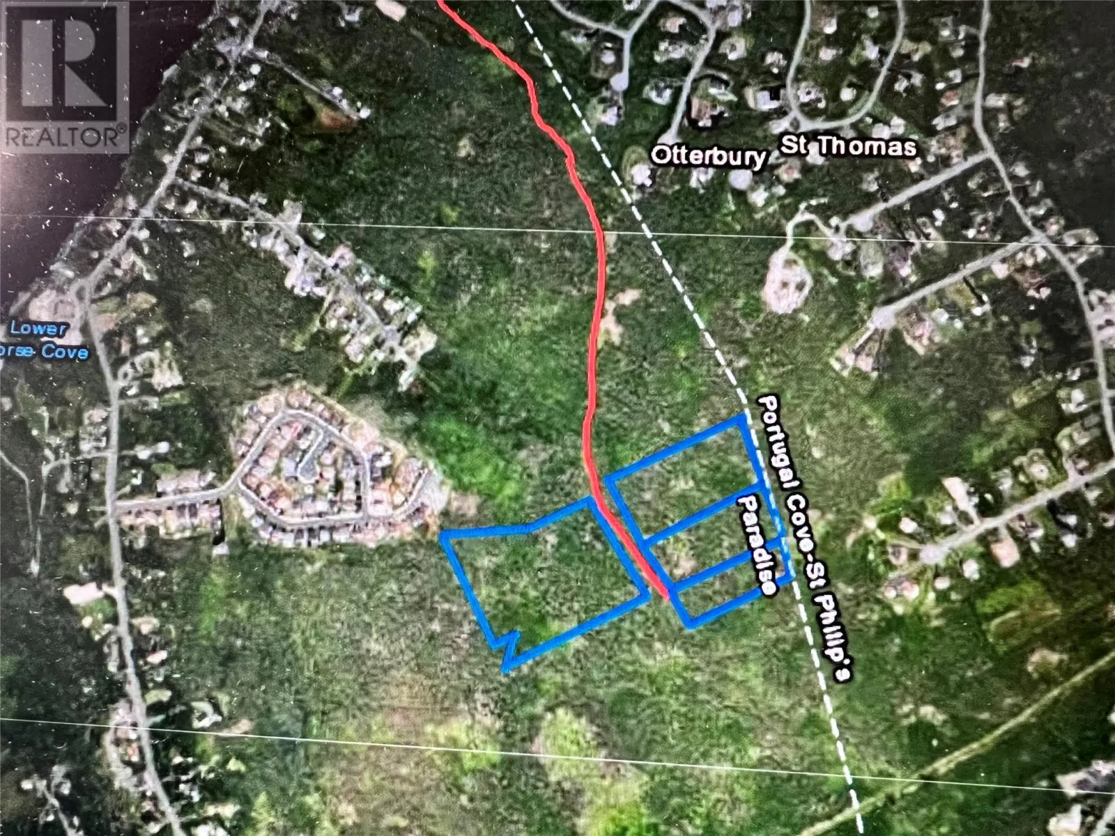 Just a stroll up Moonlight Drive (also known as Clarkes Path) you will find 7.1 acres of prime land on the boundary of St. Philips/Paradise. Nestled in the hillside between prestigious Country Gardens and Island View Estates this parcel of land offers breathtaking views of all of Conception Bay including Bell Island, Little Bell Island and Kelly's Island. This land has recently been zoned for development by the Town of Paradise. This land is being sold in conjunction with MLS #'s 1286990 making up approximately 20 acres in total. HST, if applicable to be the responsibility of the Purchaser. Last two photos are approximate outline of the land. (id:27476)