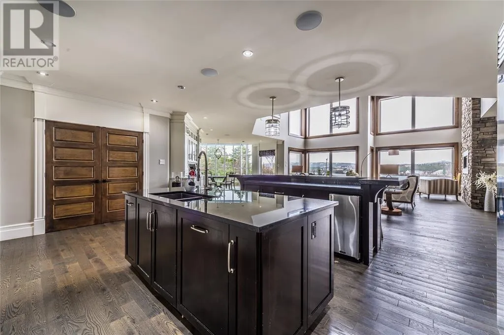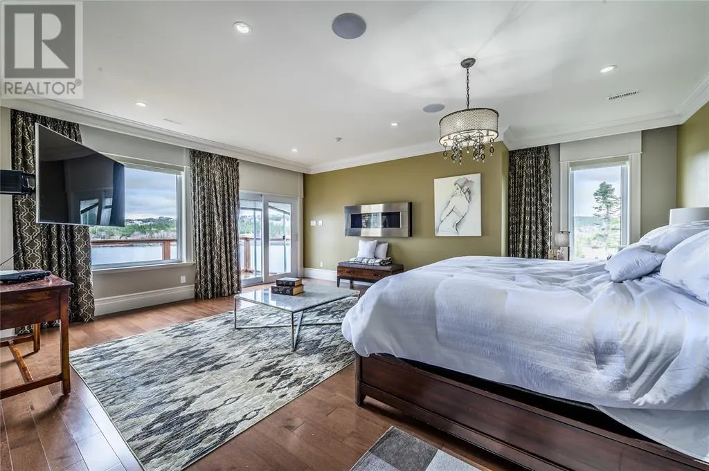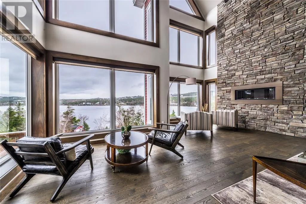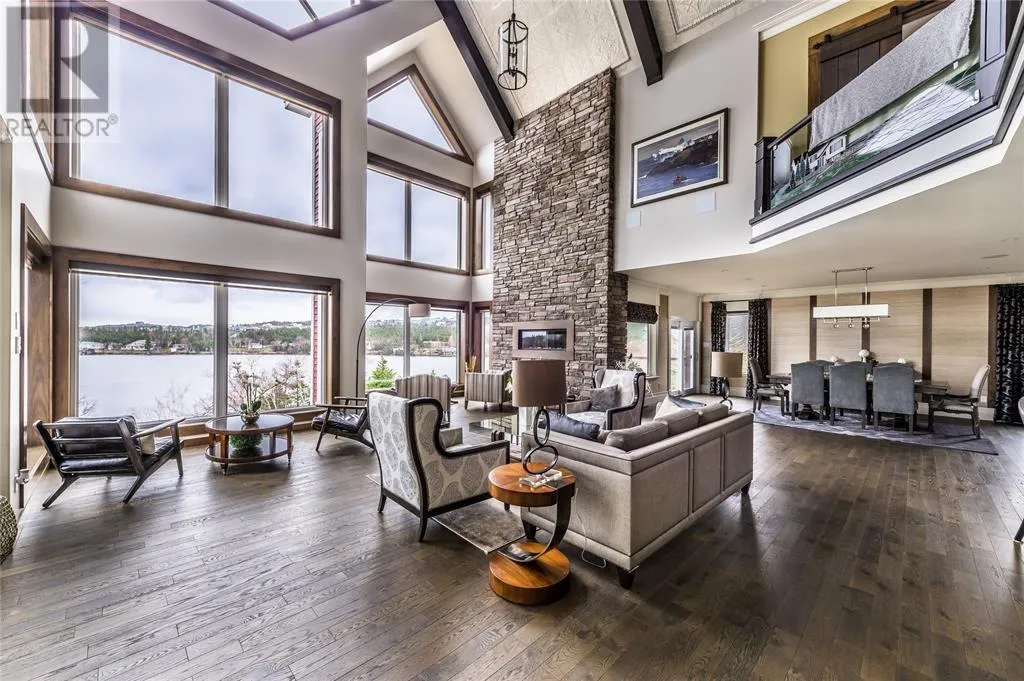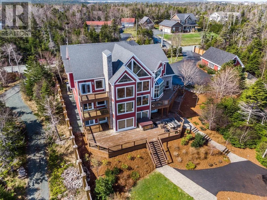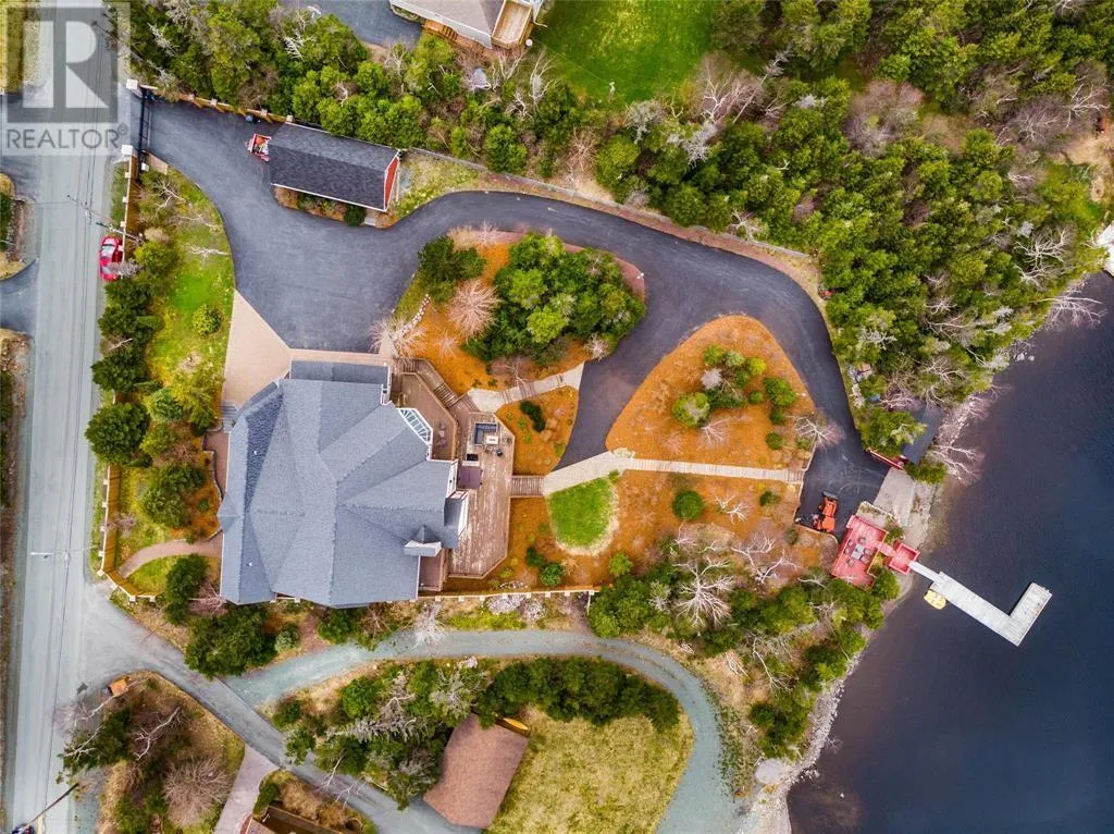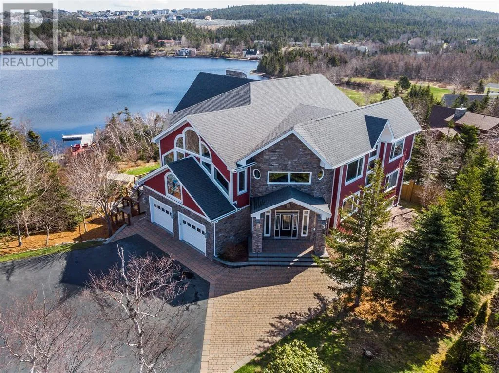 Executive home situated on topsail Pond! Privacy galore on this totally amazing gated home. This two-story spectacular home is located in Paradise with water-frontage and your own private wharf. There are no words to describe this property seeing is believing as no expense has been spared throughout the finishes of this home.This meticulously cared for custom built property has one owner. Some features of the home include heat pump ,in floor heating , multiple fireplaces throughout and a âto die forâmassive open concept design.As you step inside you will be overwhelmed with the view and the abundance of natural light shining in from the large windows.There ia an exquisite gourmet kitchen with stainless steel appliances that any chef would admire with a walk-in pantry, two large islands with granite countertops, vaulted ceilings in the oversized dining ,family room areas . As well on the main floor, you will find the sitting room powder room, laundry, and attached garage area. The upper level offers a primary suite which is truly delightful, giving you the remarkable feeling of a spa atmosphere with a separate walk-in closet area, as well on the upper level you will find four bedrooms complete with their own en suites . The fully developed basement offers a massive rec room complete with sit up bar area and a fifth bedrooms and full bath. This level offers an abundance of storage . This home also offers a detached garage ideal place to store all those recreational vechiles for the outdoor enthusiasts . (id:27476)