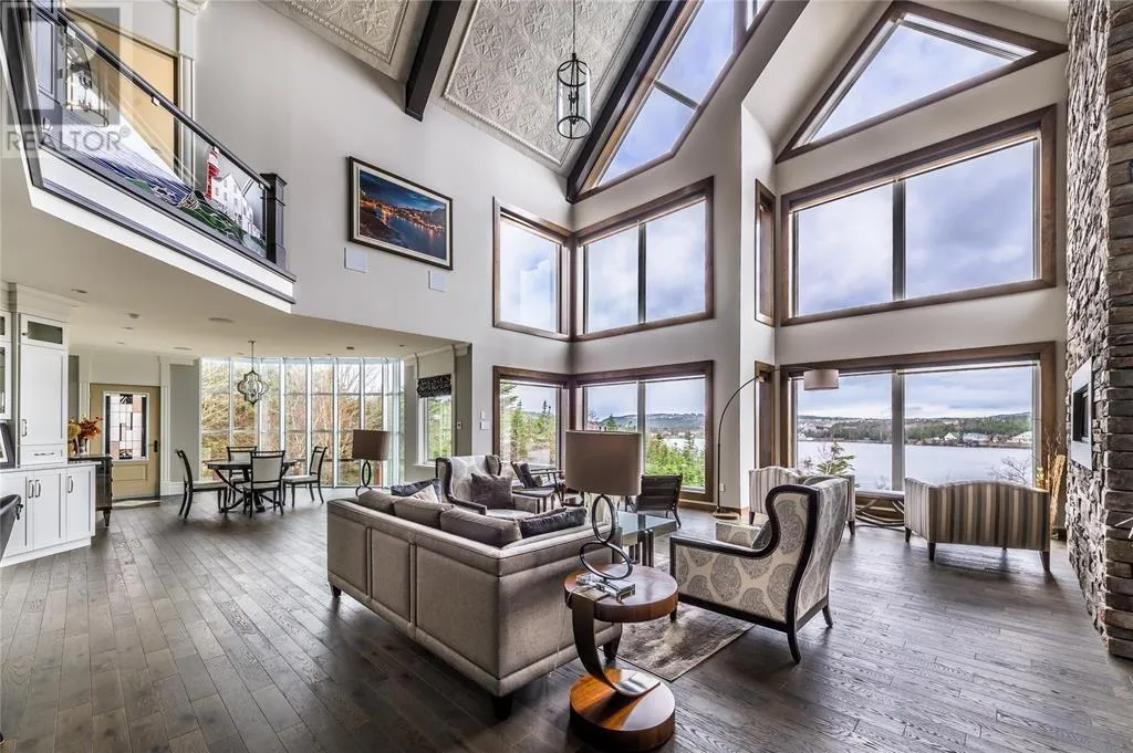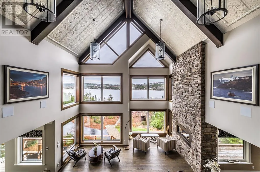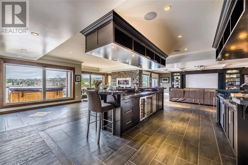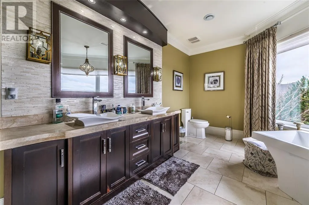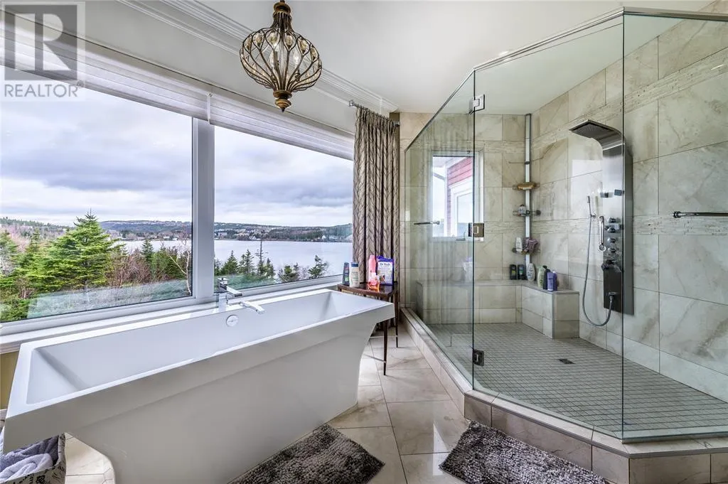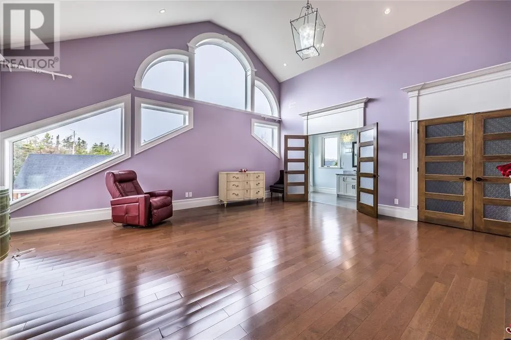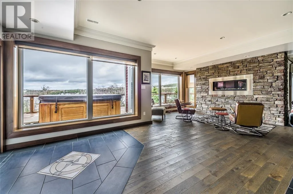Executive home situated on topsail Pond! Privacy galore on this totally amazing gated home. This two-story spectacular home is located in Paradise with water-frontage and your own private wharf. There are no words to describe this property seeing is believing as no expense has been spared throughout the finishes of this home.This meticulously cared for custom built property has one owner. Some features of the home include heat pump ,in floor heating , multiple fireplaces throughout and a âto die forâmassive open concept design.As you step inside you will be overwhelmed with the view and the abundance of natural light shining in from the large windows.There ia an exquisite gourmet kitchen with stainless steel appliances that any chef would admire with a walk-in pantry, two large islands with granite countertops, vaulted ceilings in the oversized dining ,family room areas . As well on the main floor, you will find the sitting room powder room, laundry, and attached garage area. The upper level offers a primary suite which is truly delightful, giving you the remarkable feeling of a spa atmosphere with a separate walk-in closet area, as well on the upper level you will find four bedrooms complete with their own en suites . The fully developed basement offers a massive rec room complete with sit up bar area and a fifth bedrooms and full bath. This level offers an abundance of storage . This home also offers a detached garage ideal place to store all those recreational vechiles for the outdoor enthusiasts . (id:27476)