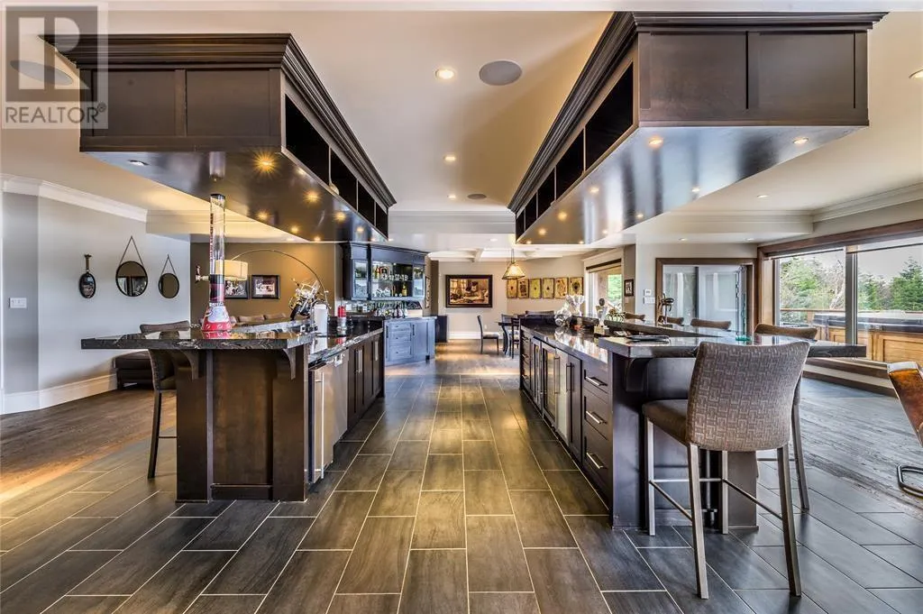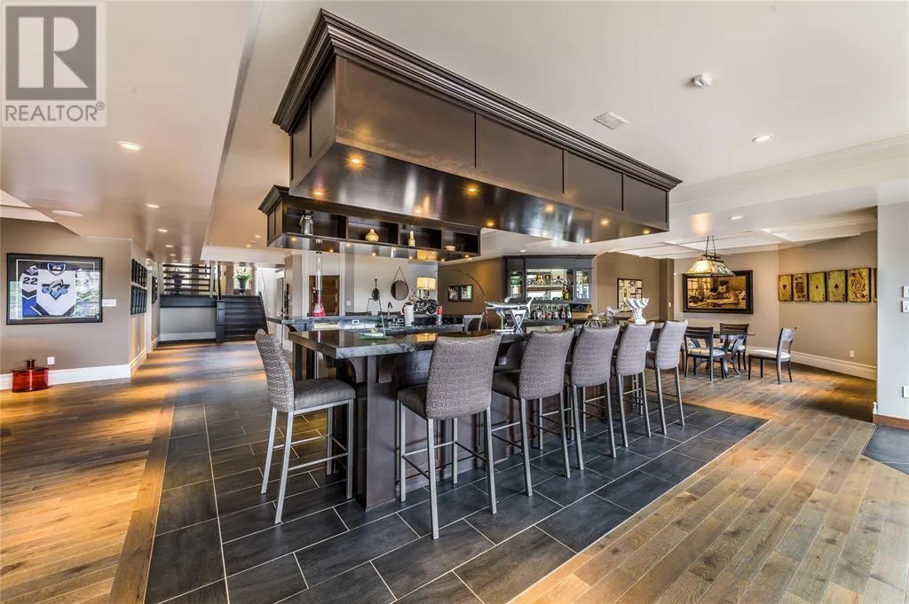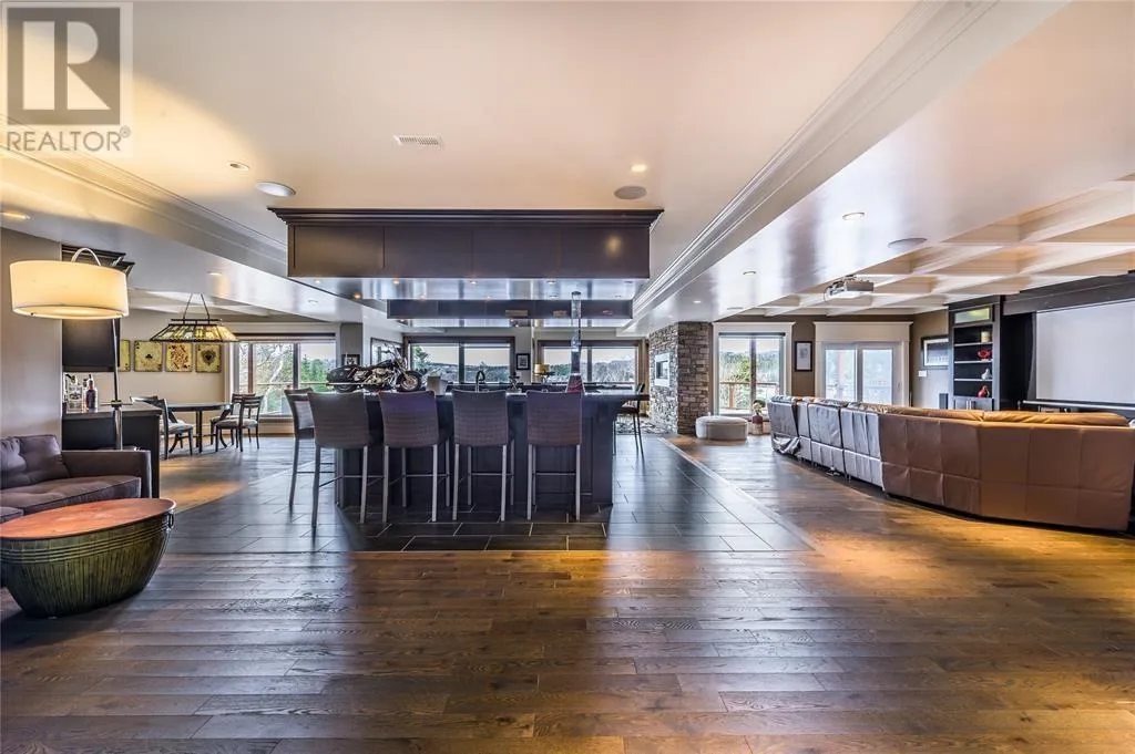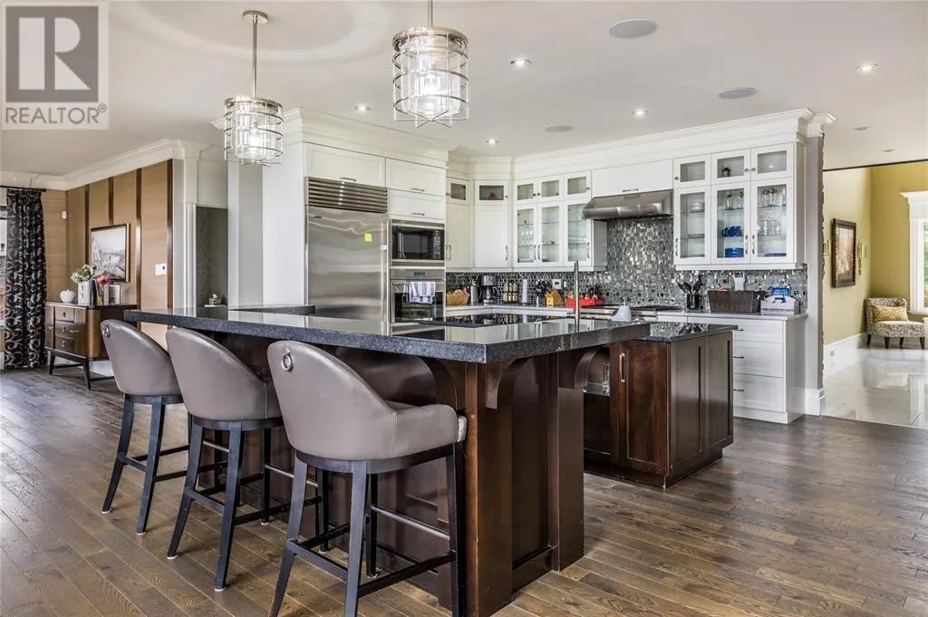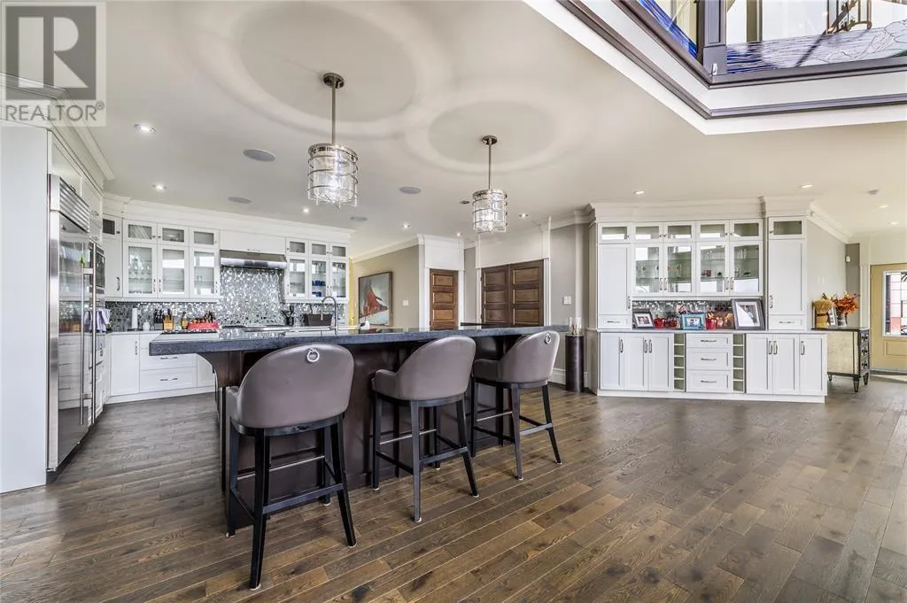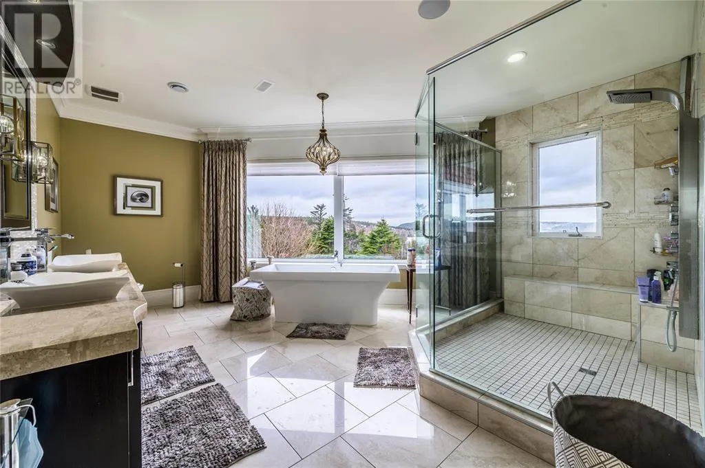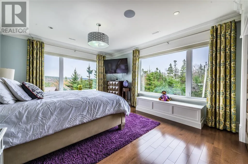 Executive home situated on topsail Pond! Privacy galore on this totally amazing gated home. This two-story spectacular home is located in Paradise with water-frontage and your own private wharf. There are no words to describe this property seeing is believing as no expense has been spared throughout the finishes of this home.This meticulously cared for custom built property has one owner. Some features of the home include heat pump ,in floor heating , multiple fireplaces throughout and a âto die forâmassive open concept design.As you step inside you will be overwhelmed with the view and the abundance of natural light shining in from the large windows.There ia an exquisite gourmet kitchen with stainless steel appliances that any chef would admire with a walk-in pantry, two large islands with granite countertops, vaulted ceilings in the oversized dining ,family room areas . As well on the main floor, you will find the sitting room powder room, laundry, and attached garage area. The upper level offers a primary suite which is truly delightful, giving you the remarkable feeling of a spa atmosphere with a separate walk-in closet area, as well on the upper level you will find four bedrooms complete with their own en suites . The fully developed basement offers a massive rec room complete with sit up bar area and a fifth bedrooms and full bath. This level offers an abundance of storage . This home also offers a detached garage ideal place to store all those recreational vechiles for the outdoor enthusiasts . (id:27476)