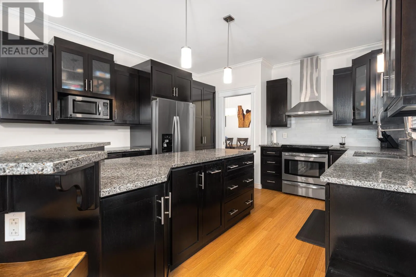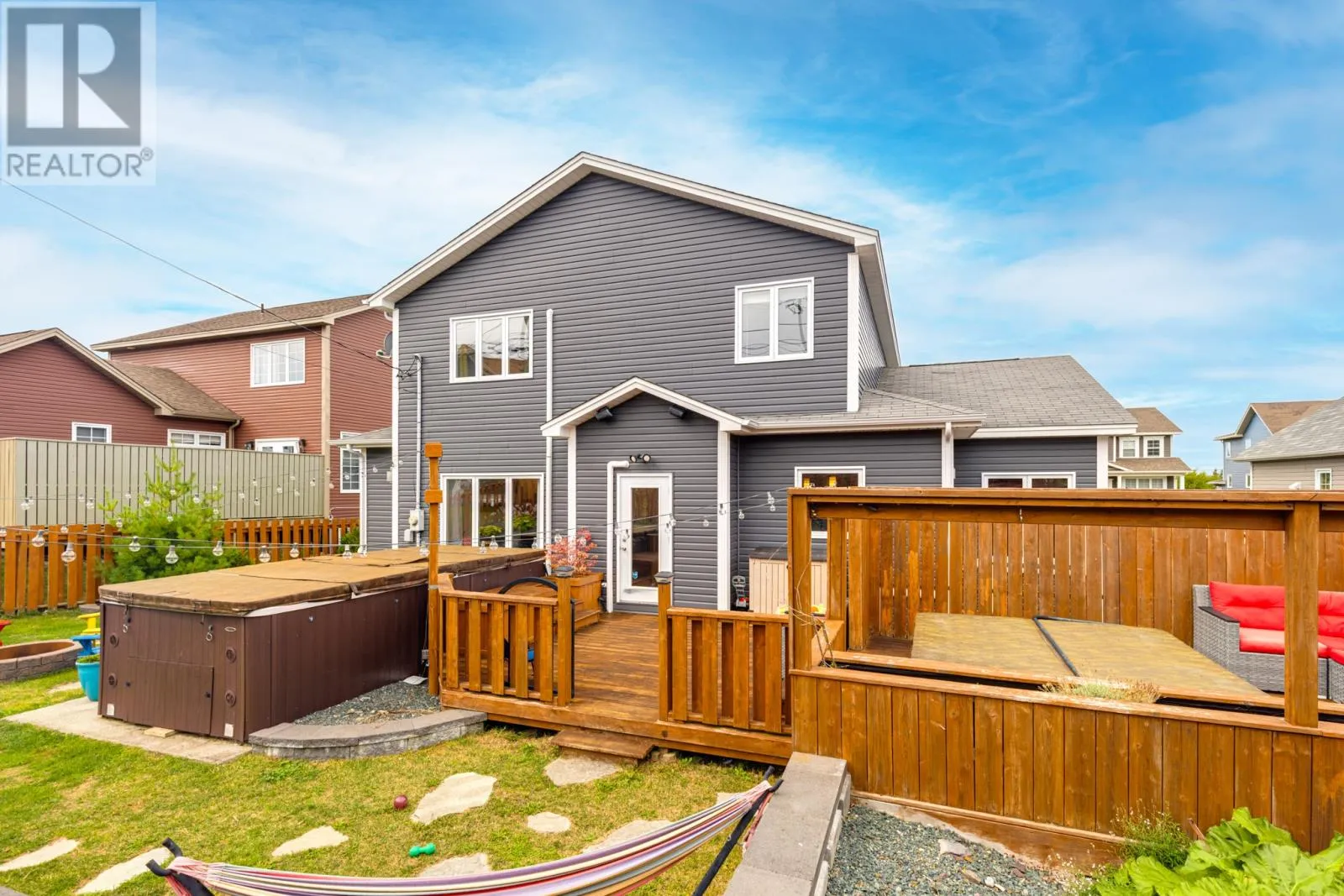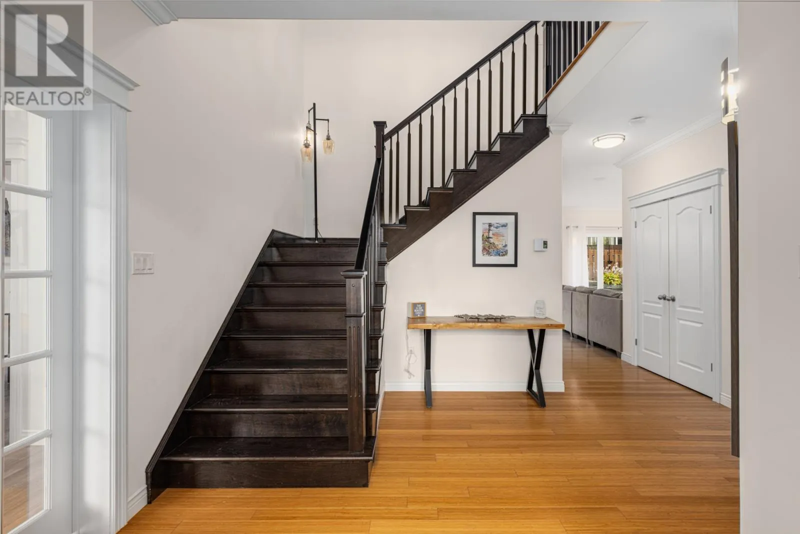 Welcome to this stunning 2-storey family home in beautiful Paradise! From the moment you step inside, youâll be impressed with the bright and inviting main floor featuring a modern kitchen with hard surface countertops, stainless steel appliances, and a spacious dining area with built-in bar, perfect for entertaining. The main level also offers a cozy living room, family room, half bath, laundry, and convenient access to the attached garage. Up the beautiful hardwood staircase, the second level boasts a luxurious primary suite complete with a walk-in closet and spa-like ensuite, along with two additional spacious bedrooms and a full bathroom. The basement is ideal for family living and entertaining, featuring a 4th bedroom, a large theatre/rec room, another full bathroom, and a utility/storage area. Step outside to your own private oasisâcomplete with a hot tub and swim spa in the backyard, the perfect place to relax and unwind. This property truly offers the best of comfort, style, and family living in one of Paradiseâs most sought-after areas! (id:27476)