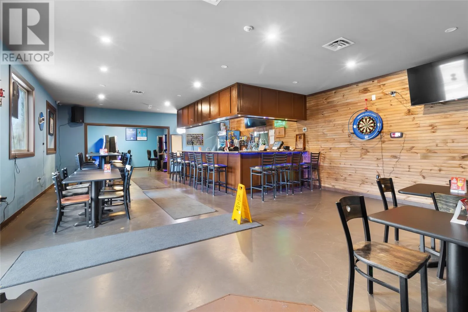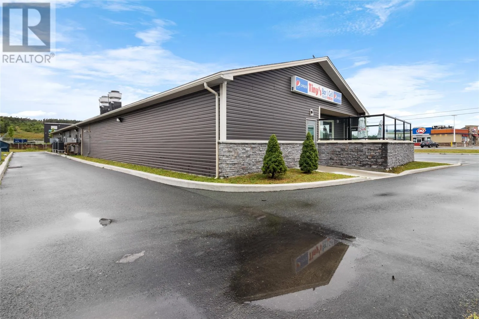 1378 Topsail Road is a building that was a new built from the ground up in 2021 and has been operated as a successful restaurant offering eat in dining or take out service as well and is separated into 2 sections as well as an outside deck area for days when weather permits. In the rear section there has been a retail business and presently operating as a pub with full bar service, food service, video lottery machines, and at times live music. The bar has also been open to having private parties for birthdays as an example. The sale is for the building and land only and you can open many business models such as offices, misc retail, manufacturing etc or maintain a restaurant and pub with town approvals. Some equipment will remain such as the bars and permament fixtures. The camera system and the POS system are both leased and will remain if the purchaser is willing to take over the leases. Restaurant equipment and other items can be negotiated (id:27476)