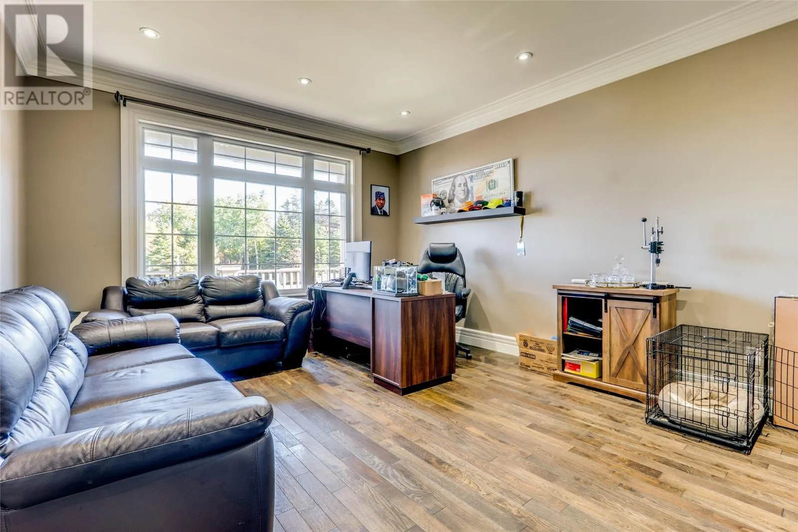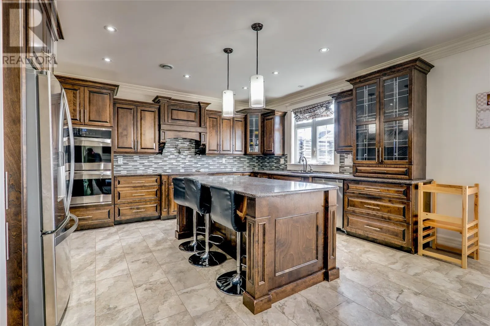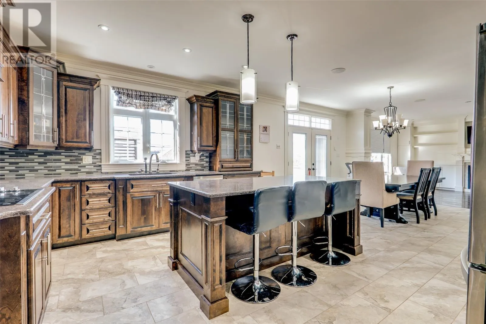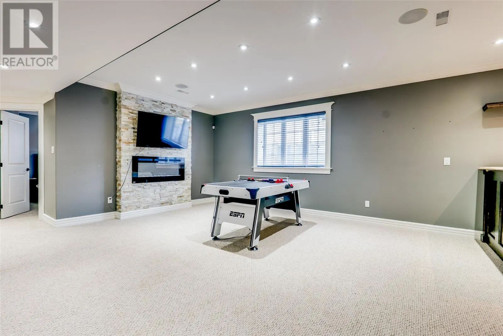 Welcome to 43 Glendarek Drive. This executive home is situated on an oversized lot in the highly desired Adams Pond area. With well over 4000 square feet of fully developed living space and a quarter of an acre of land this property is a rare find. The entry features a spacious front foyer boasting ceramic tile, large closet and double doors. The main floor features an open concept design with modern kitchen featuring quartz countertops, pot filler, oversized island, and walk-in pantry. The kitchen opens to the dining area offering ample room to entertain, while the living room includes a propane fireplace and a custom floor to ceiling built in entertainment unit. The double patio doors lead to the large deck and rear yard where southern exposure creates the perfect place to enjoy sunrises and sunsets. The main floor also has an additional large family room. Upstairs you will find the oversized primary bedroom featuring a massive walk-in closet, ensuite with jacuzzi tub, custom shower and concealed access to toilet. The remainder of the second floor is comprised of 2 more bedrooms, both with walk-in closets and ensuites, laundry, and office that could be utilized as a fourth bedroom. In the fully developed basement you will enjoy a custom wet bar, large rec room, 2 more bedrooms, full bath and access to rear yard. This property is complete with a fully landscaped lot, stamped concrete, heat pump, indoor and outdoor surround sound, pot-lights, 9ft ceilings, upgraded trim package and high end finishes throughout. There is an attached and detached detached garage with rear access. This home offers executive living in the heart of Paradise. What are you waiting for? Arrange your viewing today!! (id:27476)