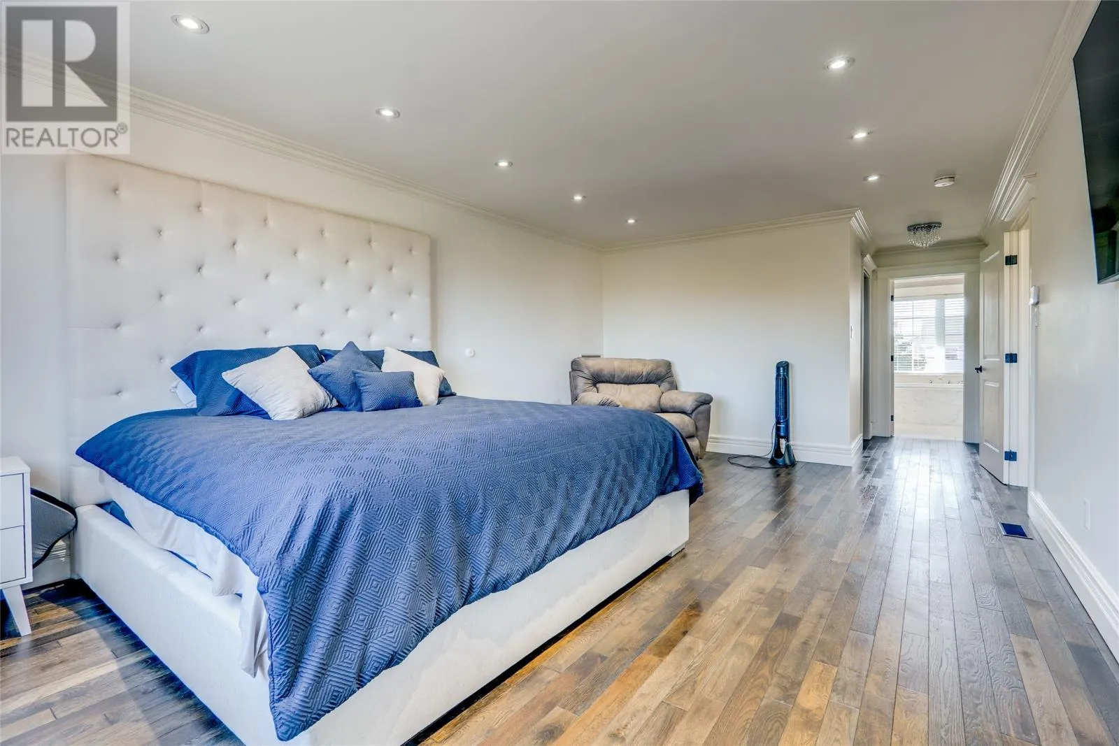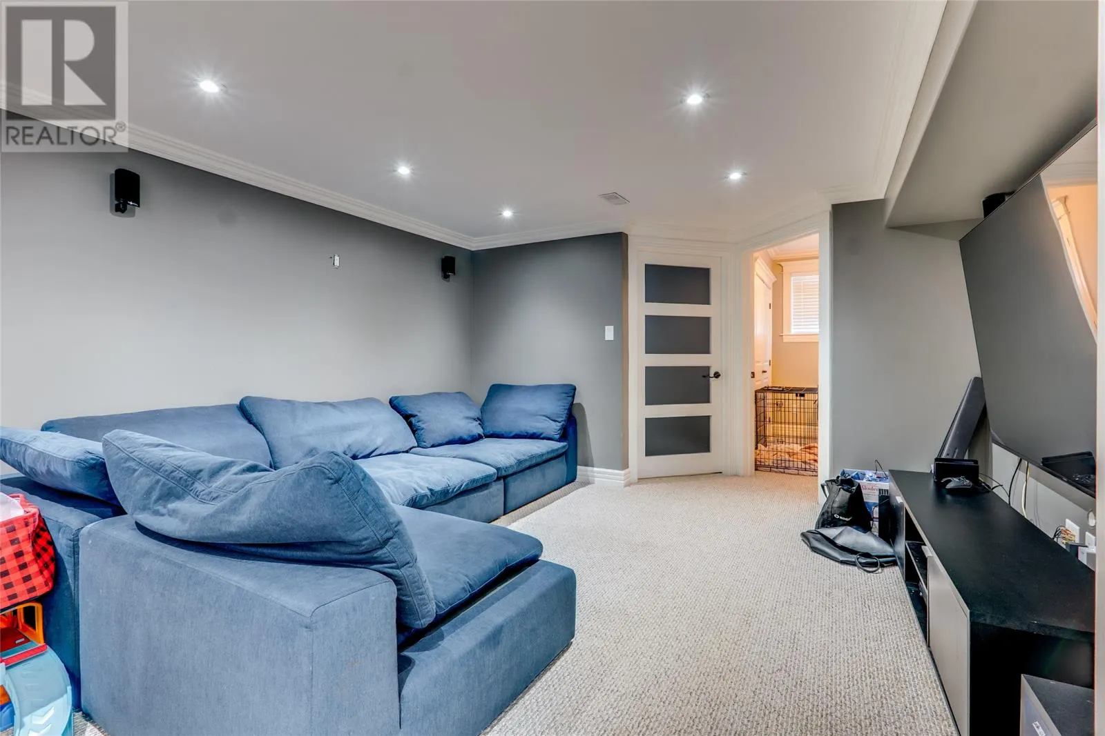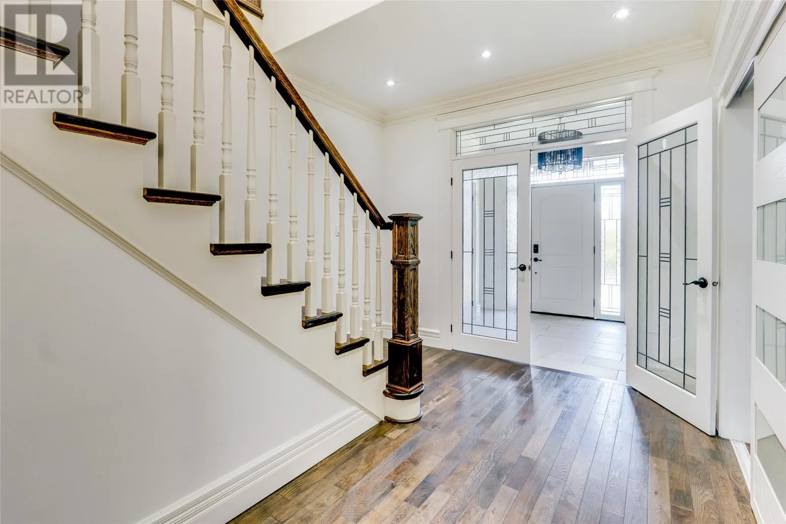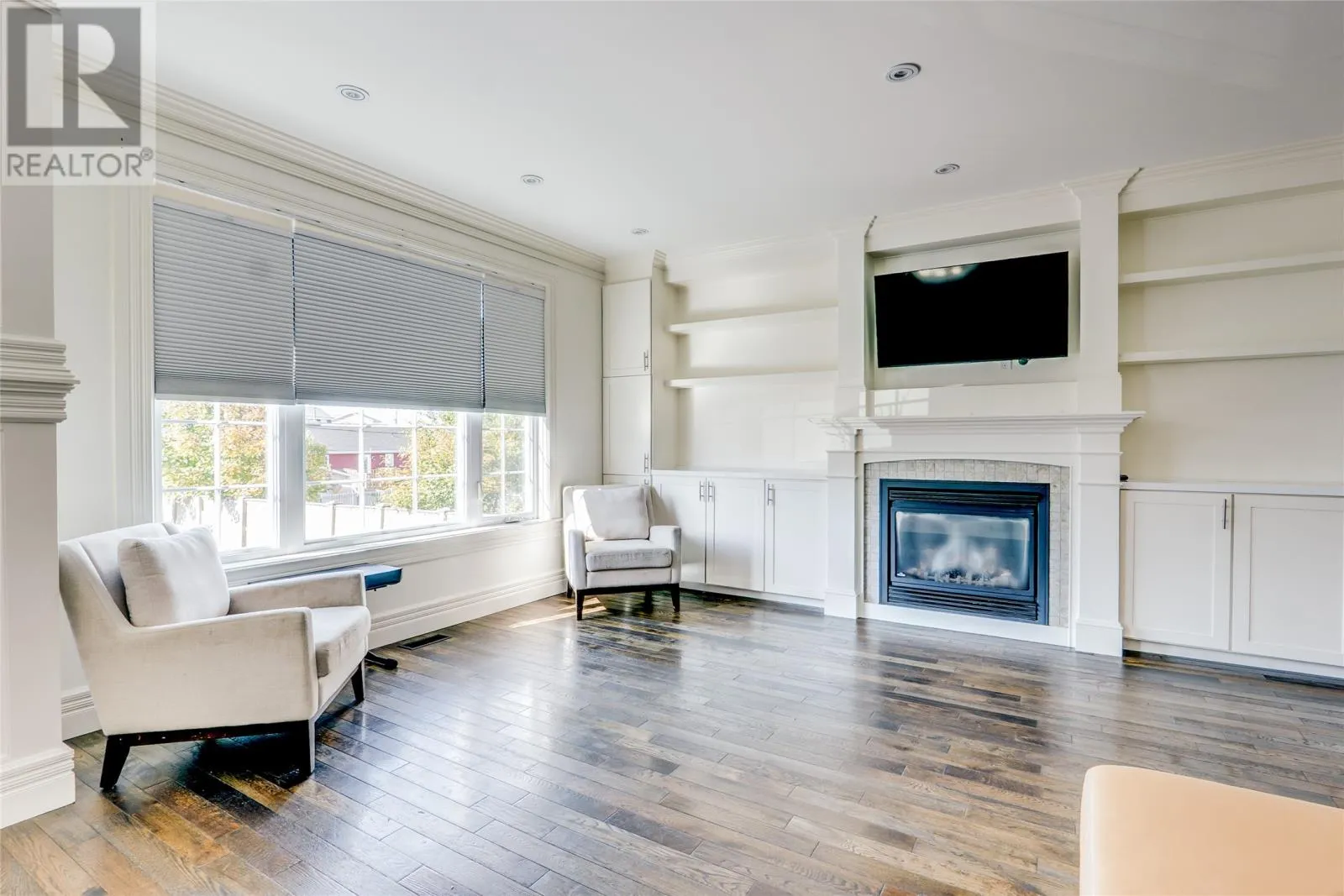 Welcome to 43 Glendarek Drive. This executive home is situated on an oversized lot in the highly desired Adams Pond area. With well over 4000 square feet of fully developed living space and a quarter of an acre of land this property is a rare find. The entry features a spacious front foyer boasting ceramic tile, large closet and double doors. The main floor features an open concept design with modern kitchen featuring quartz countertops, pot filler, oversized island, and walk-in pantry. The kitchen opens to the dining area offering ample room to entertain, while the living room includes a propane fireplace and a custom floor to ceiling built in entertainment unit. The double patio doors lead to the large deck and rear yard where southern exposure creates the perfect place to enjoy sunrises and sunsets. The main floor also has an additional large family room. Upstairs you will find the oversized primary bedroom featuring a massive walk-in closet, ensuite with jacuzzi tub, custom shower and concealed access to toilet. The remainder of the second floor is comprised of 2 more bedrooms, both with walk-in closets and ensuites, laundry, and office that could be utilized as a fourth bedroom. In the fully developed basement you will enjoy a custom wet bar, large rec room, 2 more bedrooms, full bath and access to rear yard. This property is complete with a fully landscaped lot, stamped concrete, heat pump, indoor and outdoor surround sound, pot-lights, 9ft ceilings, upgraded trim package and high end finishes throughout. There is an attached and detached detached garage with rear access. This home offers executive living in the heart of Paradise. What are you waiting for? Arrange your viewing today!! (id:27476)