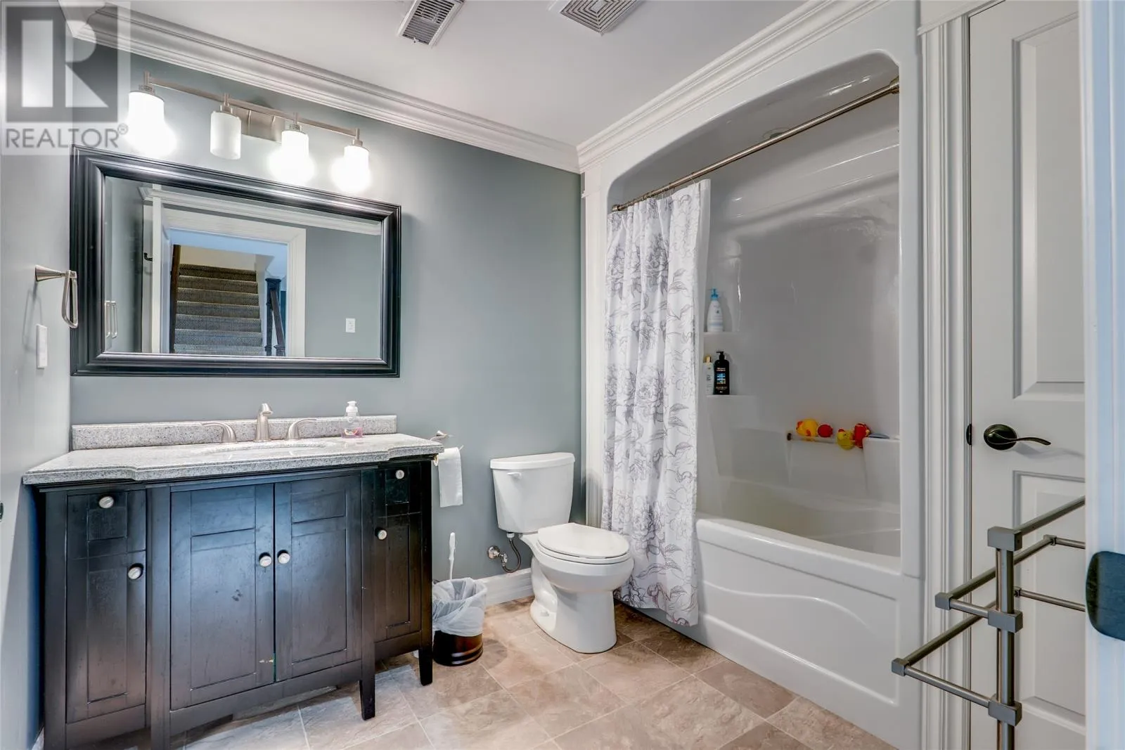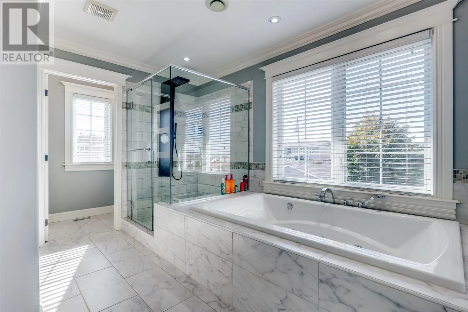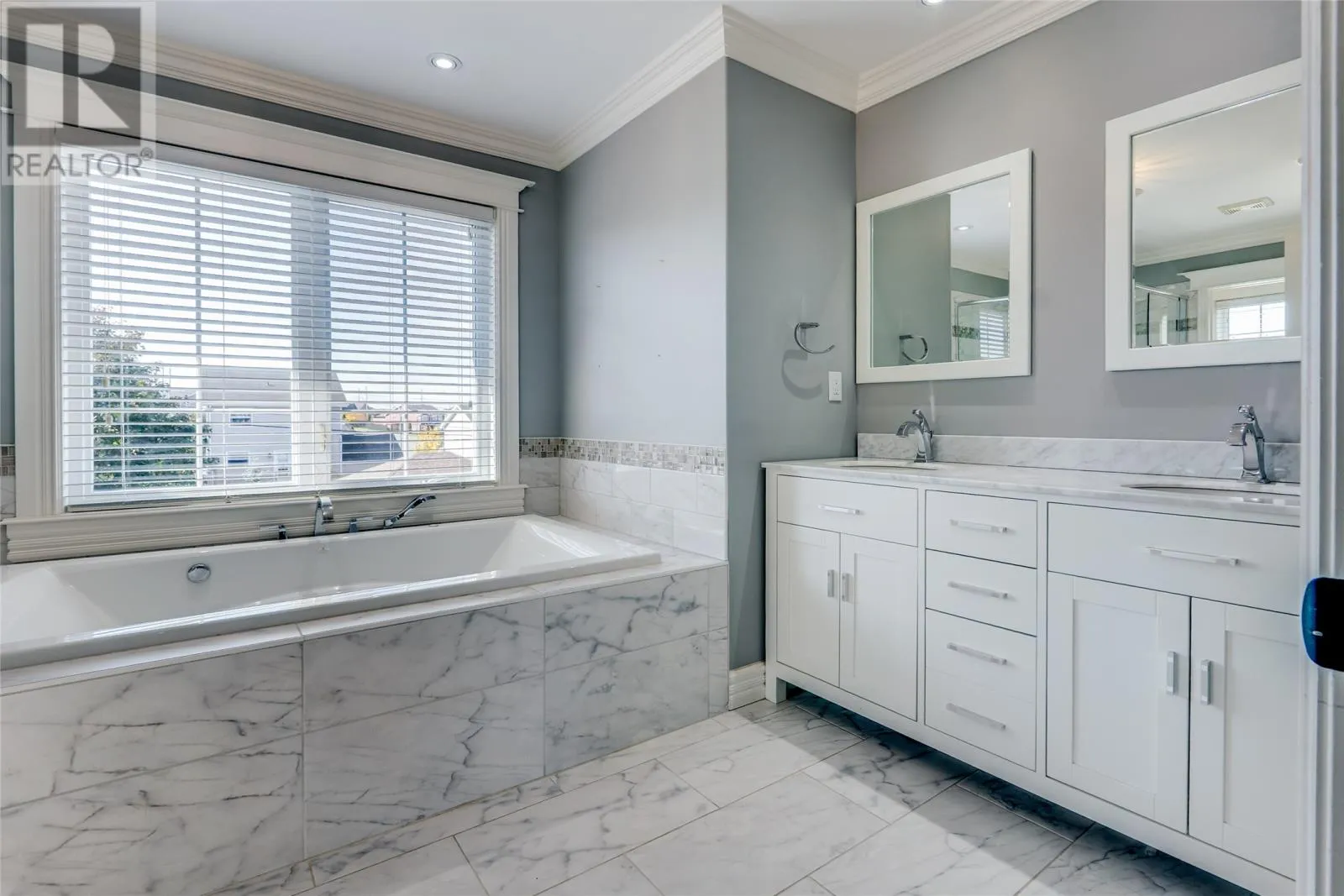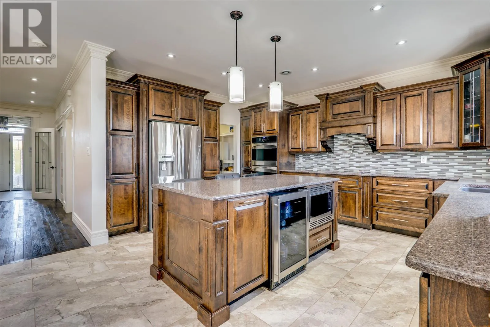 Welcome to 43 Glendarek Drive. This executive home is situated on an oversized lot in the highly desired Adams Pond area. With well over 4000 square feet of fully developed living space and a quarter of an acre of land this property is a rare find. The entry features a spacious front foyer boasting ceramic tile, large closet and double doors. The main floor features an open concept design with modern kitchen featuring quartz countertops, pot filler, oversized island, and walk-in pantry. The kitchen opens to the dining area offering ample room to entertain, while the living room includes a propane fireplace and a custom floor to ceiling built in entertainment unit. The double patio doors lead to the large deck and rear yard where southern exposure creates the perfect place to enjoy sunrises and sunsets. The main floor also has an additional large family room. Upstairs you will find the oversized primary bedroom featuring a massive walk-in closet, ensuite with jacuzzi tub, custom shower and concealed access to toilet. The remainder of the second floor is comprised of 2 more bedrooms, both with walk-in closets and ensuites, laundry, and office that could be utilized as a fourth bedroom. In the fully developed basement you will enjoy a custom wet bar, large rec room, 2 more bedrooms, full bath and access to rear yard. This property is complete with a fully landscaped lot, stamped concrete, heat pump, indoor and outdoor surround sound, pot-lights, 9ft ceilings, upgraded trim package and high end finishes throughout. There is an attached and detached detached garage with rear access. This home offers executive living in the heart of Paradise. What are you waiting for? Arrange your viewing today!! (id:27476)