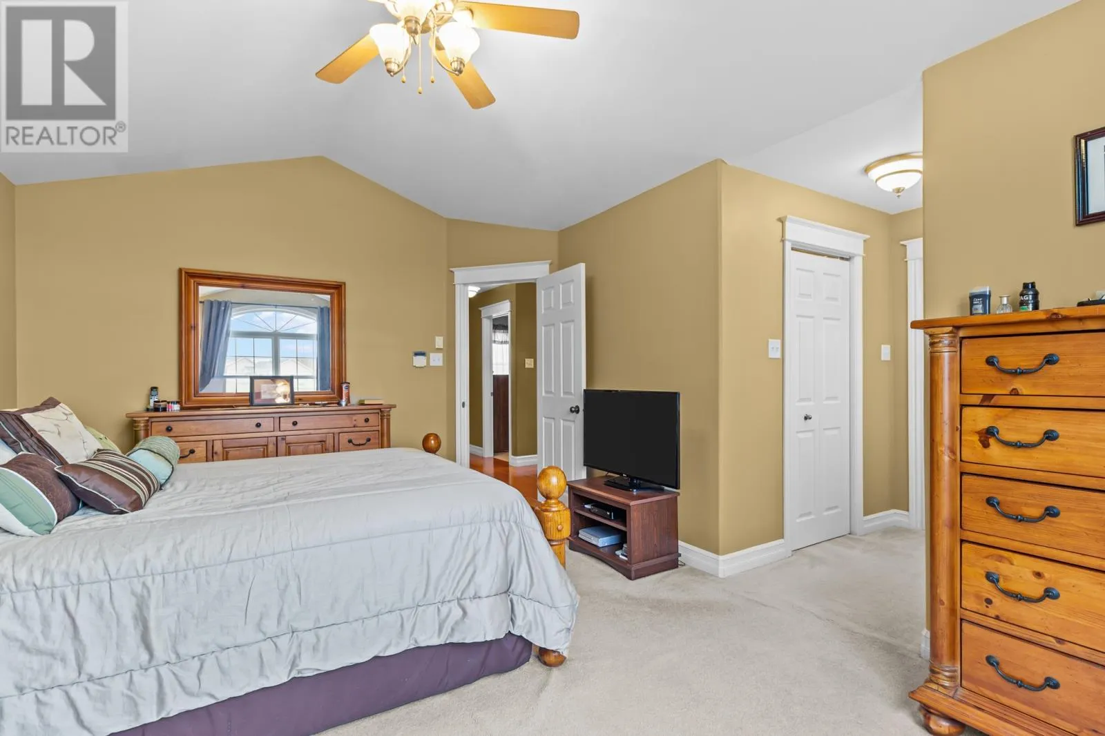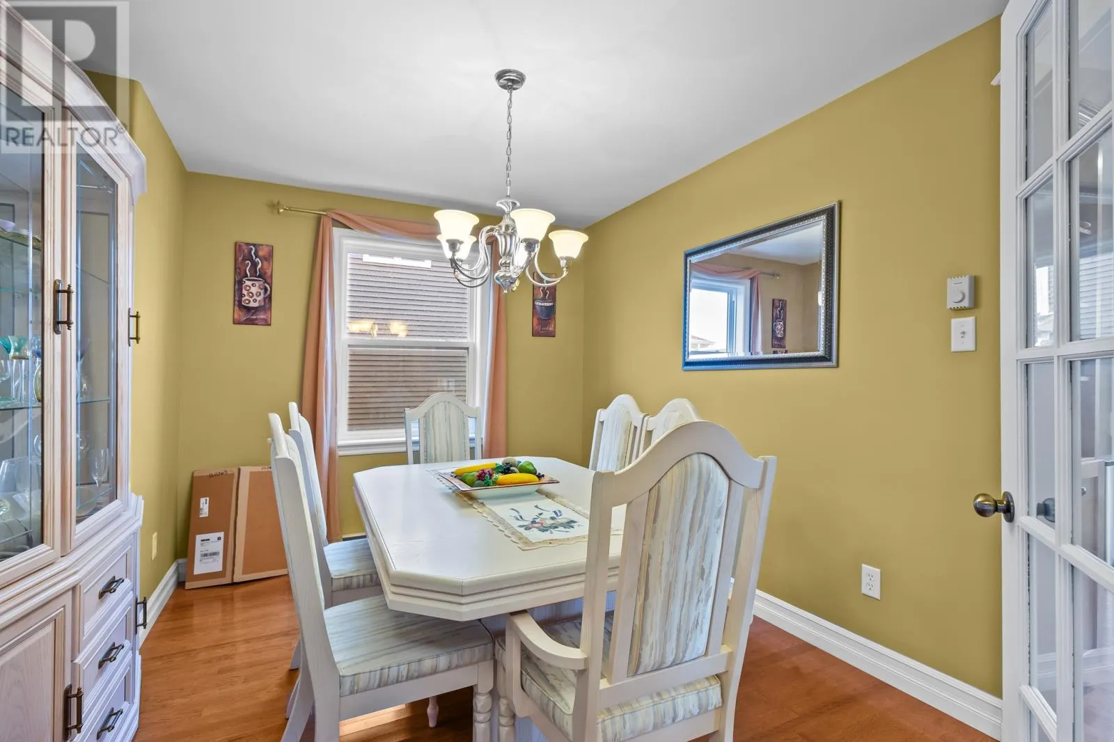 Welcome to 44 Lanark Drive, a beautiful 2-storey home conveniently located pond side in Adams Pond Subdivision in Paradise. This 20 year old two story home shows pride of ownership throughout. As you walk in to the closed off porch, you will find a large family room at the front of the house, a formal dining room and a spacious kitchen and living room area at the back of the house with a propane fireplace for those cold winter nights. The second floor features three spacious bedrooms with the primary bedroom on the front of the house that has a ensuite with jetted tub and a large walk in closet. Hardwood floors throughout the main level, carpet in the bedrooms, ceramic tiles in wet areas and hardwood stair case. The basement comes undeveloped with a laundry area and rough ins for a future bathroom with two egress windows for future bedrooms if necessary. Don't miss the stunning views of Adam's Pond with your large deck on the rear of the home, oversized building lot and a fully finished 16 x 26 detached garage, wired, heated with a mini split heat pump and insulated. (id:27476)