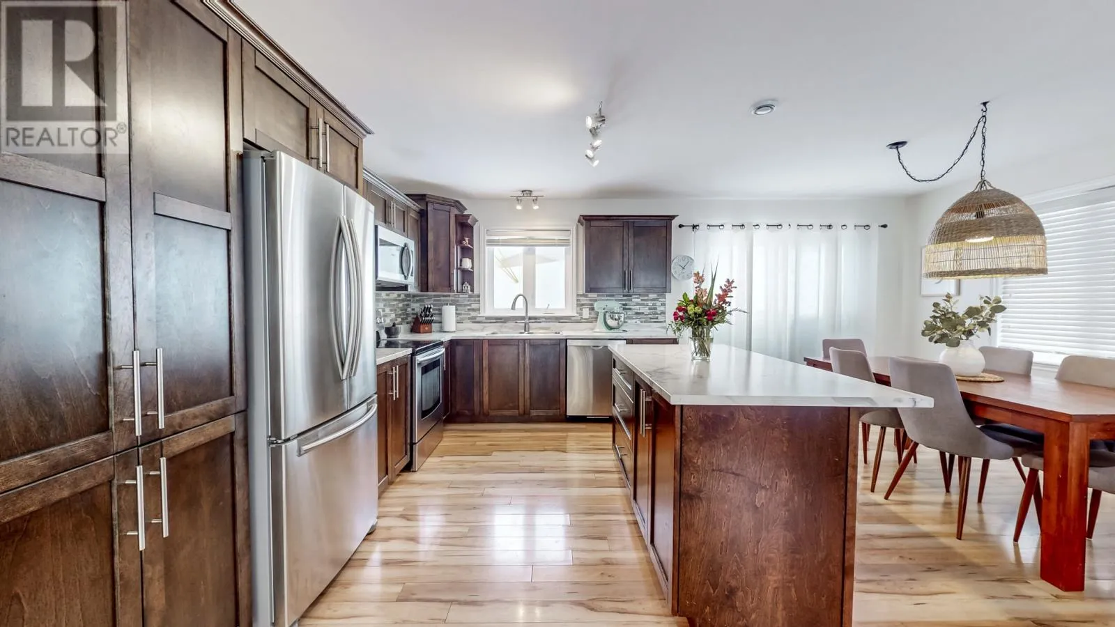 Please be advised they have a cat that will hide away in the house. Welcome to this Beautifully family home in the heart of Paradise, perfectly situated in a quiet, family-friendly neighbourhood. Just a short walk to playgrounds and Holy Family Elementary, and only minutes from shopping, restaurants, and all major amenities, this location offers both comfort and convenience. Step inside to a bright, open-concept main floor designed for everyday living and effortless entertaining. The spacious kitchen features upgraded countertops and a large island where family and friends can gather, flowing seamlessly into the inviting living area. Upstairs, youâll find three well-appointed bedrooms, including a generous primary suite complete with a walk-in closet and private ensuiteâan ideal retreat at the end of the day. The fully developed basement adds even more living space with a second open-concept family room, a custom bar and dart area perfect for entertaining, plus a bonus room that can serve as a guest room, office, or additional bedroom. A combined laundry and 2-piece bath adds extra convenience. Outside, enjoy summer days on the large backyard patioâperfect for barbecues, relaxing, and hosting gatherings. Additional highlights include a 1.5-car garage with plenty of space for parking and storage, two mini-split heat pumps for year-round comfort. A fantastic opportunity to own a move-in-ready home in one of Paradiseâs most desirable neighbourhoods .Per sellers direction re offers, there will be no conveyance of any written offers prior to 5 pm on March 15, offers to remain open until 9 pm on March 15,2026 (id:27476)