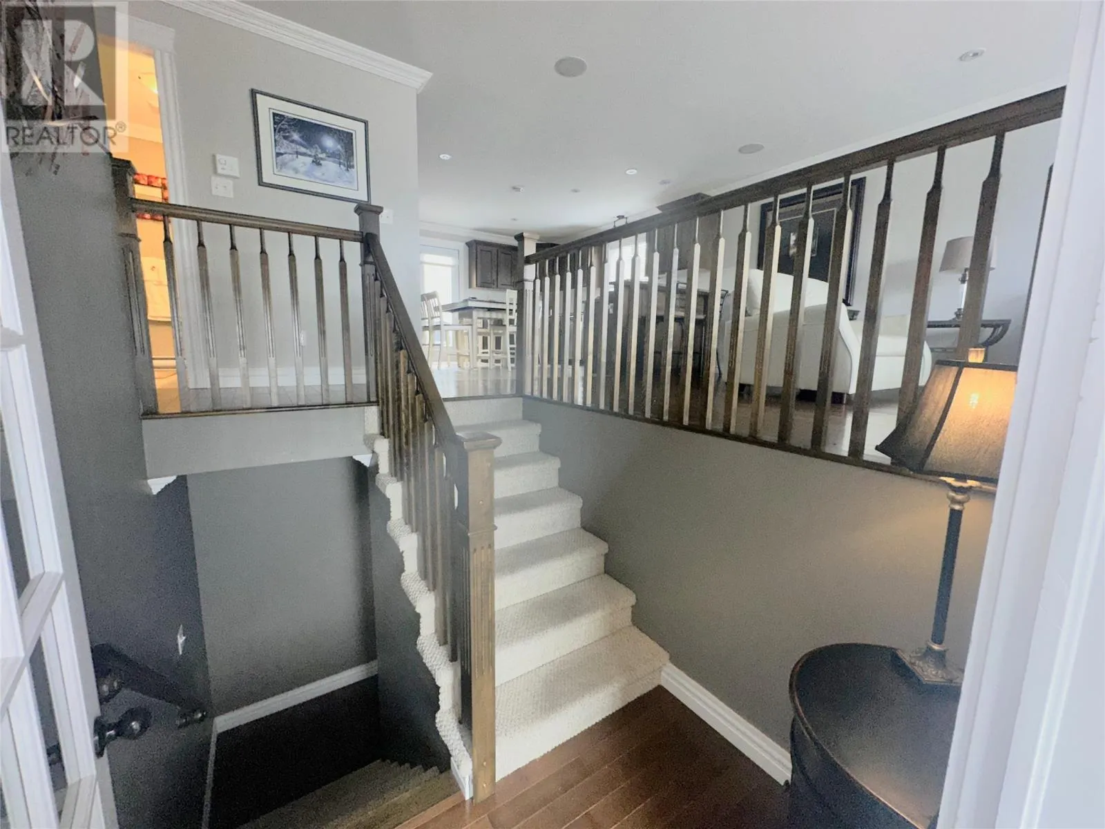 Welcome to this well-maintained, registered two-apartment home located on a quiet side street in Paradise. The main unit features three spacious bedrooms, including a primary suite complete with a generously sized ensuite and closet. The two additional bedrooms are also well-proportioned and offer ample closet space. Enter the home through an enclosed porch that leads into a bright and inviting main level, highlighted by a hardwood staircase and an open-concept layout. The living room, dining area, and kitchen flow seamlessly together, with the kitchen showcasing beautiful hardwood cabinetry and a convenient sit-up breakfast bar perfect for everyday living and entertaining. The lower level of the main unit offers a comfortable rec room along with a convenient half bath, providing additional space for relaxation or family use. The bright, ground-level two-bedroom basement apartment offers great natural light and serves as an excellent mortgage helper or investment opportunity. Outside, enjoy a fully fenced rear yard with access from both the driveway and the rear deck off the kitchenâideal for summer barbecues, entertaining guests, or letting the kids play safely. Walk trails in the community including around Octagon Pond, Neils Pond and the Provincial Trail Way. As per the Seller's Direction, no offers conveyance of offers until 3 pm on March 29th and please leave open for acceptance until 6pm on March 29th. (id:27476)