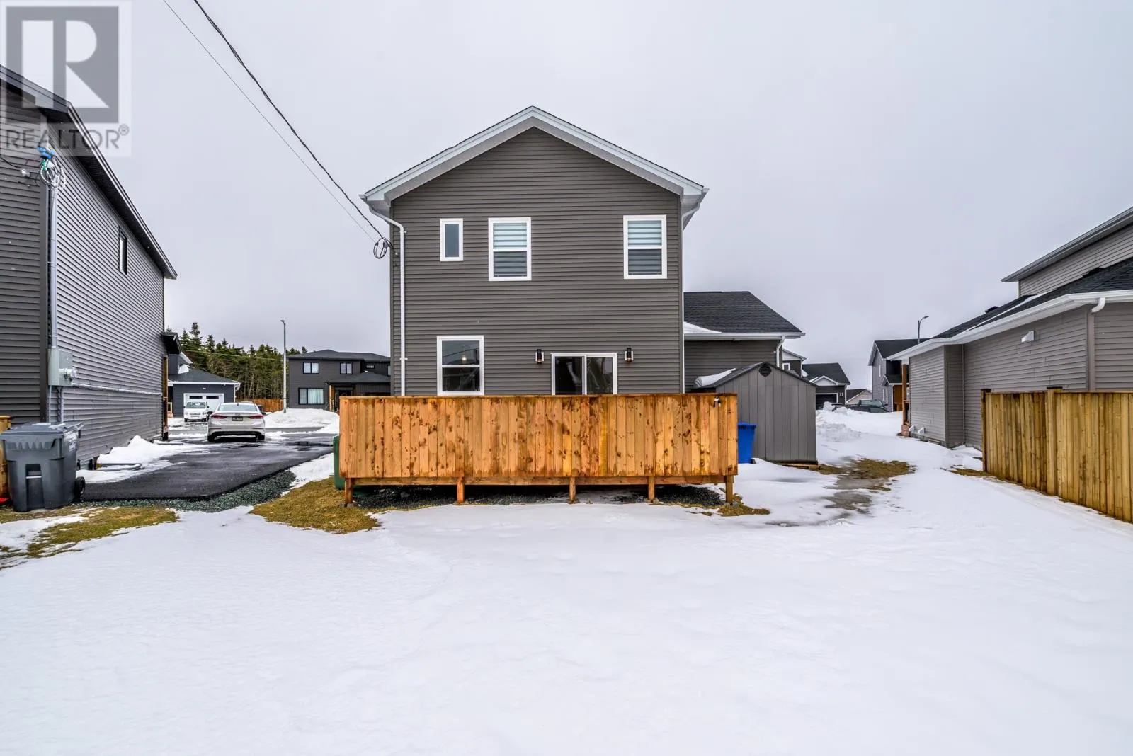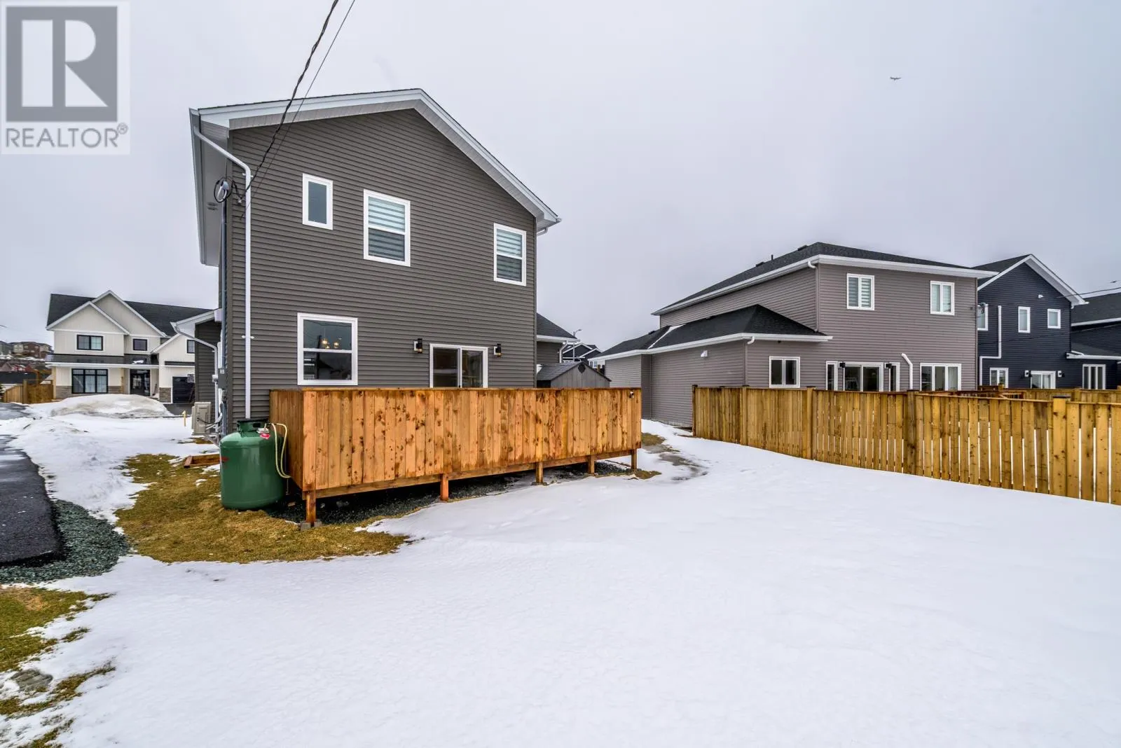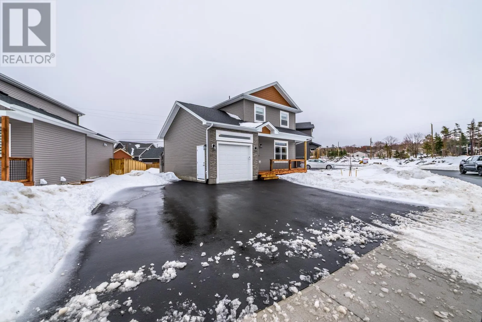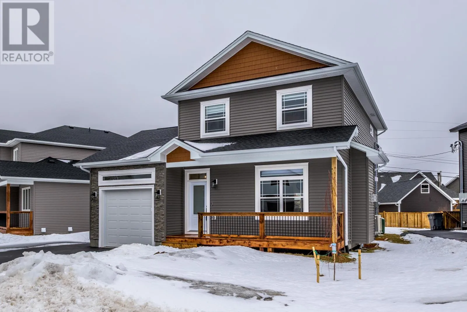 Off Lanark Drive Welcome to this beautifully crafted 3+1 bedroom custom 2 sty with attached garage, ideally located in the sought-after new subdivision Adams Pond in Paradise. At just 5 months old, this home offers all the benefits of new construction - without the wait! Step inside to discover 9 ft ceilings and a bright, open concept main floor featuring a spacious great room with propane fireplace with custom mantle, seamlessly flowing into a stylish kitchen complete with an abundance of cabinetry, centre island, pantry and dining area. Large windows flood the space with natural light, creating a warm and inviting atmosphere. A convenient 1/2 bath and access to a large patio deck complete this level. Upstairs, you will find 3 bedrooms, including a primary suite with walk in closet and ensuite featuring a glass shower. A full main bathroom and 2nd floor laundry add everyday convenience. The fully developed basement offers even more living space with a 4th bedroom, full bathroom & rec room, perfect for the growing family or giving a teenager their own space. Additional highlights include a mini split heat pump, ample paved parking with room for recreational vehicles, and garage has plenty of storage. Located seconds to schools, recreation and walking trails. Why build and wait when you can move into this exceptional home now! (id:27476)