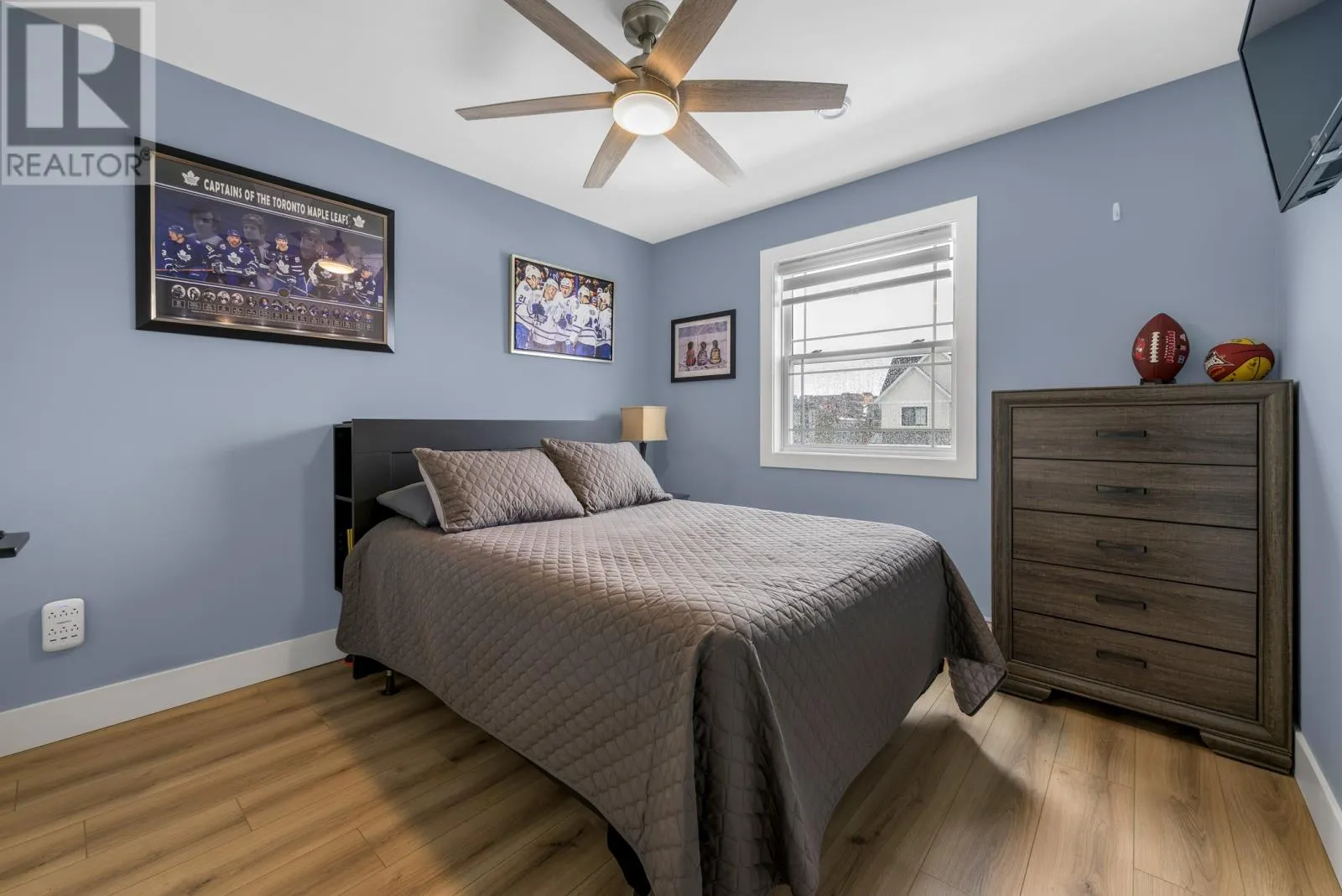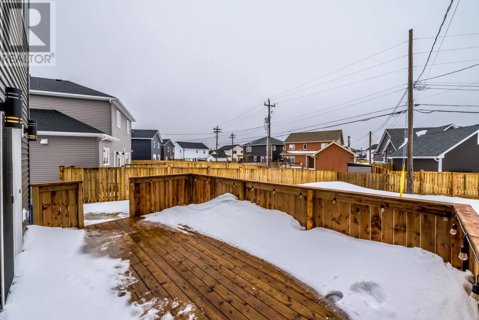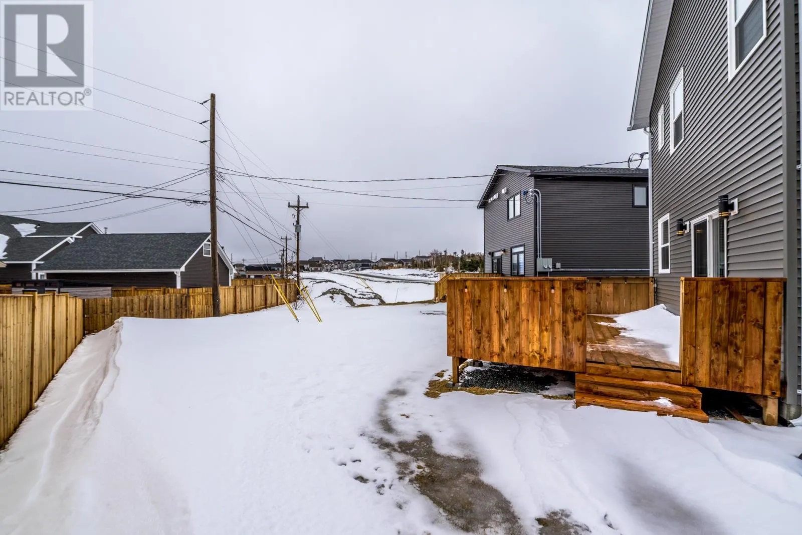 Off Lanark Drive Welcome to this beautifully crafted 3+1 bedroom custom 2 sty with attached garage, ideally located in the sought-after new subdivision Adams Pond in Paradise. At just 5 months old, this home offers all the benefits of new construction - without the wait! Step inside to discover 9 ft ceilings and a bright, open concept main floor featuring a spacious great room with propane fireplace with custom mantle, seamlessly flowing into a stylish kitchen complete with an abundance of cabinetry, centre island, pantry and dining area. Large windows flood the space with natural light, creating a warm and inviting atmosphere. A convenient 1/2 bath and access to a large patio deck complete this level. Upstairs, you will find 3 bedrooms, including a primary suite with walk in closet and ensuite featuring a glass shower. A full main bathroom and 2nd floor laundry add everyday convenience. The fully developed basement offers even more living space with a 4th bedroom, full bathroom & rec room, perfect for the growing family or giving a teenager their own space. Additional highlights include a mini split heat pump, ample paved parking with room for recreational vehicles, and garage has plenty of storage. Located seconds to schools, recreation and walking trails. Why build and wait when you can move into this exceptional home now! (id:27476)